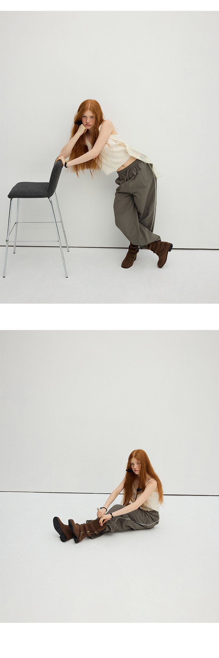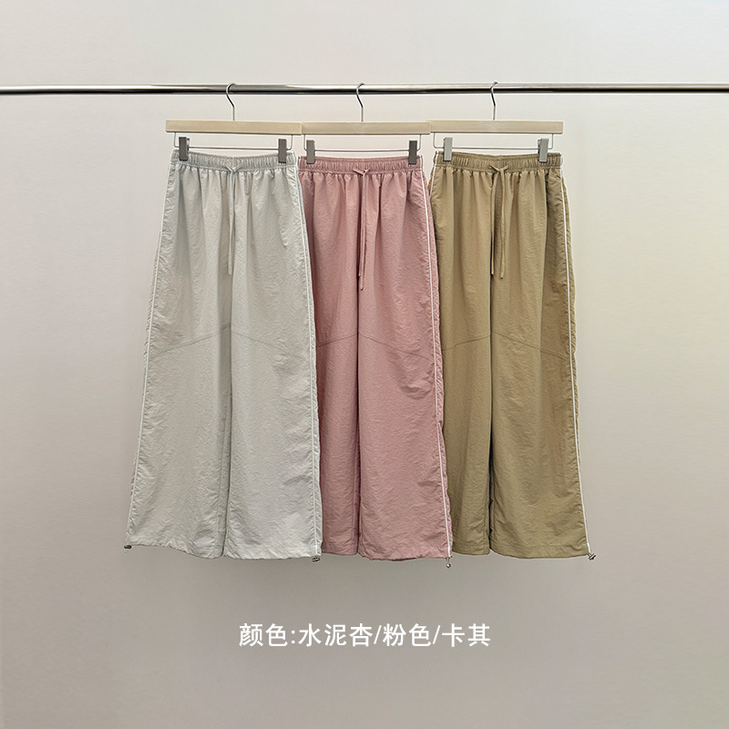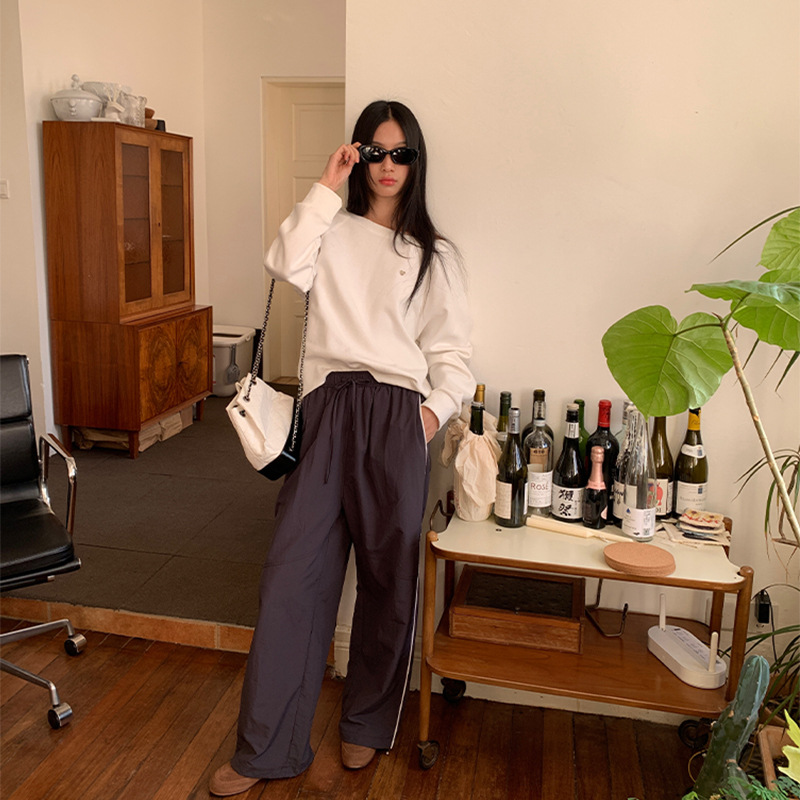 여성용 하이웨이스트 속건성 아메리칸 스트라이프 워크 팬츠, 루즈핏 슬림 와이드 팬츠 3780