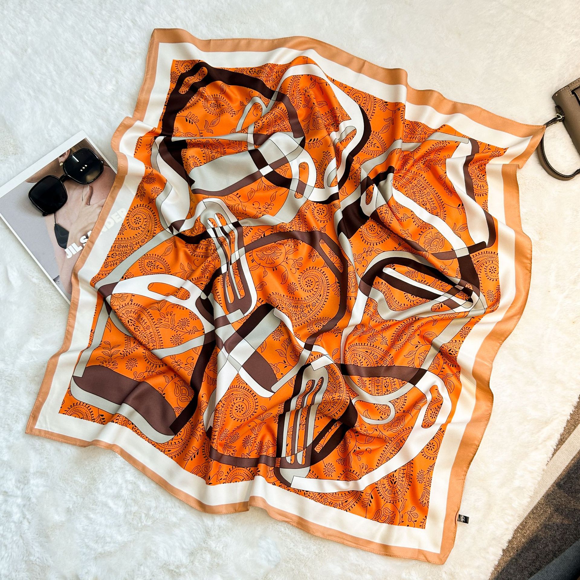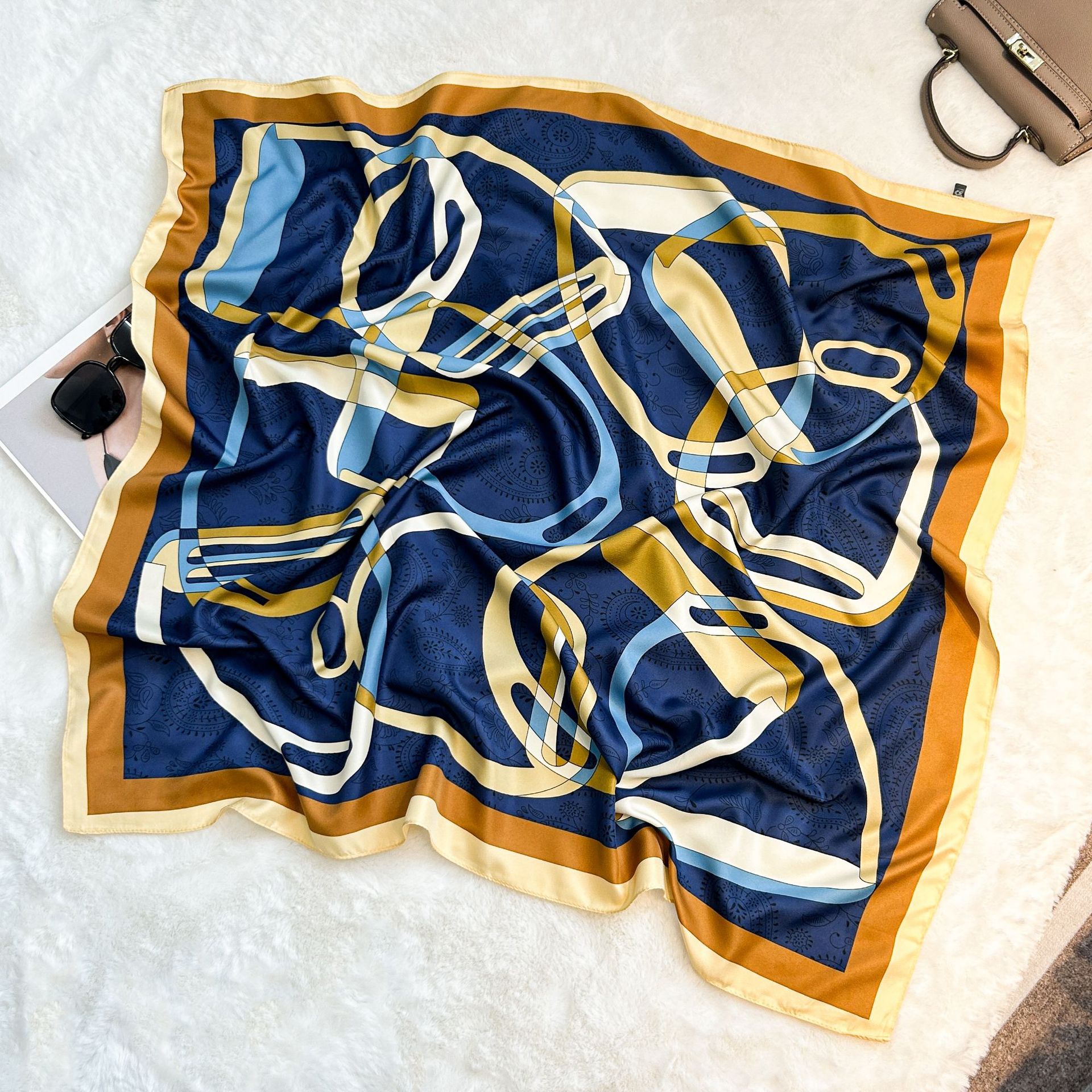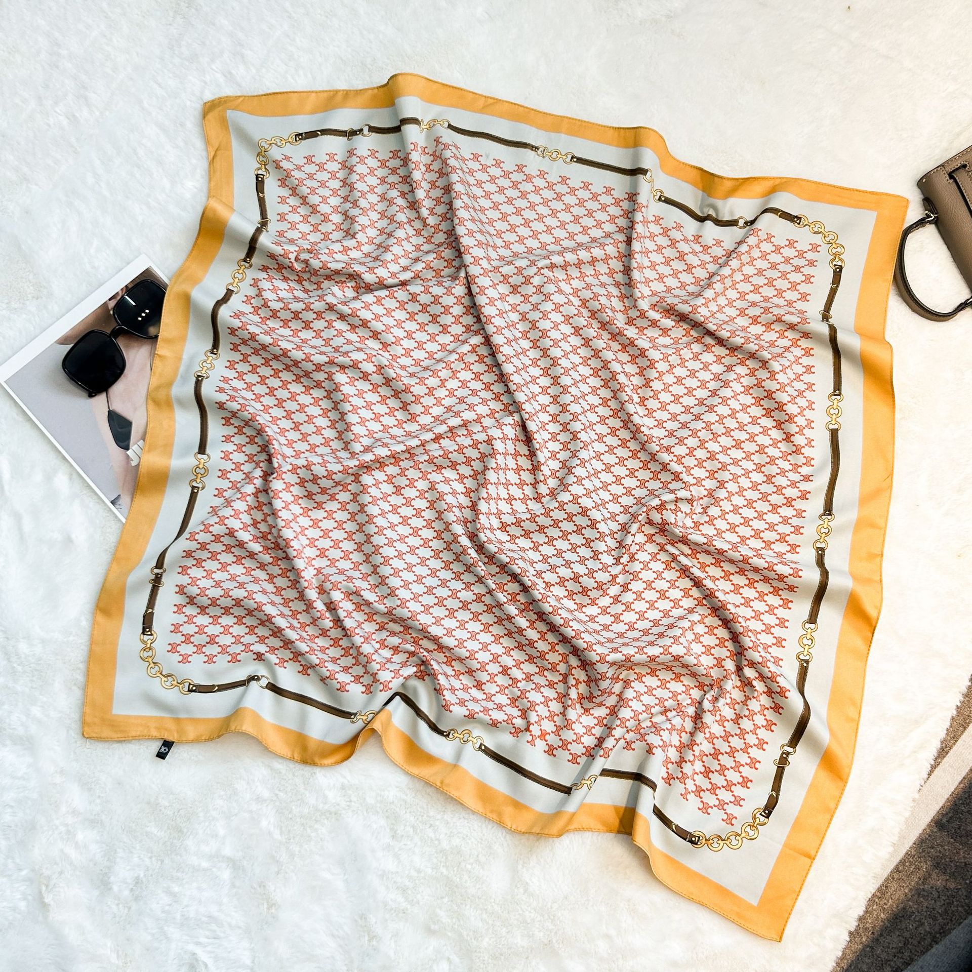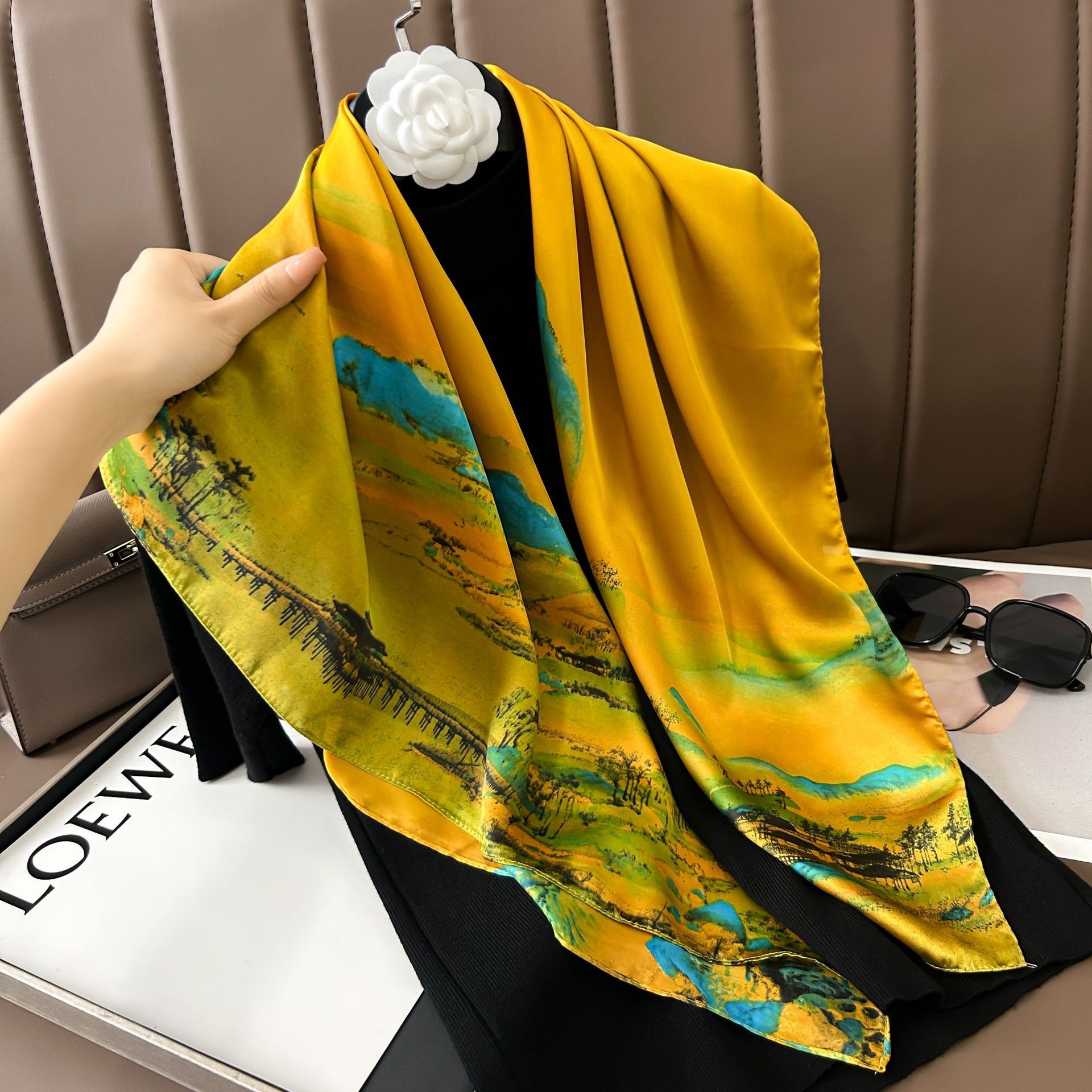 실크 스카프 레트로 90 대형 스퀘어 스카프 트윌 인쇄 한국식 실크 하이 엔드 센스 장식 선물 스카프 도매스토어 가기