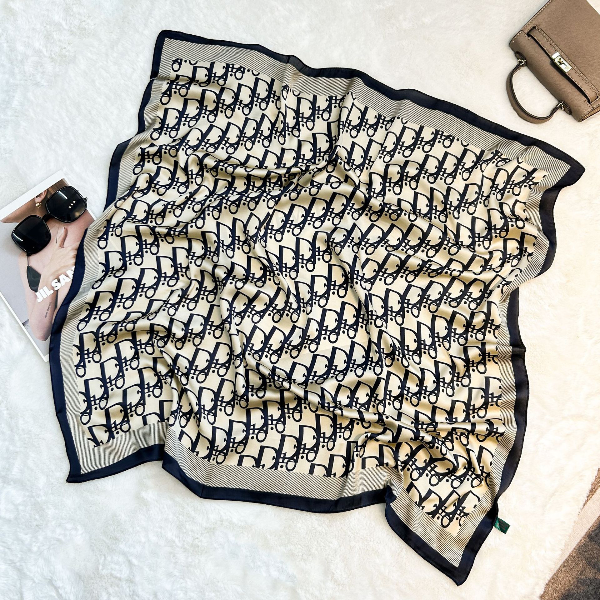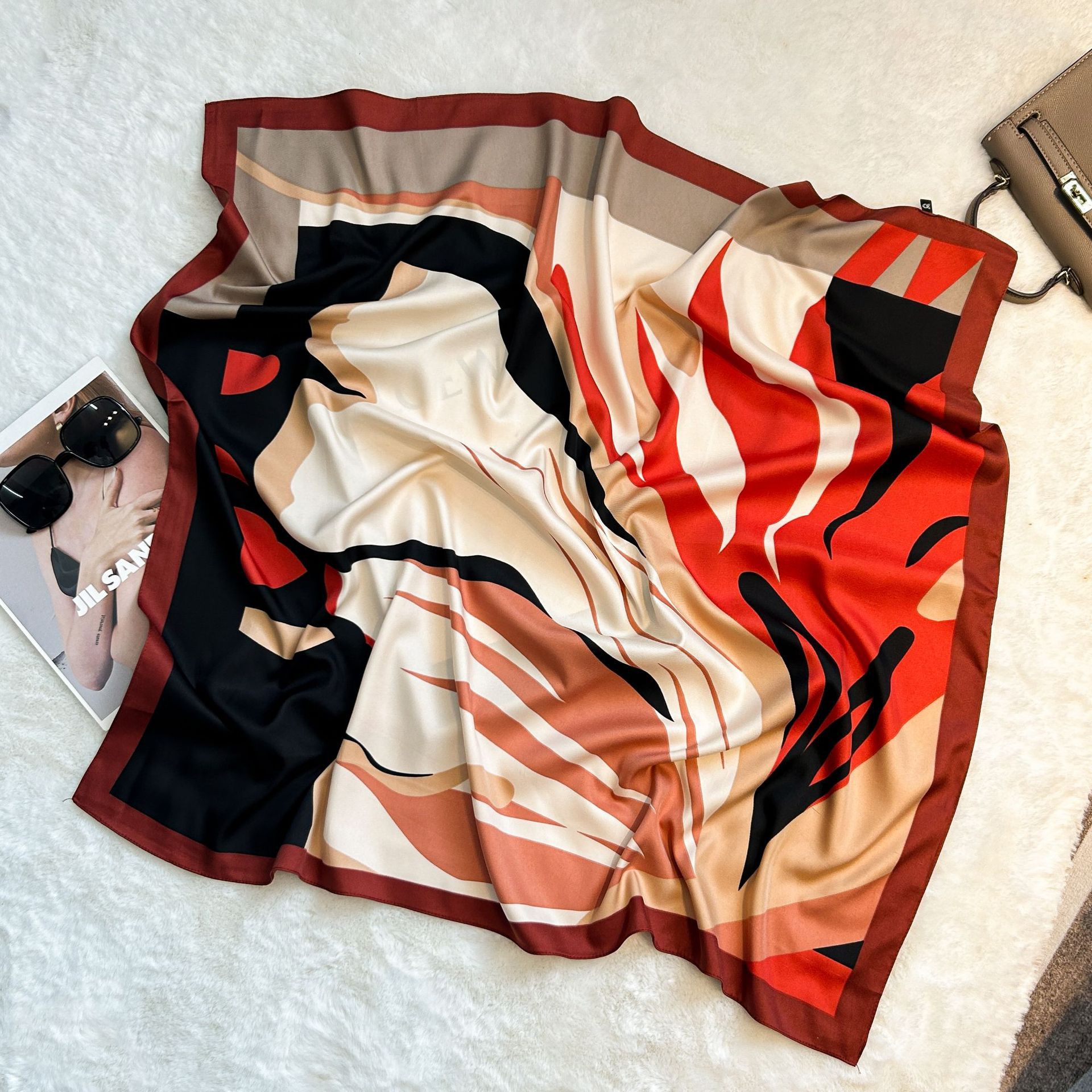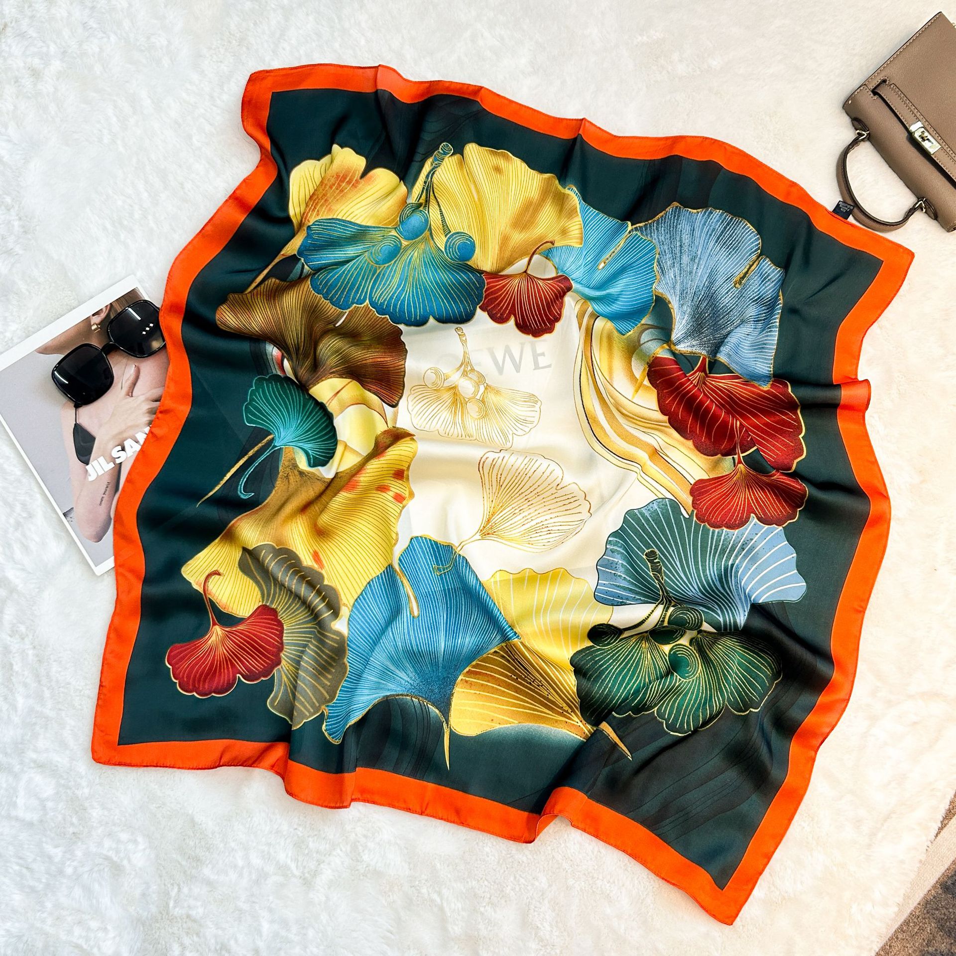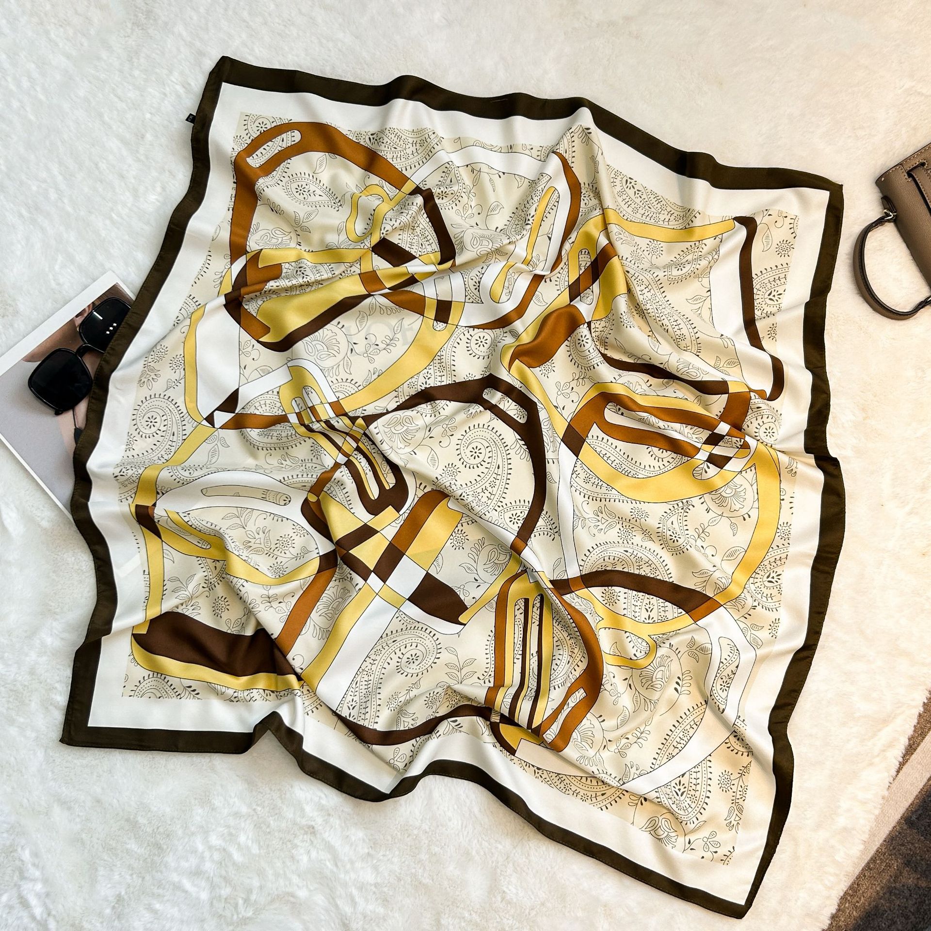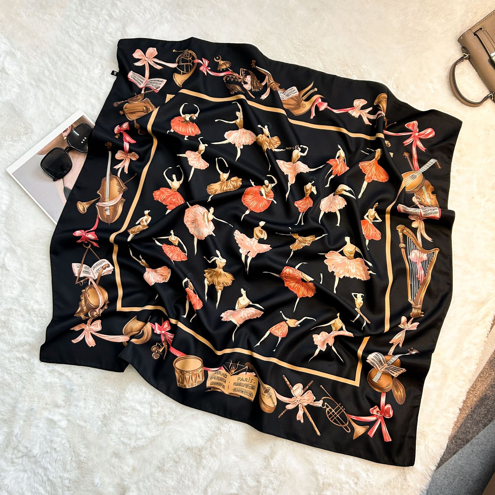 실크 스카프 레트로 90 대형 스퀘어 스카프 트윌 인쇄 한국식 실크 하이 엔드 센스 장식 선물 스카프 도매스토어 가기