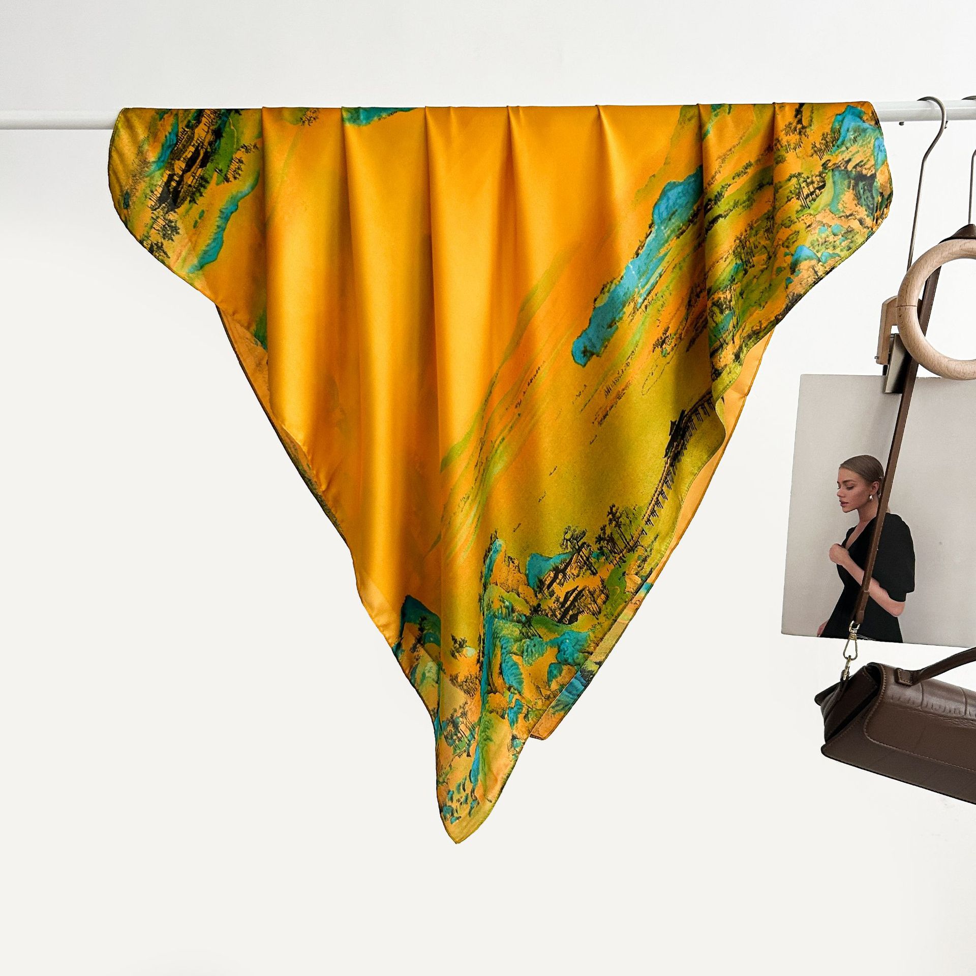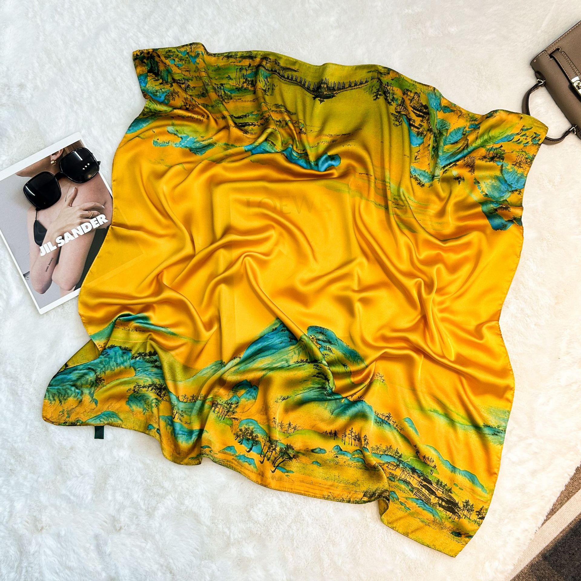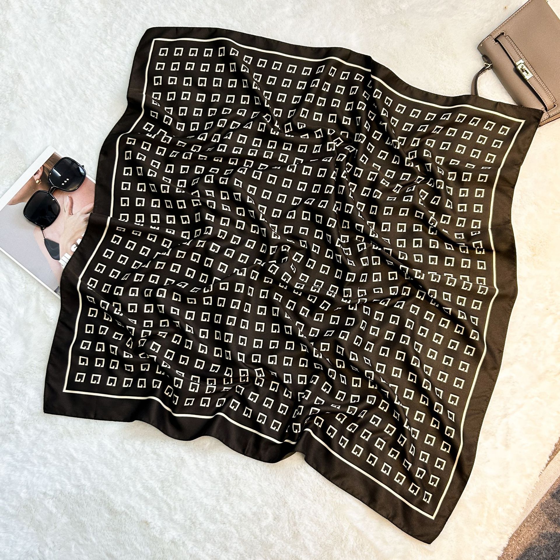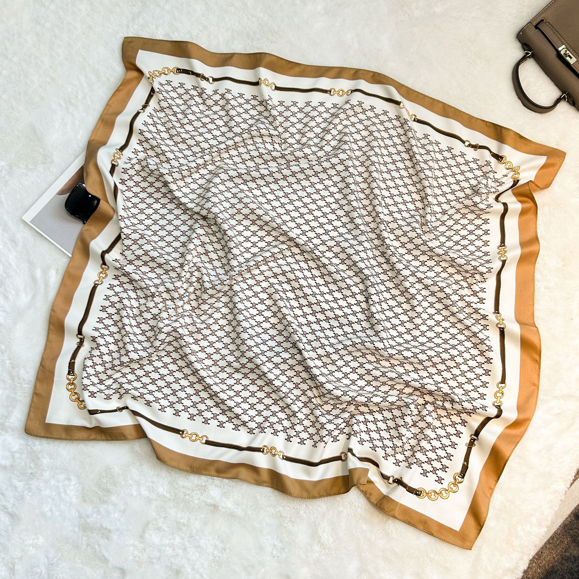 실크 스카프 레트로 90 대형 스퀘어 스카프 트윌 인쇄 한국식 실크 하이 엔드 센스 장식 선물 스카프 도매스토어 가기