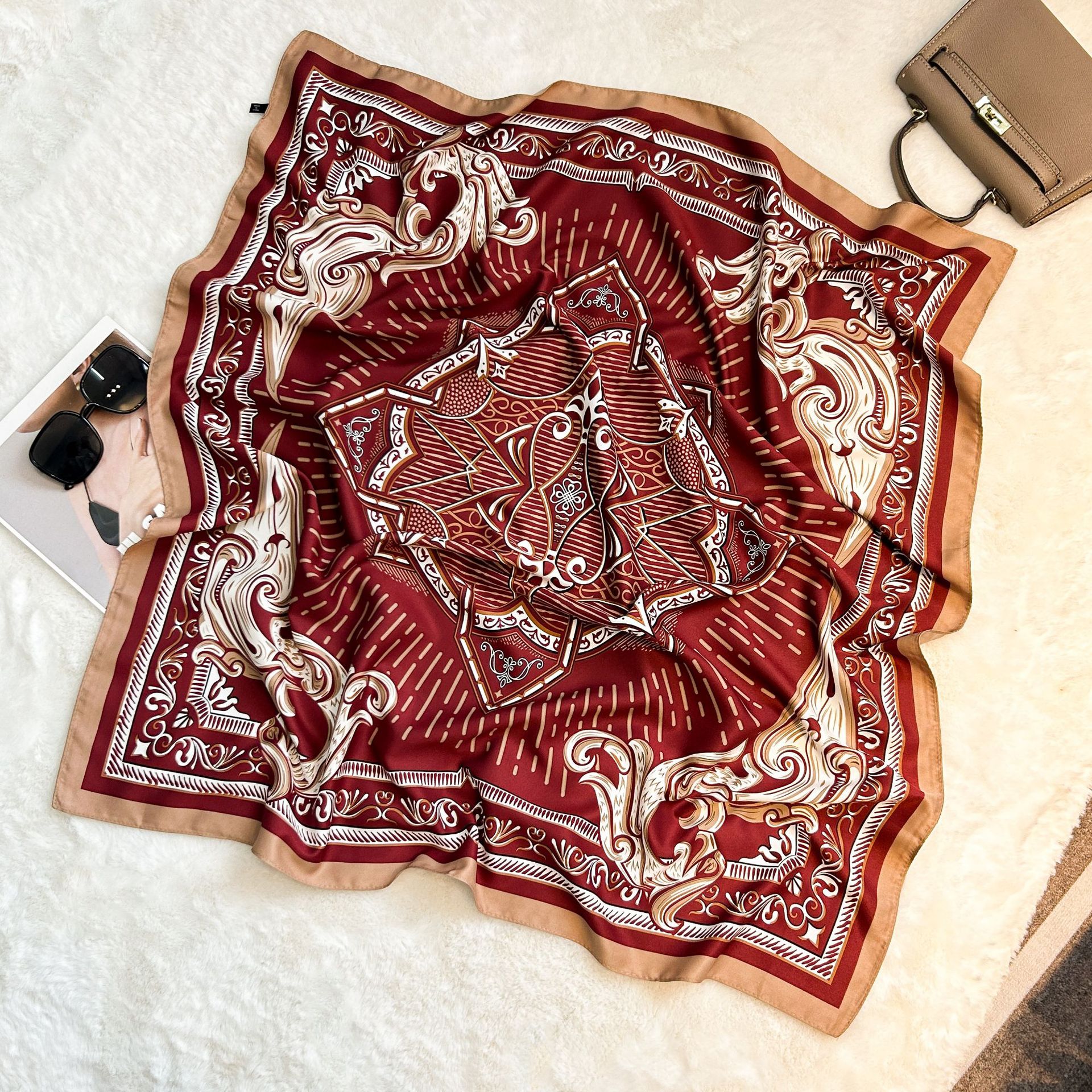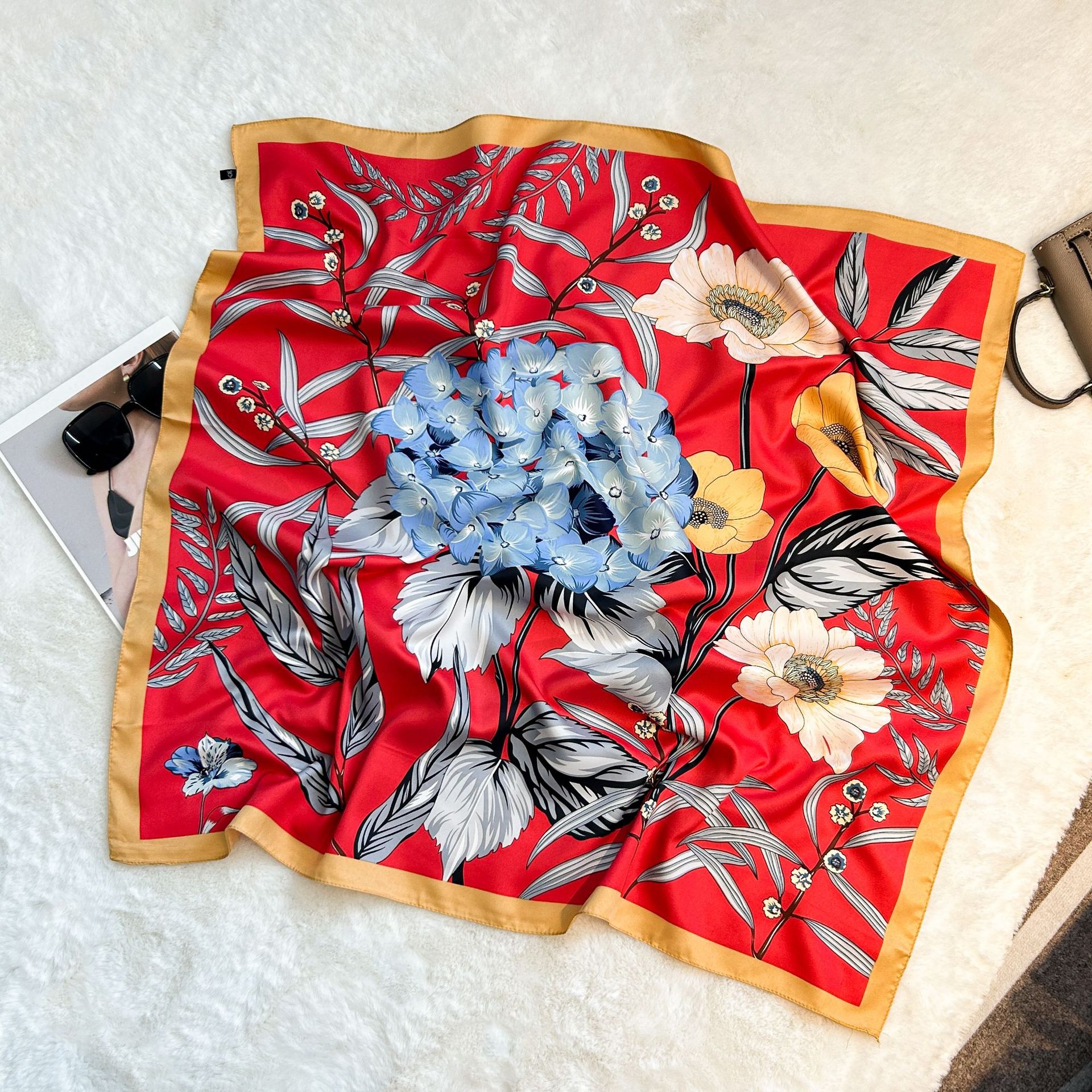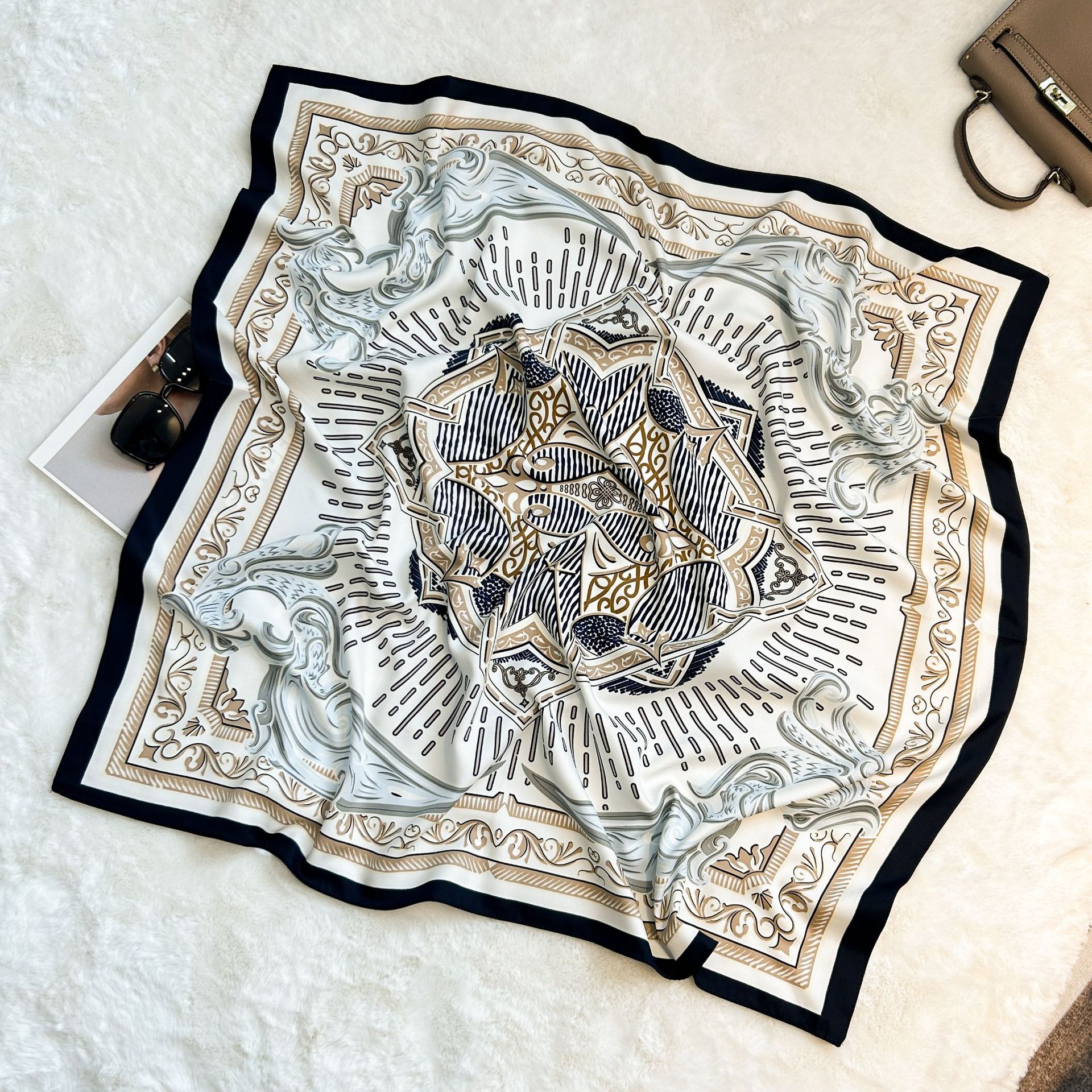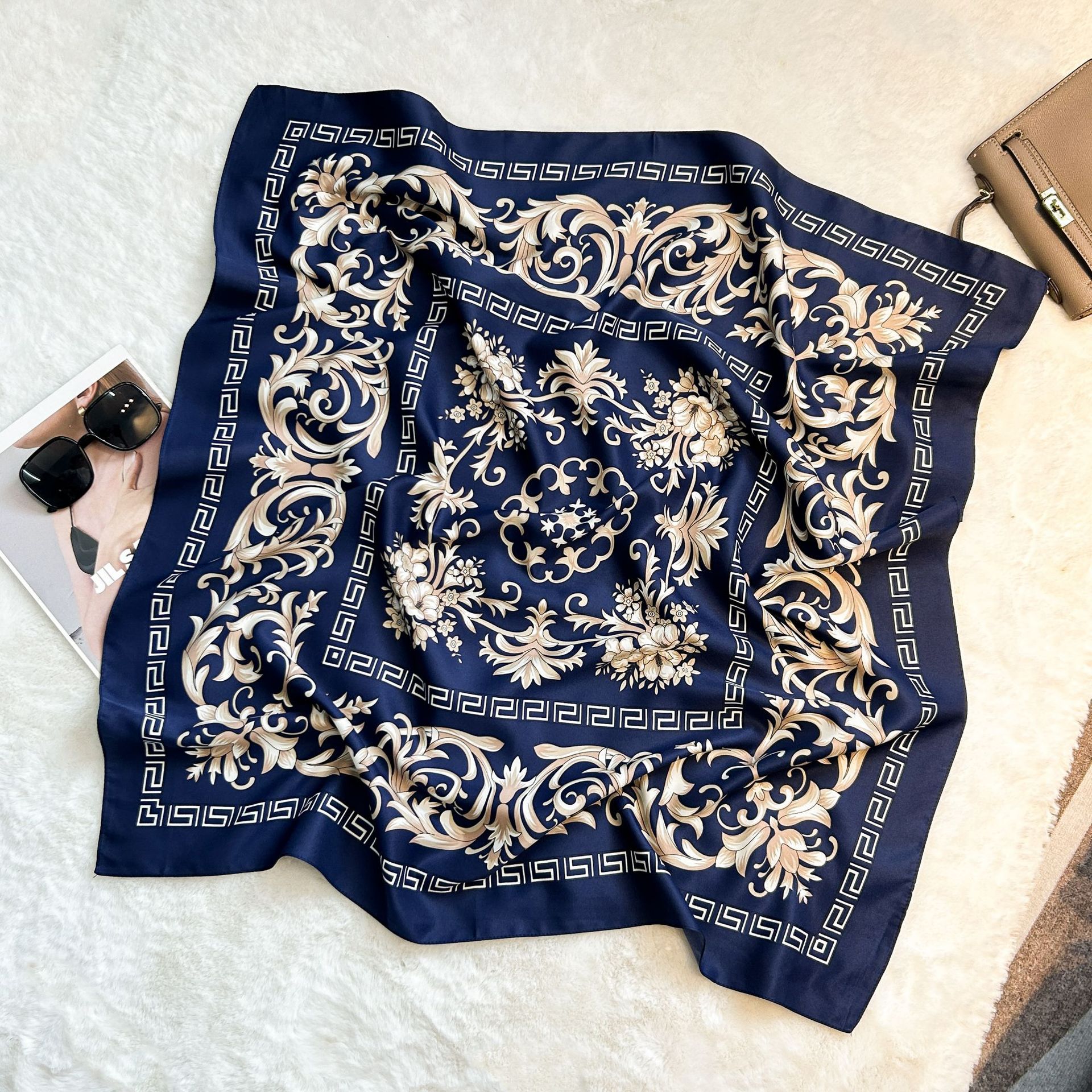 실크 스카프 레트로 90 대형 스퀘어 스카프 트윌 인쇄 한국식 실크 하이 엔드 센스 장식 선물 스카프 도매