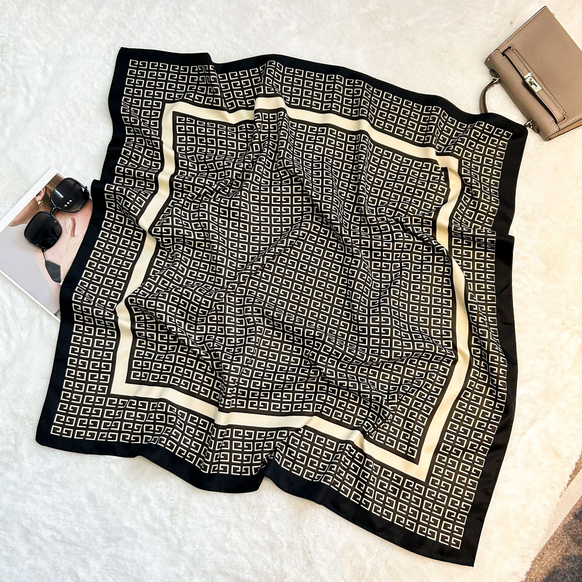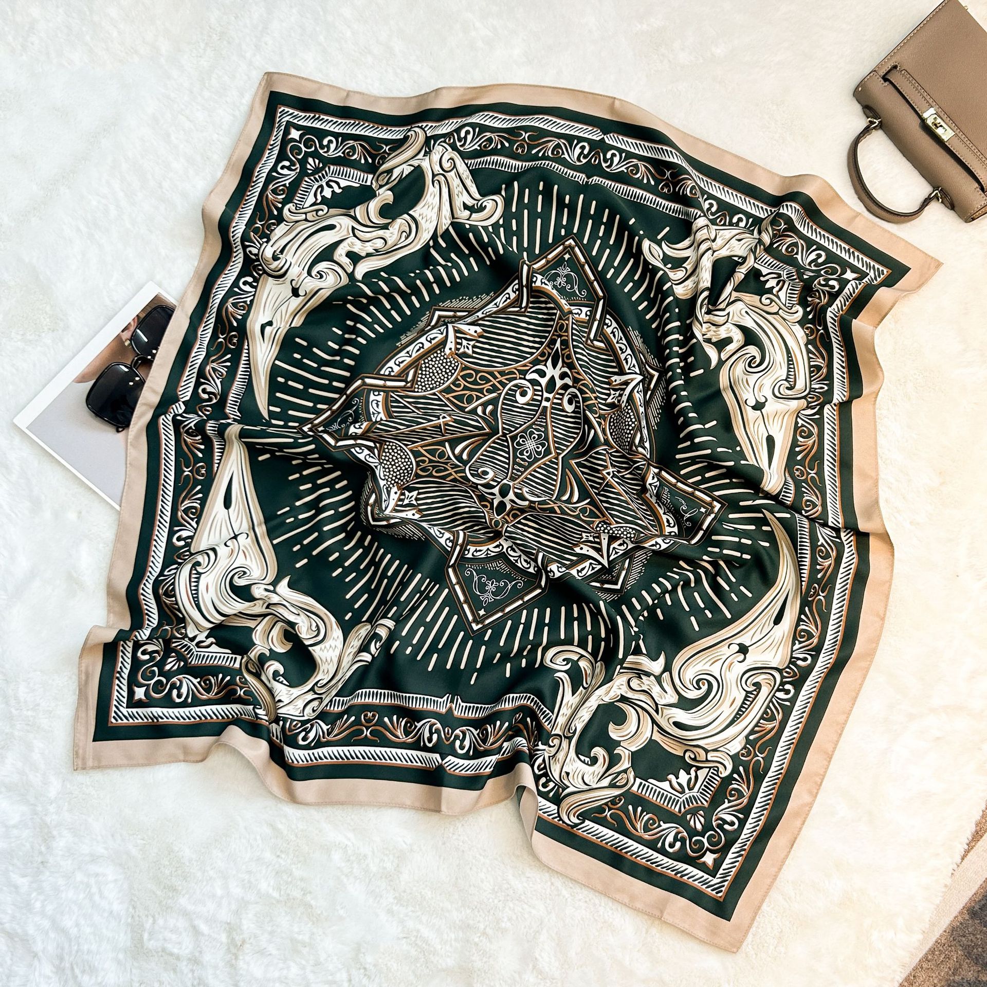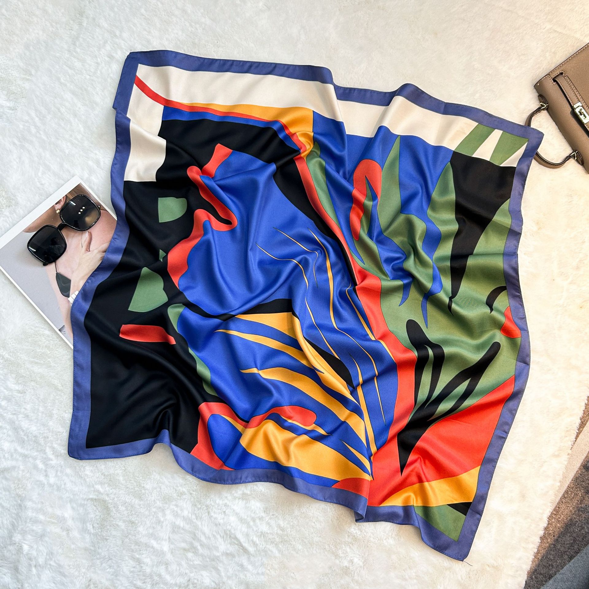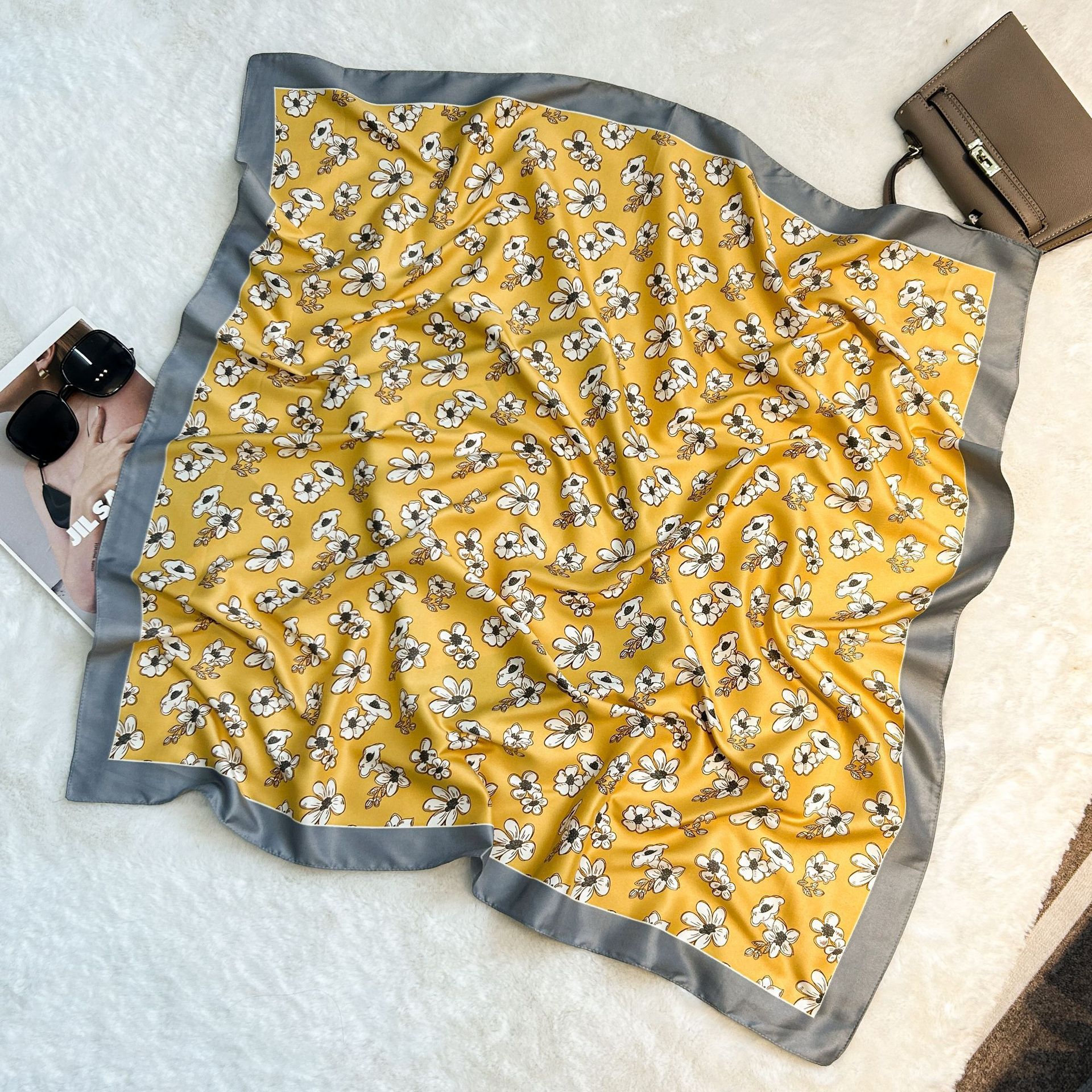 실크 스카프 레트로 90 대형 스퀘어 스카프 트윌 인쇄 한국식 실크 하이 엔드 센스 장식 선물 스카프 도매