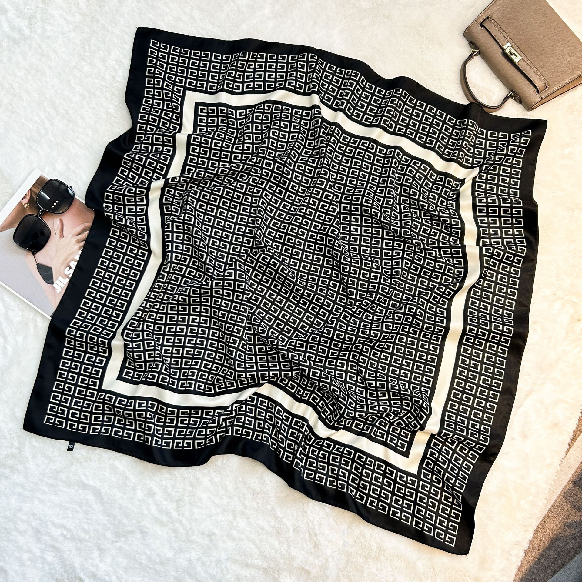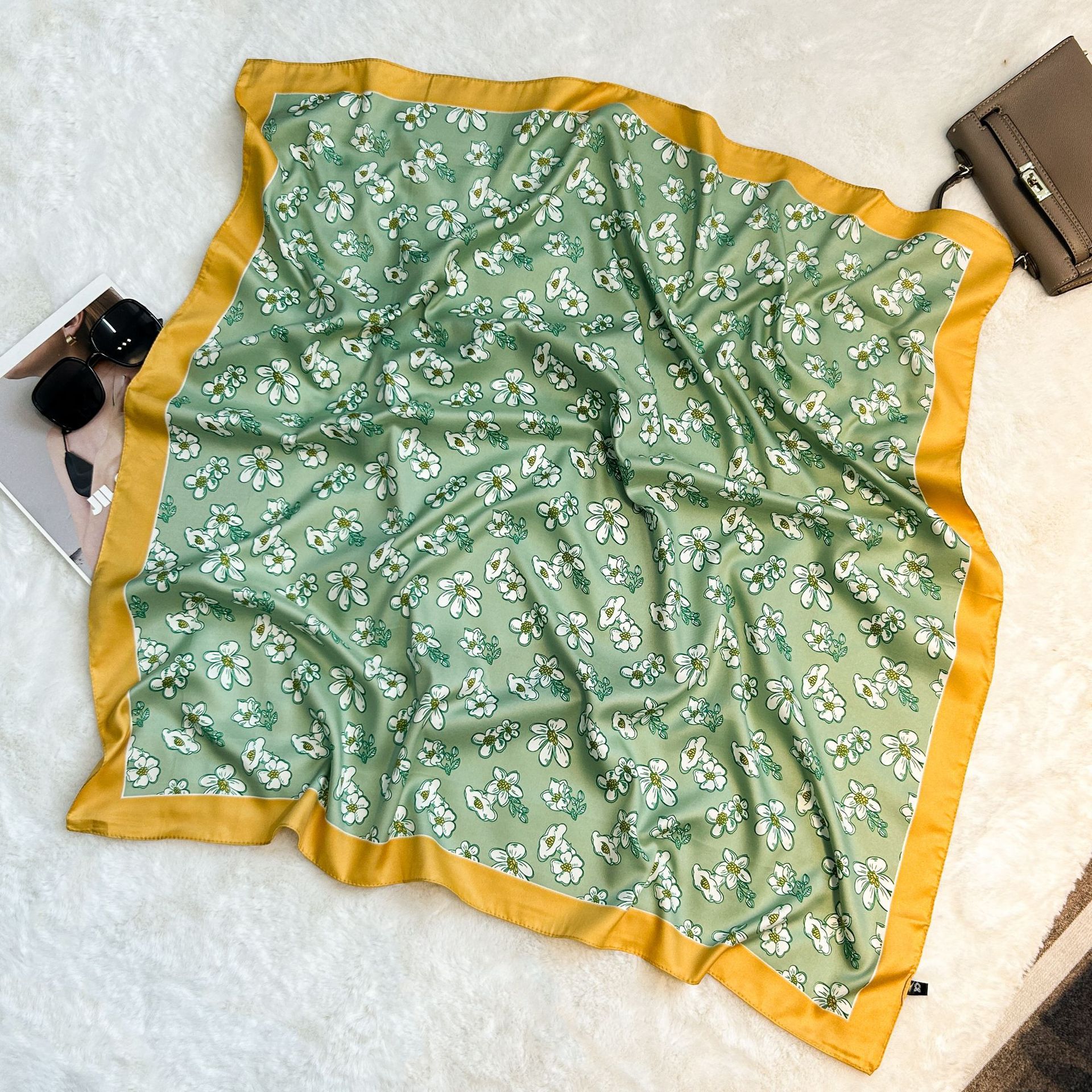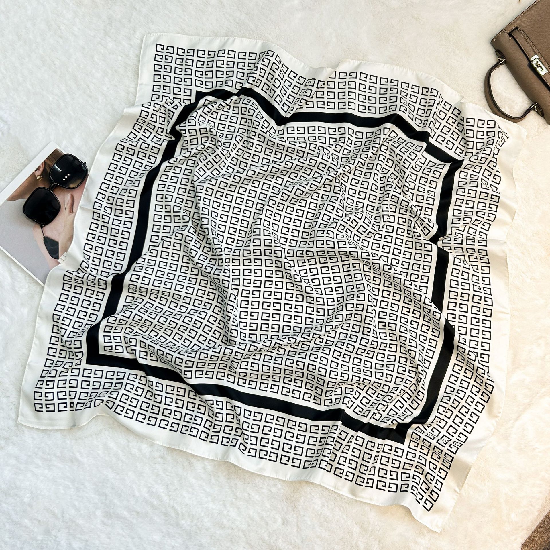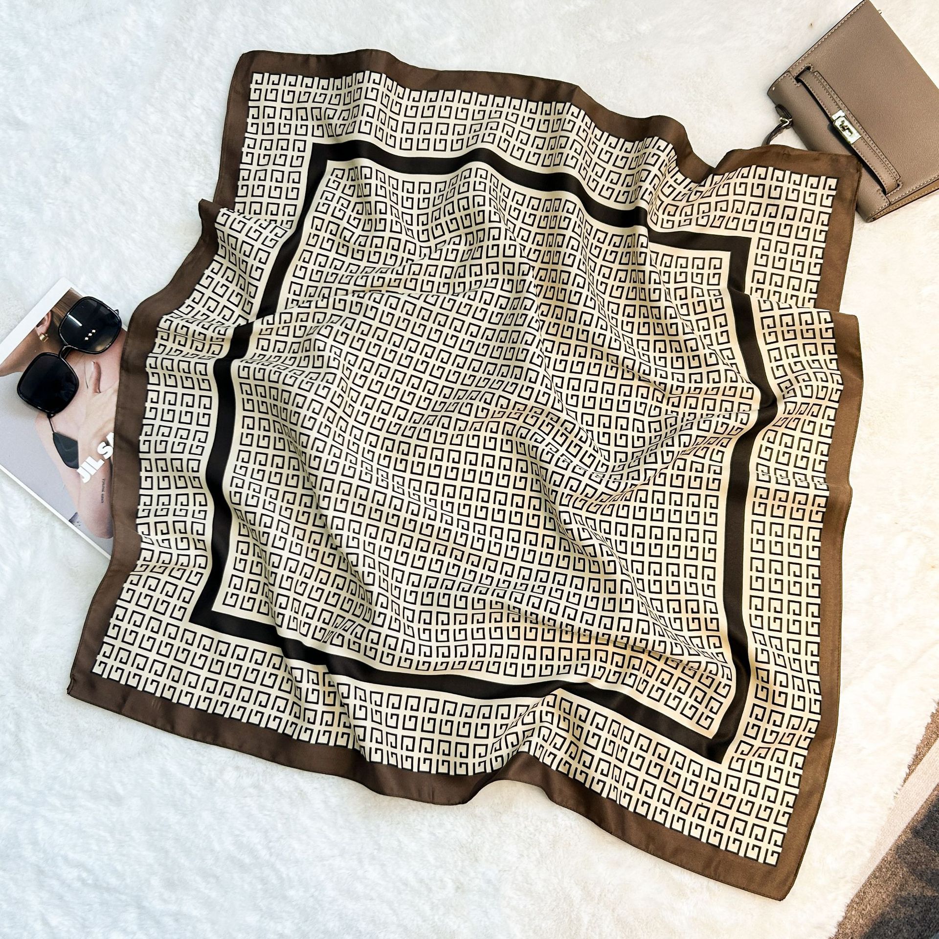 실크 스카프 레트로 90 대형 스퀘어 스카프 트윌 인쇄 한국식 실크 하이 엔드 센스 장식 선물 스카프 도매