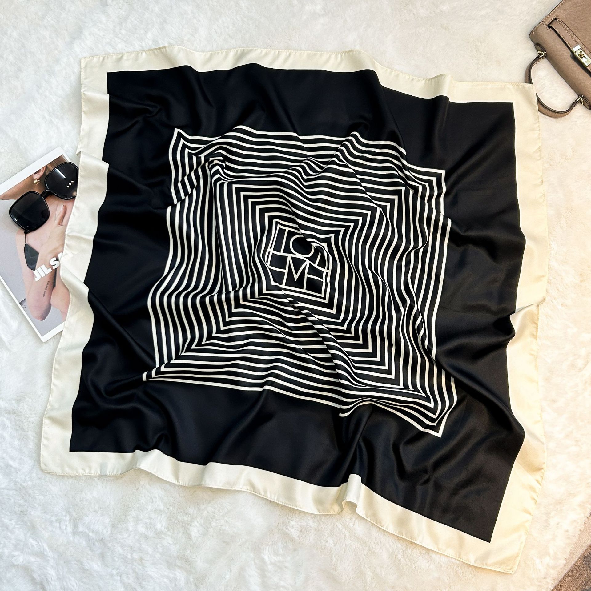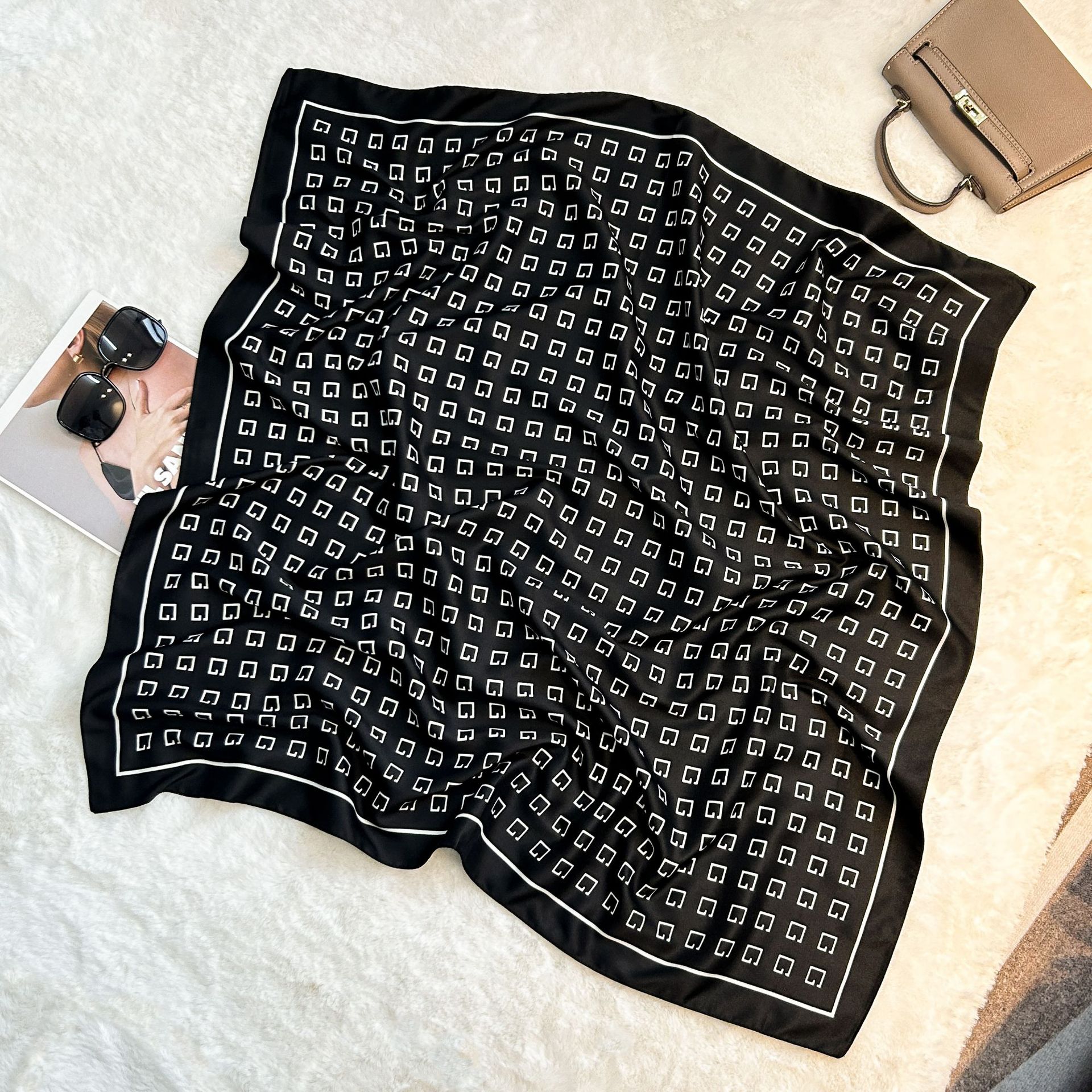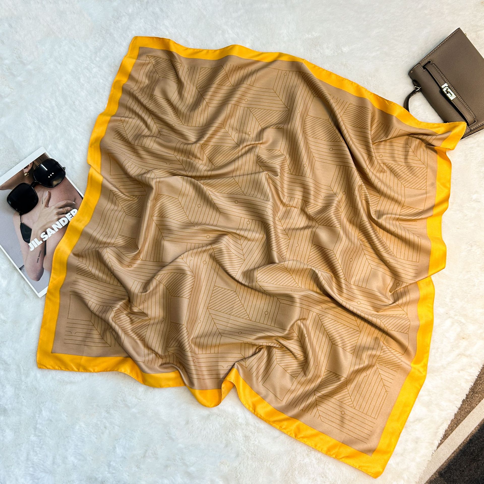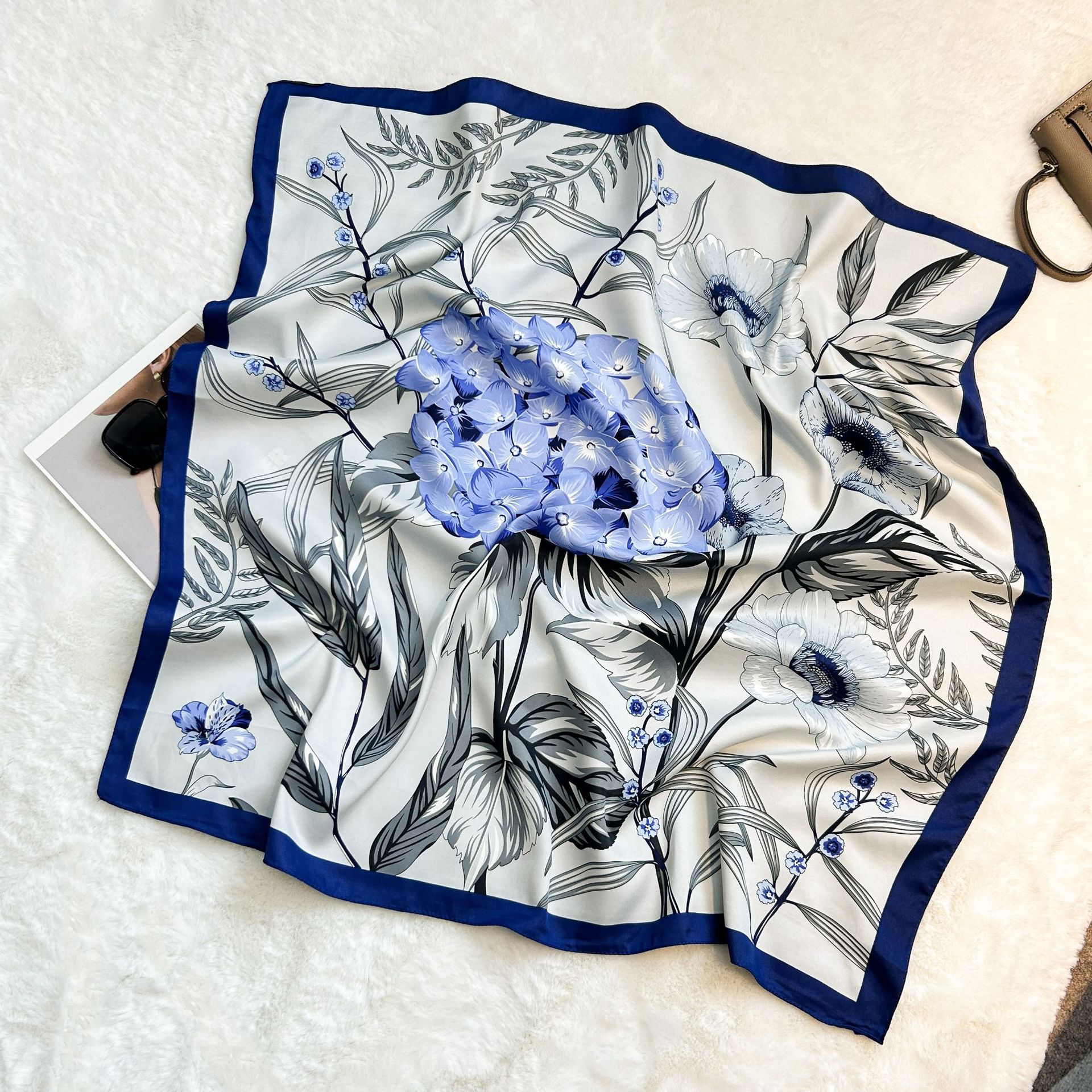 실크 스카프 레트로 90 대형 스퀘어 스카프 트윌 인쇄 한국식 실크 하이 엔드 센스 장식 선물 스카프 도매