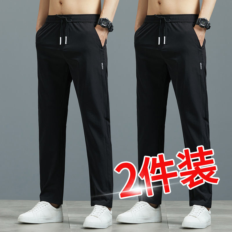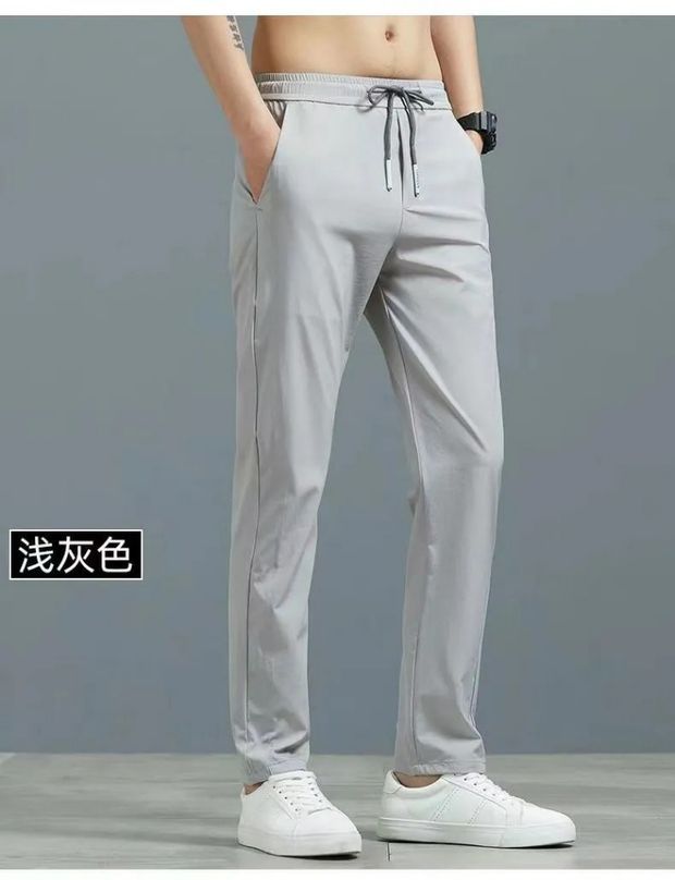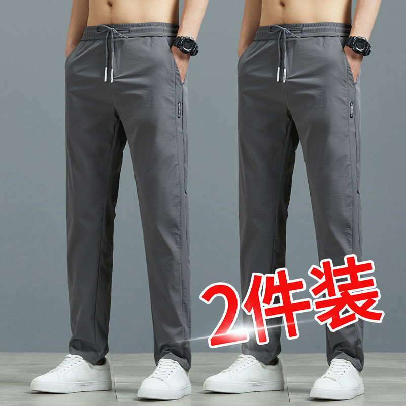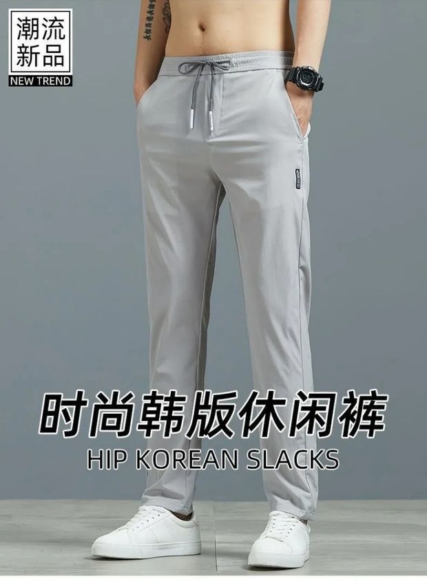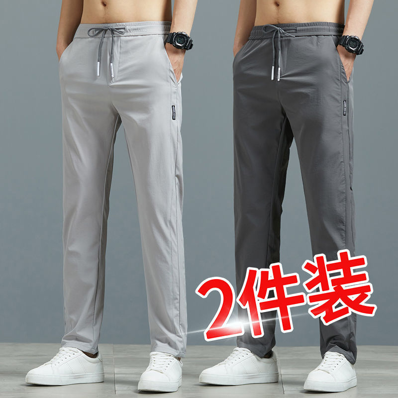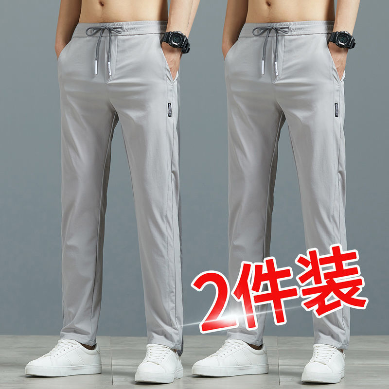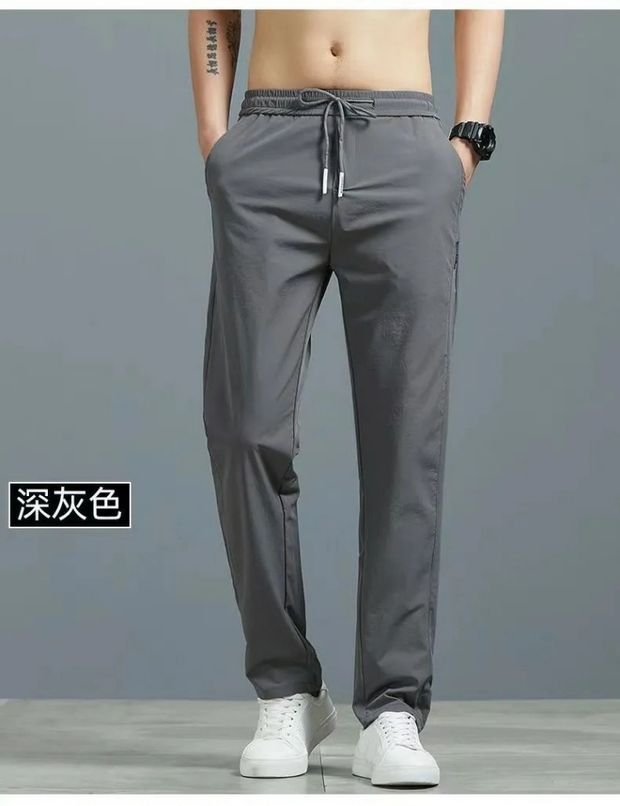작업 바지 남성용 얇은 아이스 실크 스포츠 바지 탄성 밴드 스트레이트 팬츠 남성용 느슨한 캐주얼 작업 바지스토어 가기