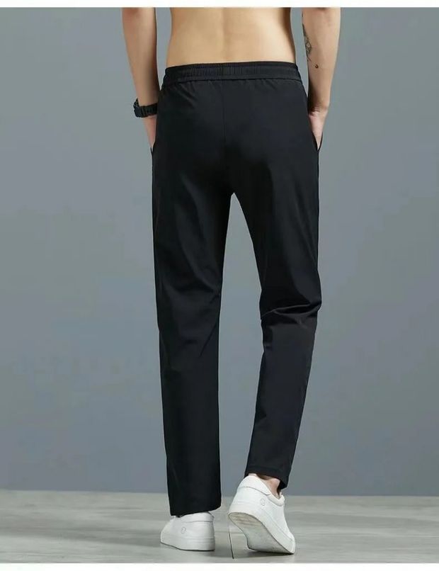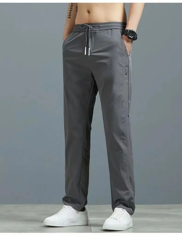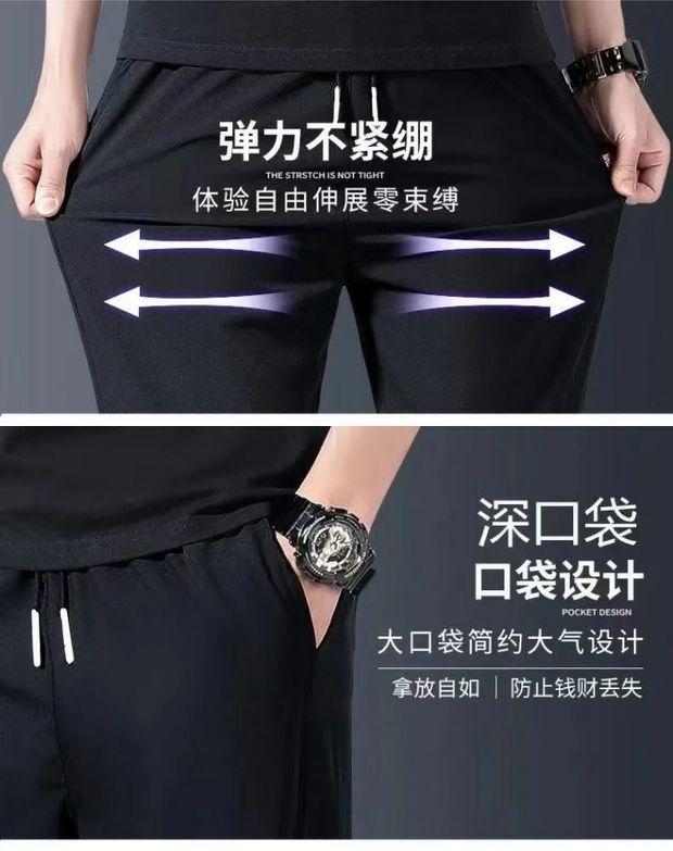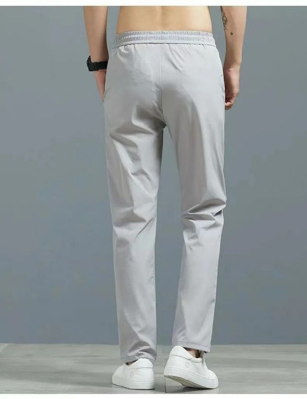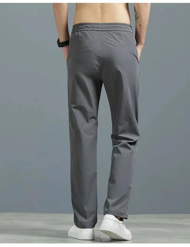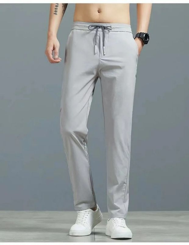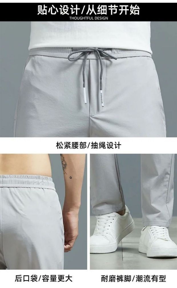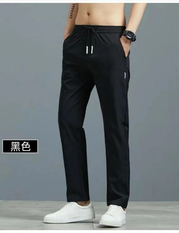 작업 바지 남성용 얇은 아이스 실크 스포츠 바지 탄성 밴드 스트레이트 팬츠 남성용 느슨한 캐주얼 작업 바지스토어 가기
