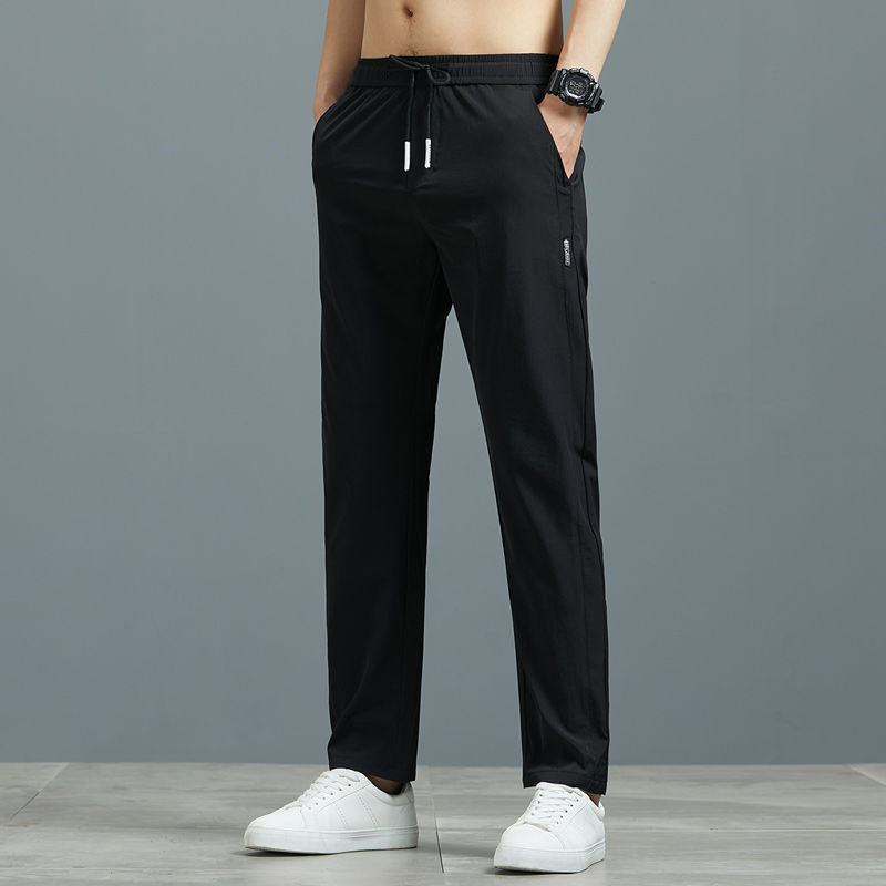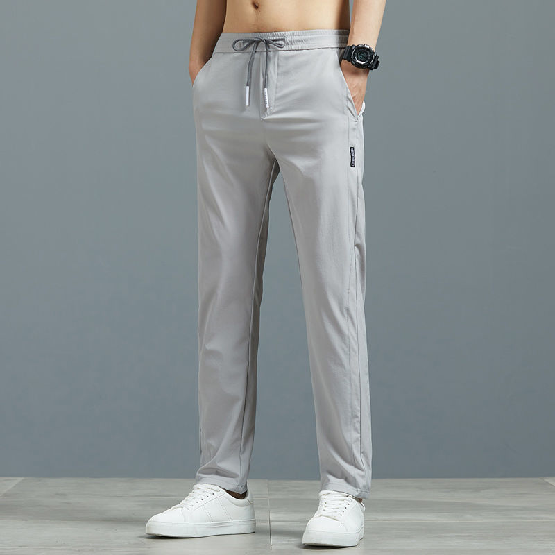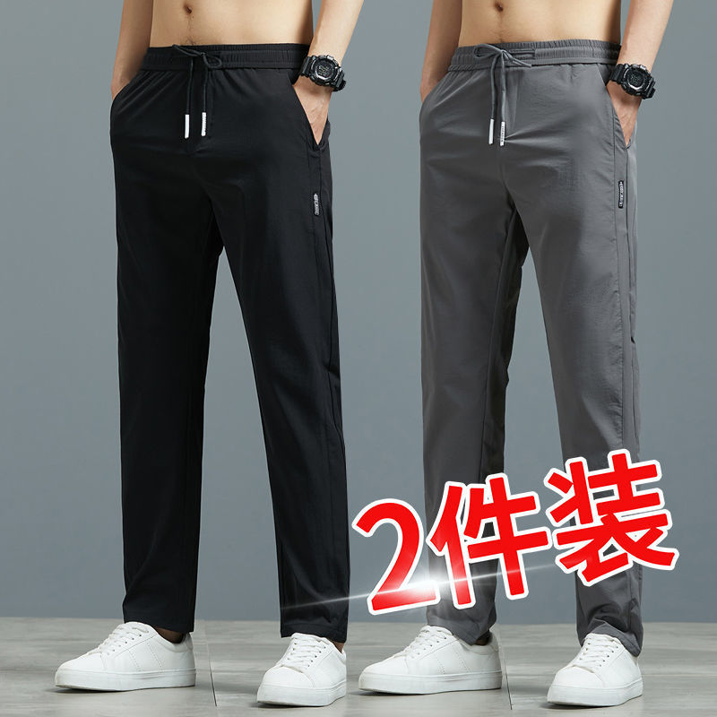작업 바지 남성용 얇은 아이스 실크 스포츠 바지 탄성 밴드 스트레이트 팬츠 남성용 느슨한 캐주얼 작업 바지