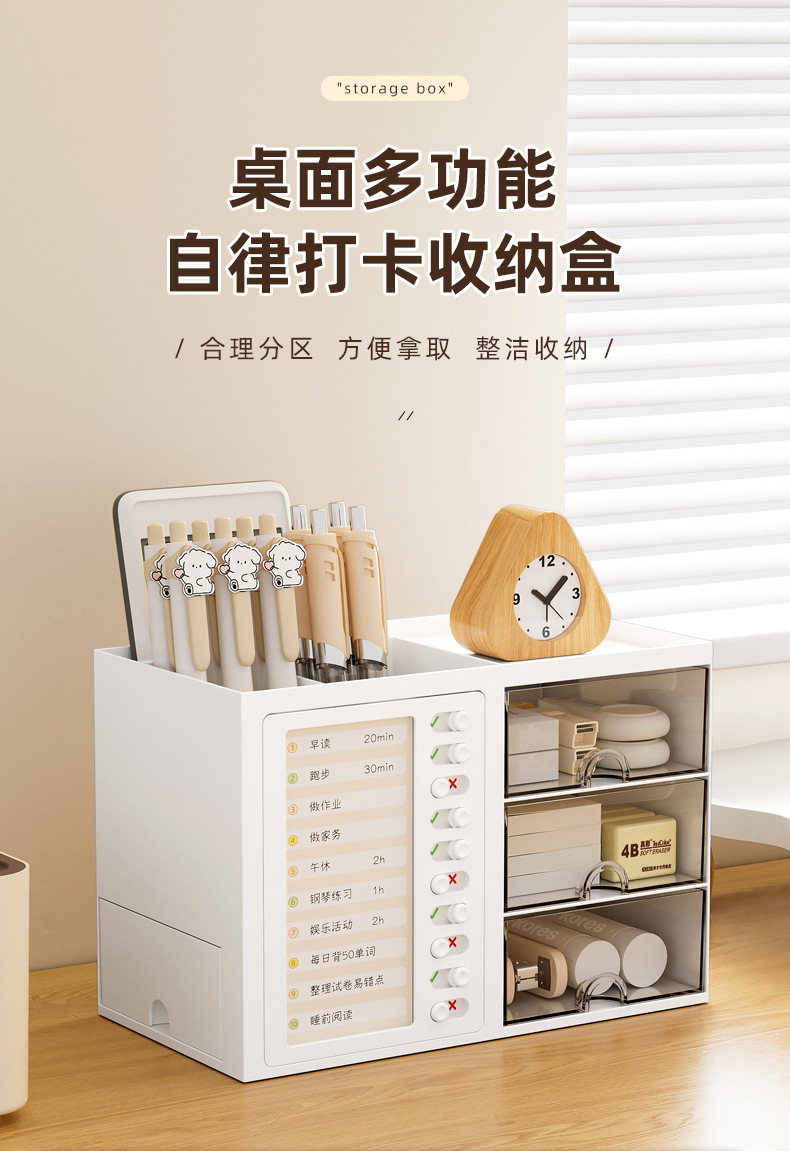 데스크탑 다기능 펜 홀더 자체 훈련 펀치 서랍 형 저장 상자 학생 기숙사 책상 문구 잡화 마무리 상자스토어 가기