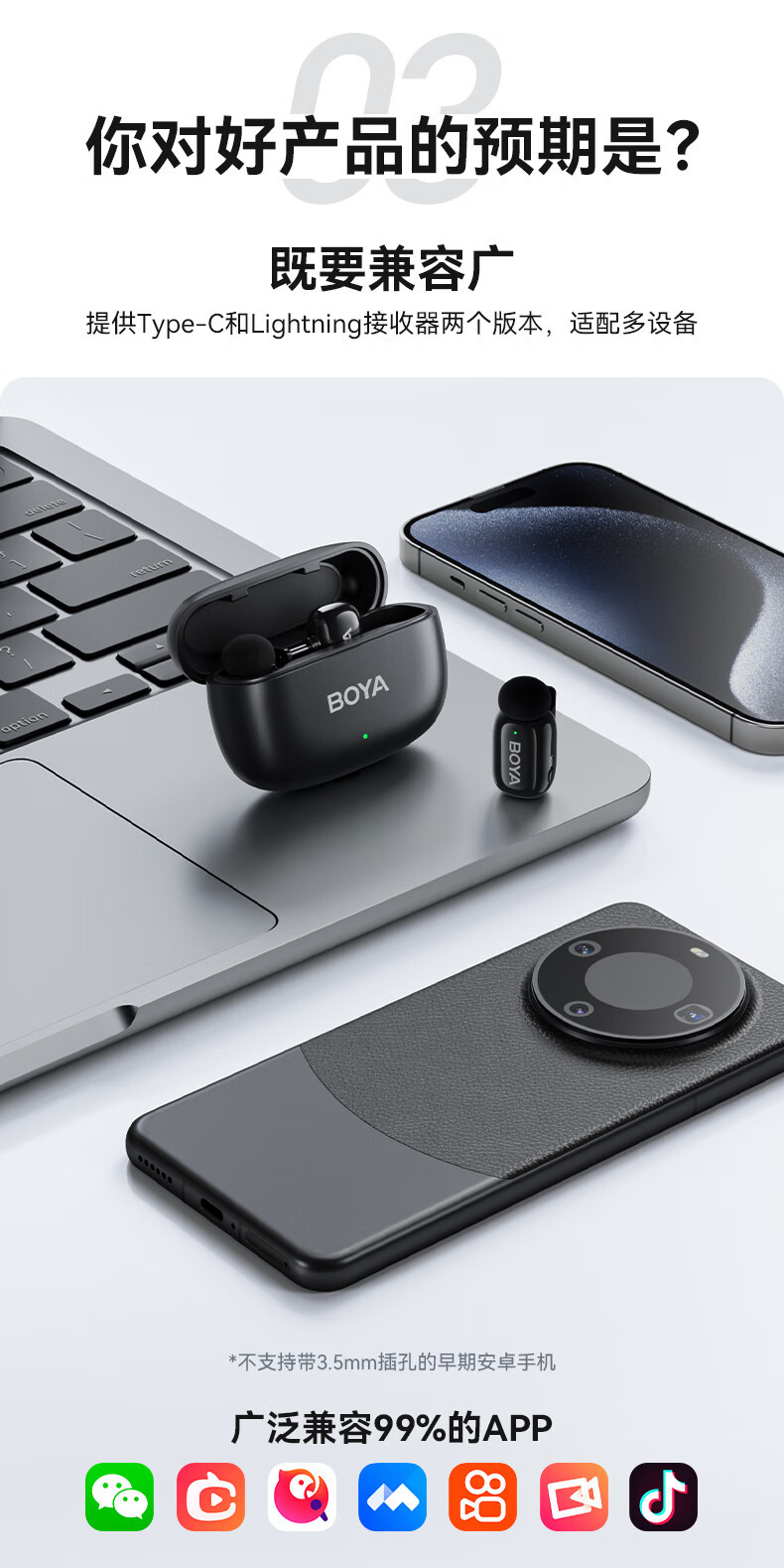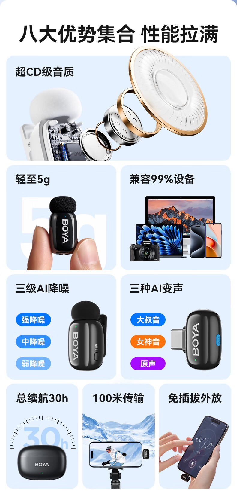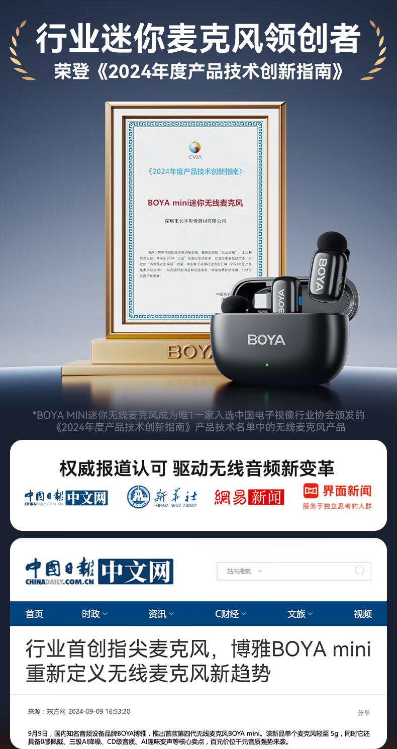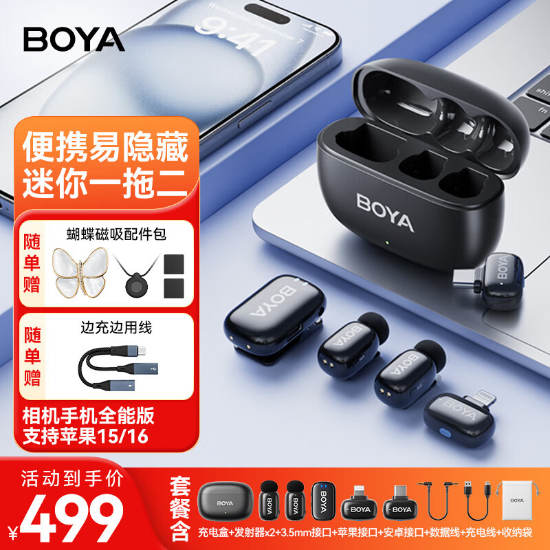 BOYA Boya 미니 미니 마이크 무선 마이크 칼라 클립 라디오 마이크 휴대 전화 라이브 야외 짧은 비디오스토어 가기