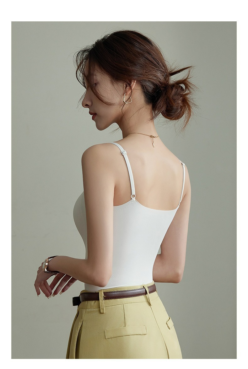6631 원활한 아이스 실크 캐미솔 여성의 가슴 패드 내부 착용 아름다운 등 긴 기본 외부 착용 긴 얇은 탑