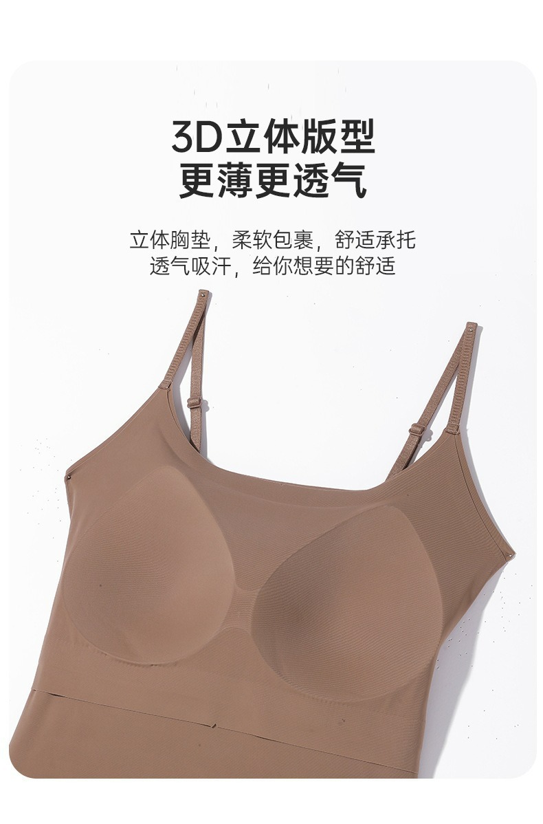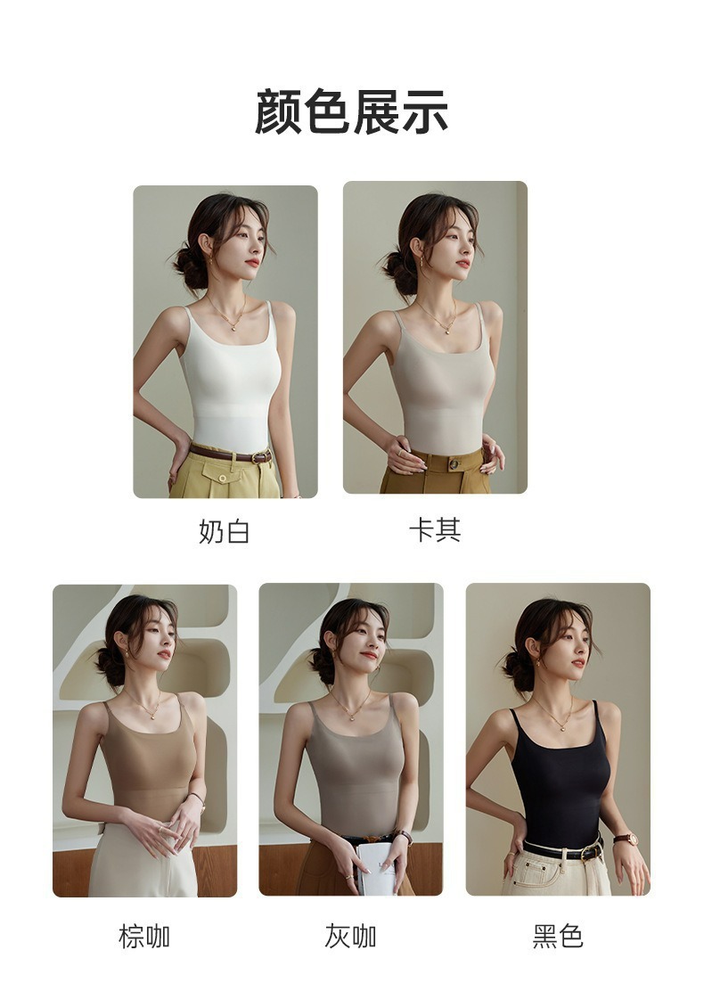 6631 원활한 아이스 실크 캐미솔 여성의 가슴 패드 내부 착용 아름다운 등 긴 기본 외부 착용 긴 얇은 탑스토어 가기