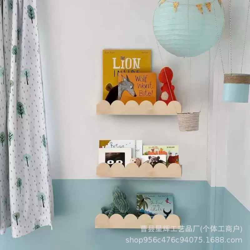 나무 벽에 장착 된 보관 랙 어린이 방 침실 단단한 나무 벽 책장 수제 마무리 랙 홈 장식 나무 랙