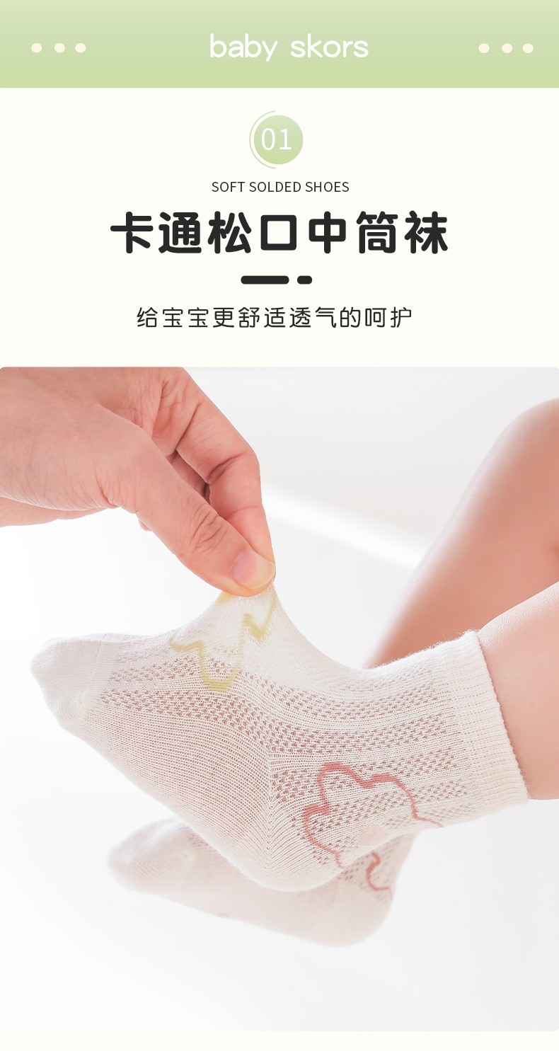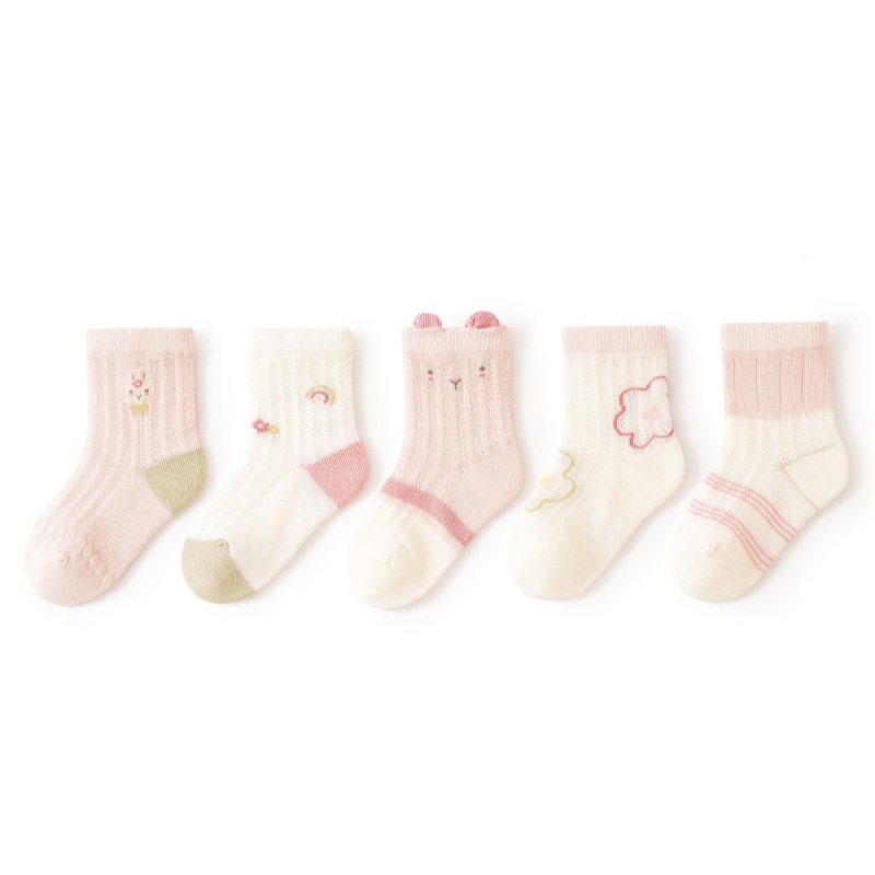 아기 양말 2025 새로운 봄과 여름 메쉬 통기성 땀 흡수성 소년 소녀 만화 어린이 양말 도매스토어 가기