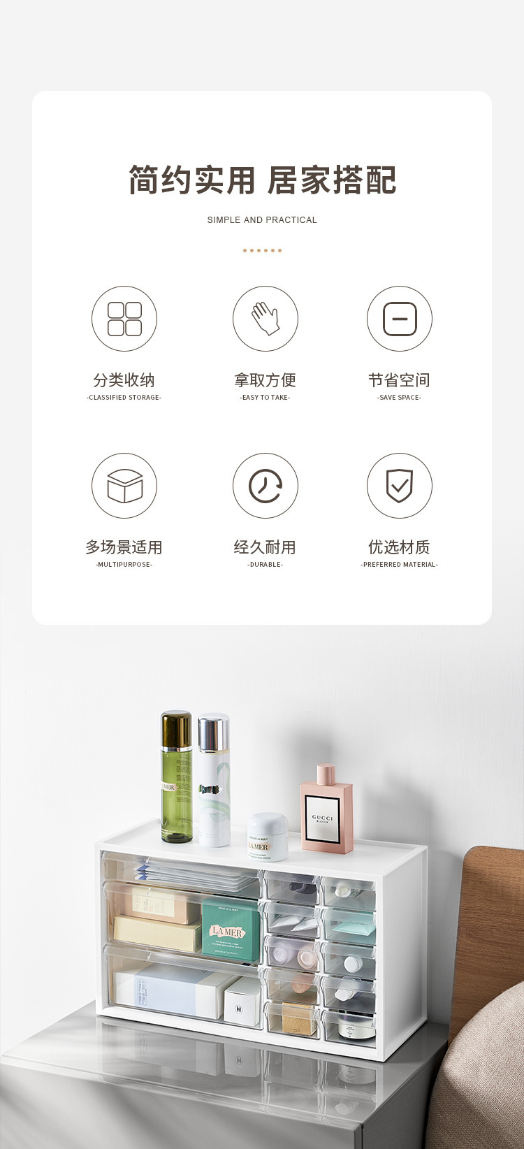 • 중간 8칸 서랍 보관함
