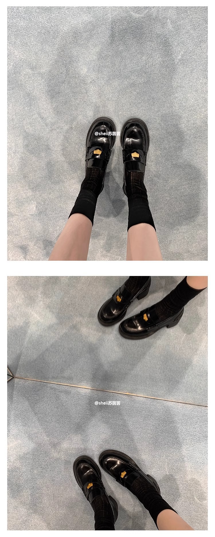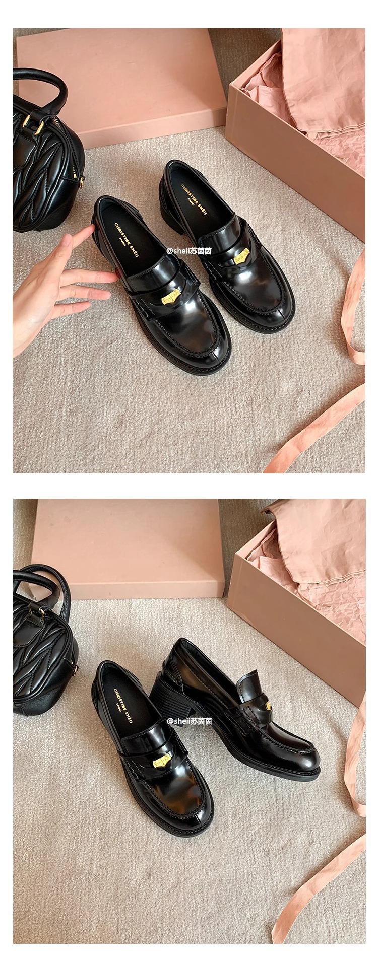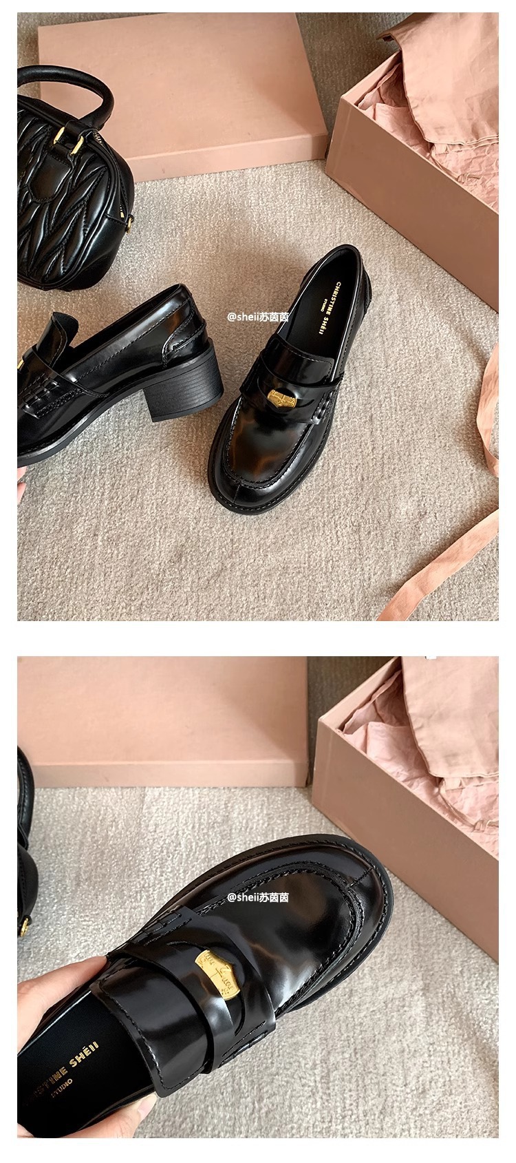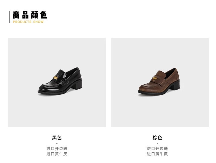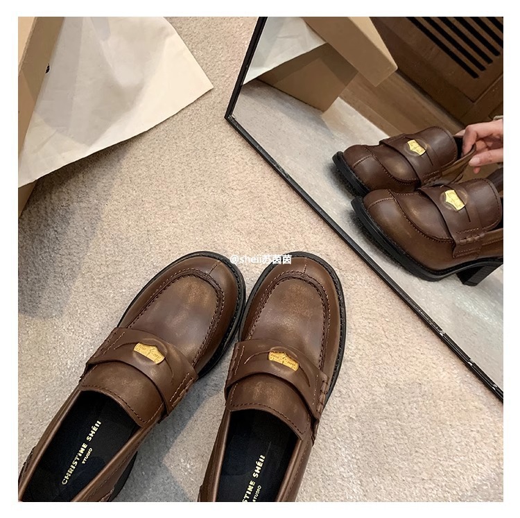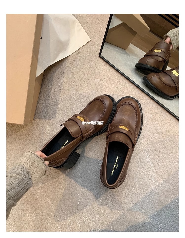 [셰이이 수 이닌] 장원잉이 같은 스타일 ~ 아미우 금화 두꺼운 힐 게으른 사랑 싱글 신발 여성용 작은 가죽 신발
