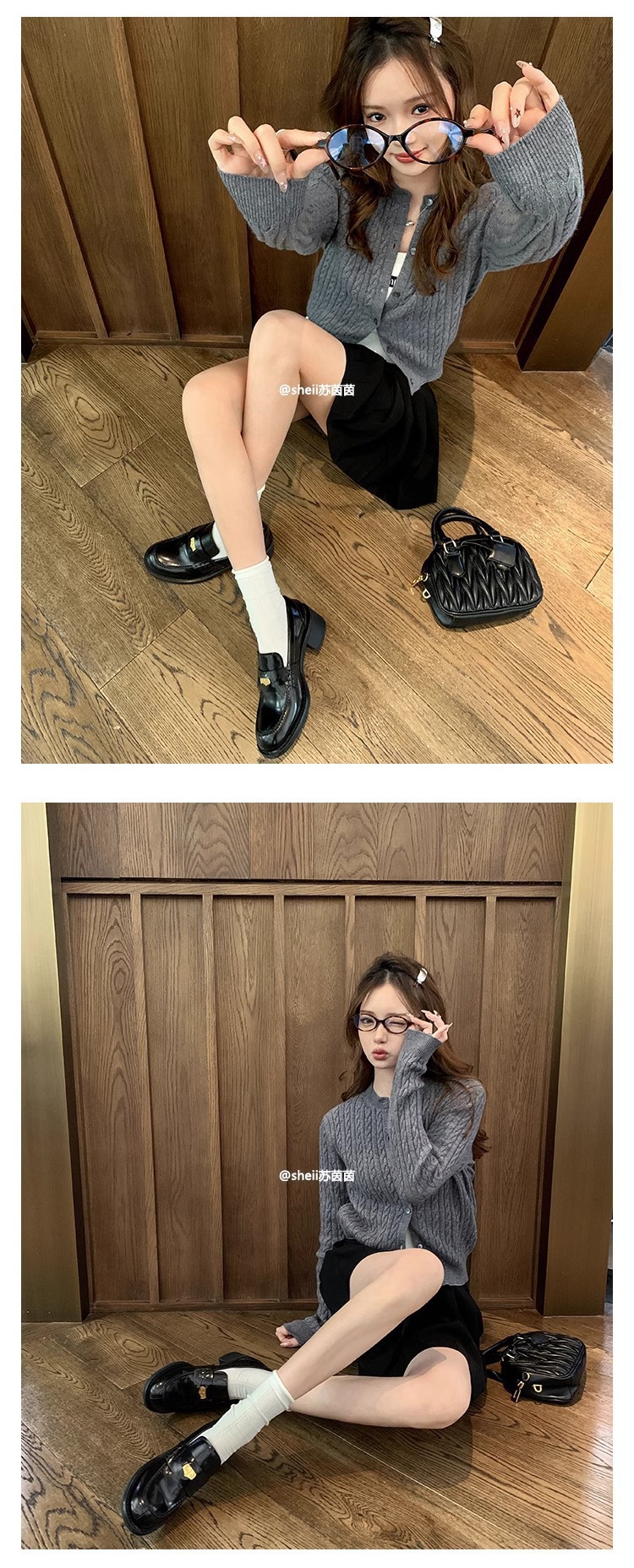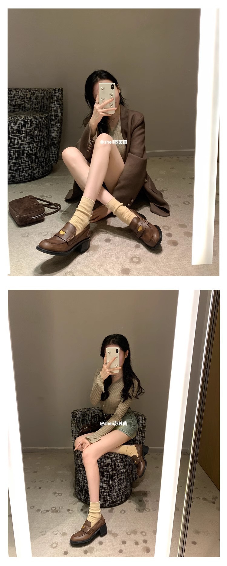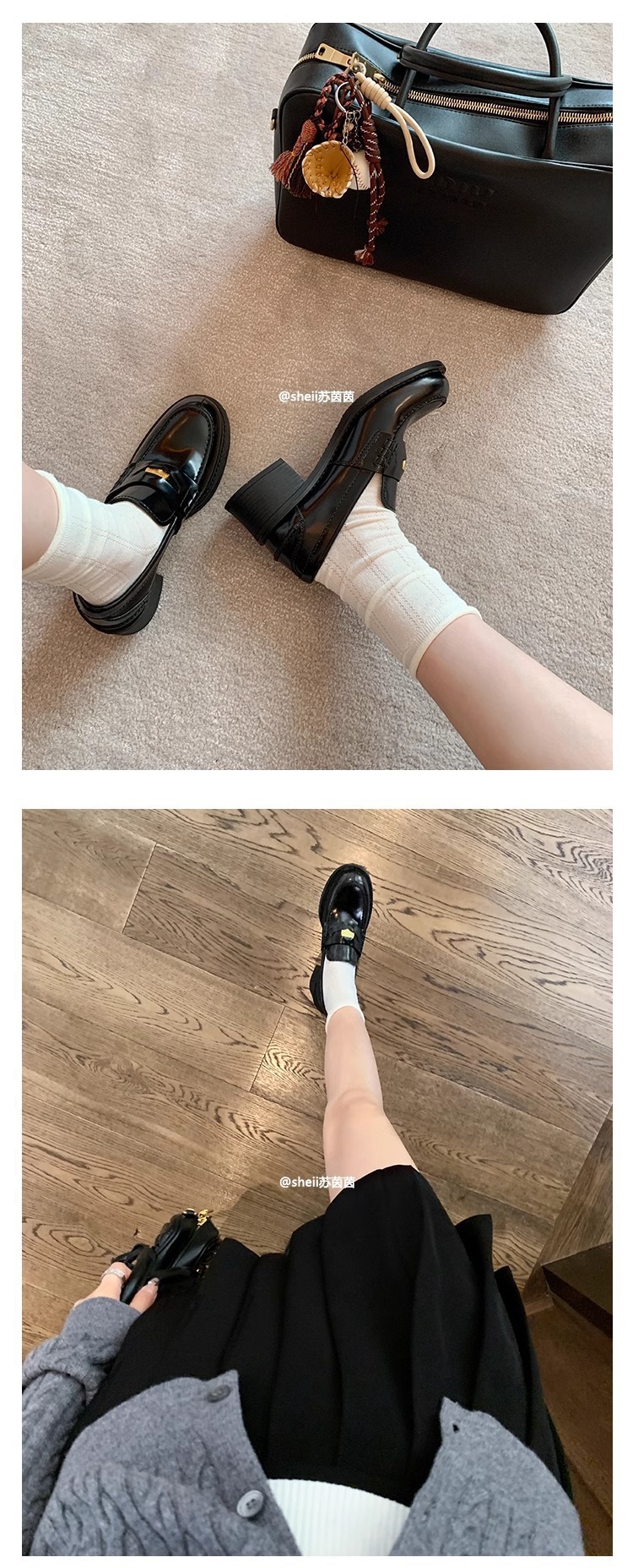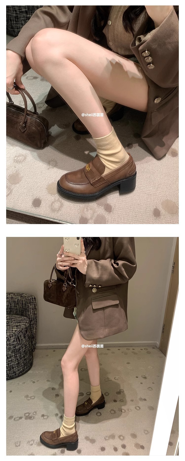 [셰이이 수 이닌] 장원잉이 같은 스타일 ~ 아미우 금화 두꺼운 힐 게으른 사랑 싱글 신발 여성용 작은 가죽 신발