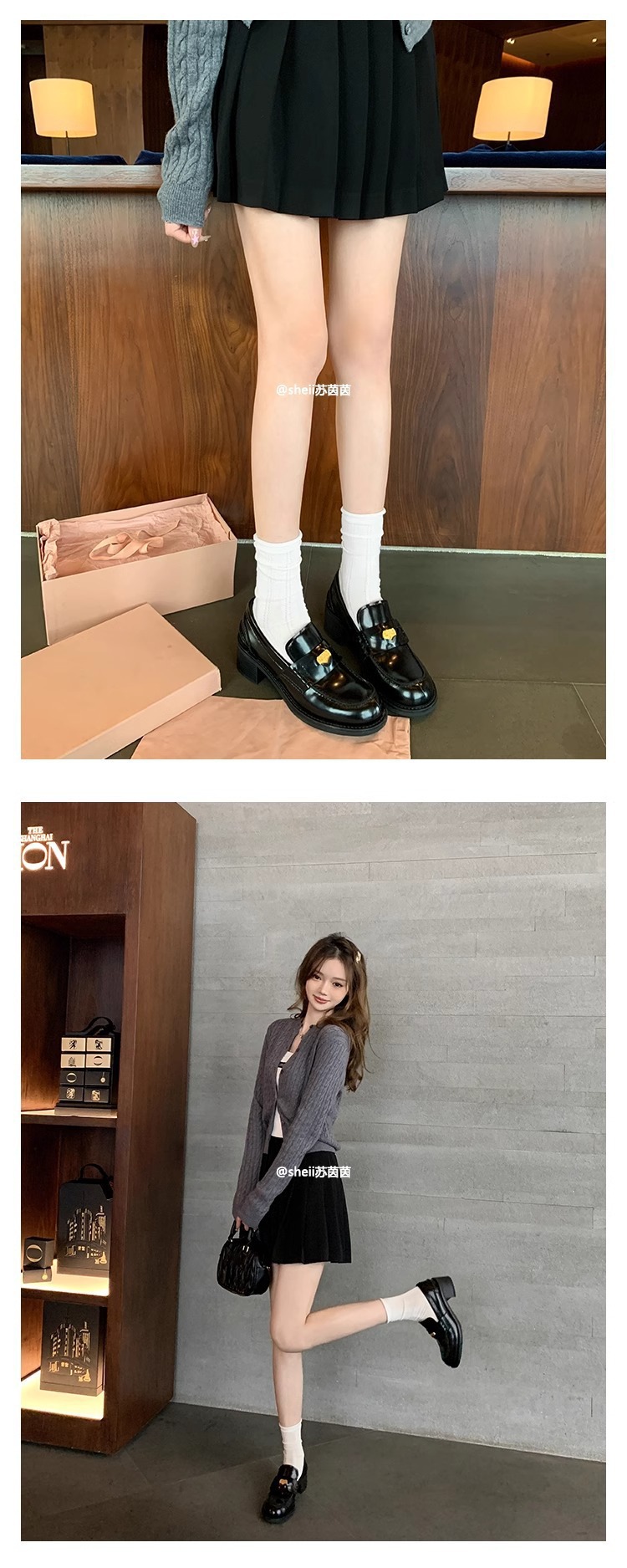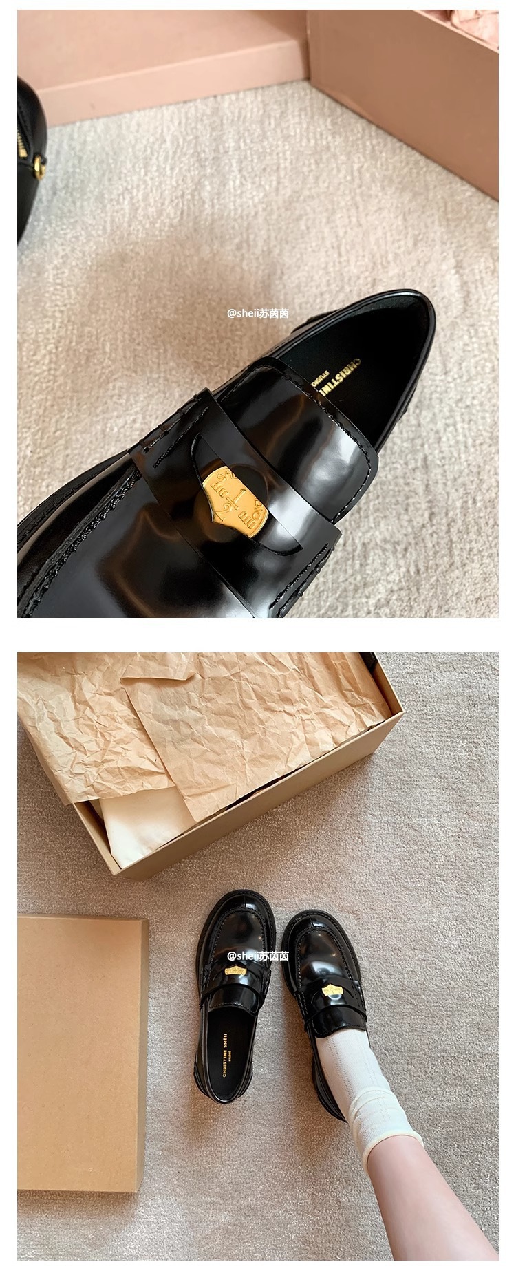[셰이이 수 이닌] 장원잉이 같은 스타일 ~ 아미우 금화 두꺼운 힐 게으른 사랑 싱글 신발 여성용 작은 가죽 신발스토어 가기