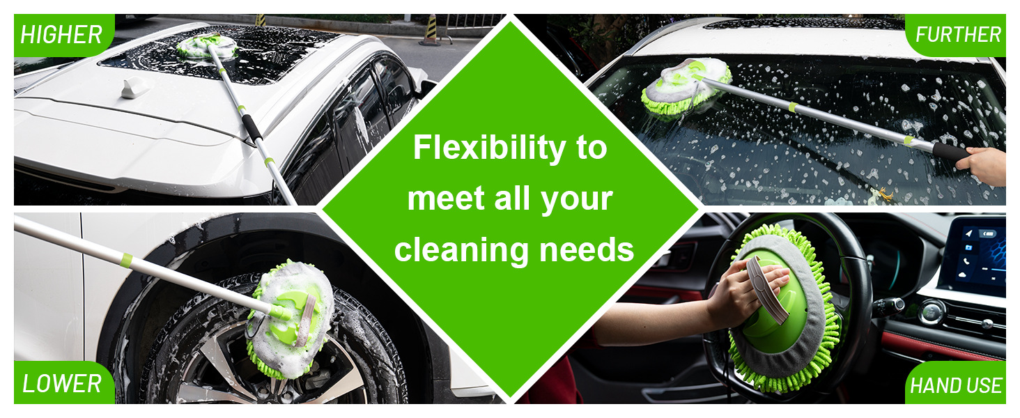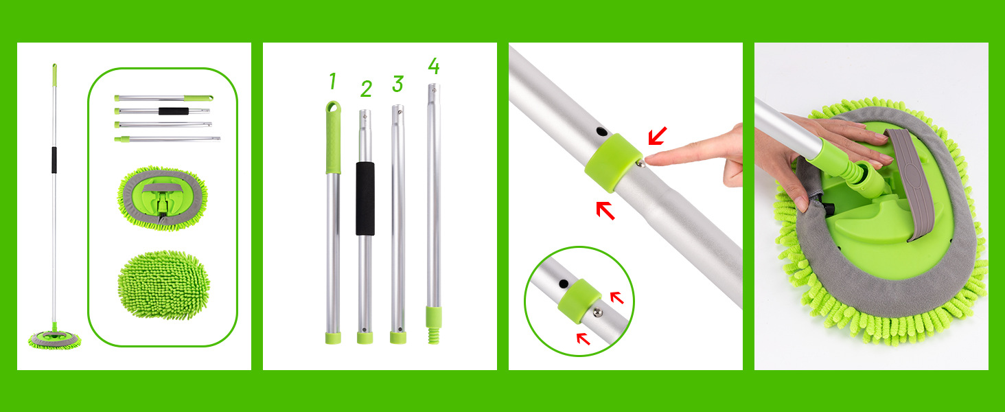 자동차 세차 브러시 62inch 세차 걸레 여분의 긴 자동차 청소 걸레 셔닐 4 섹션 분해 걸레
