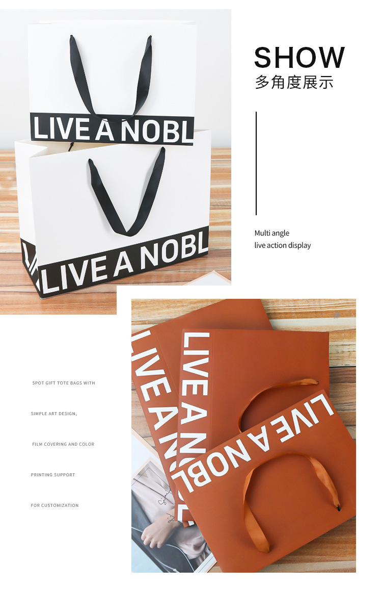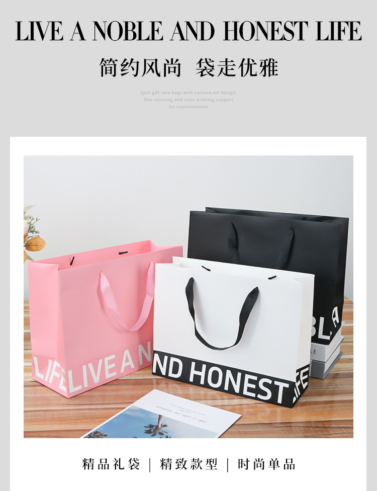재고 하이 엔드 선물 가방 두꺼운 필름 화이트 골판지 가방 의류 매장 가방 쇼핑 토트 백 맞춤형 인쇄 로고스토어 가기