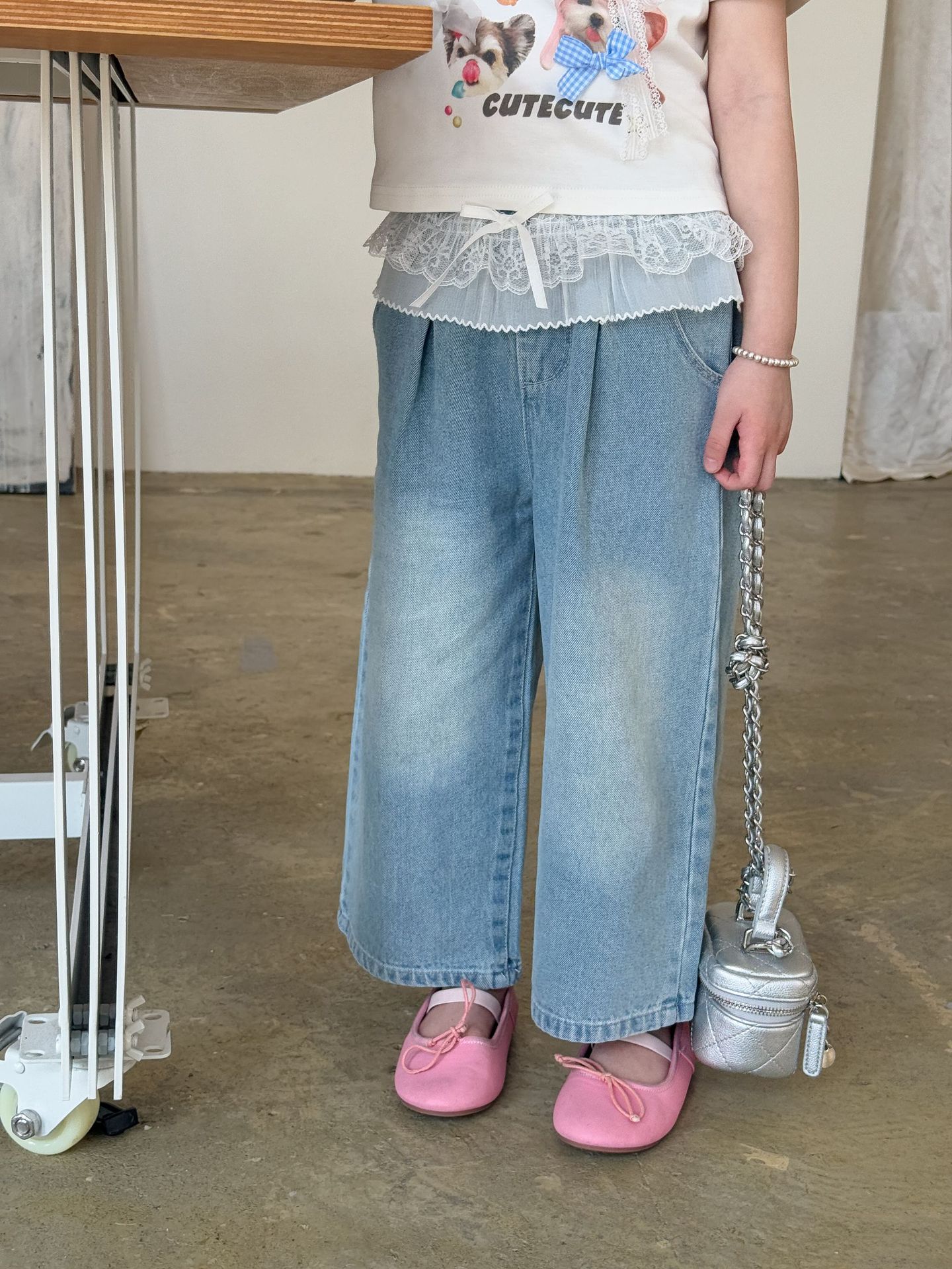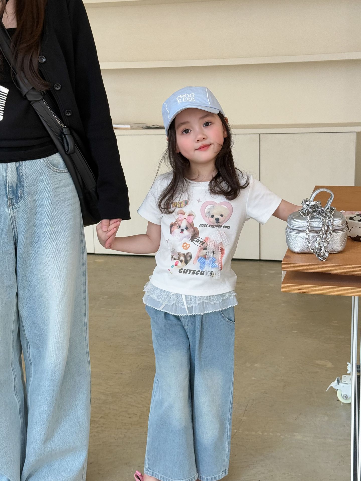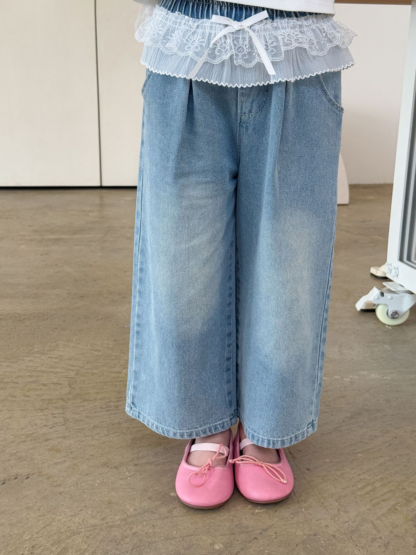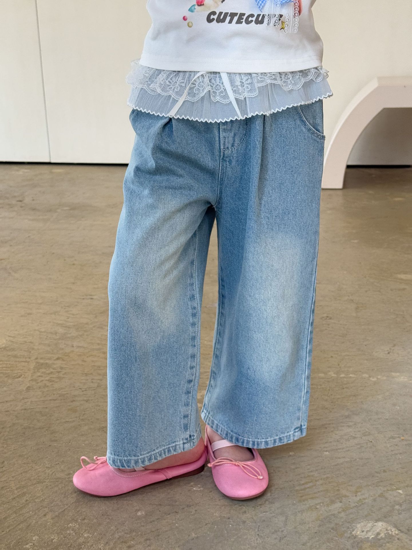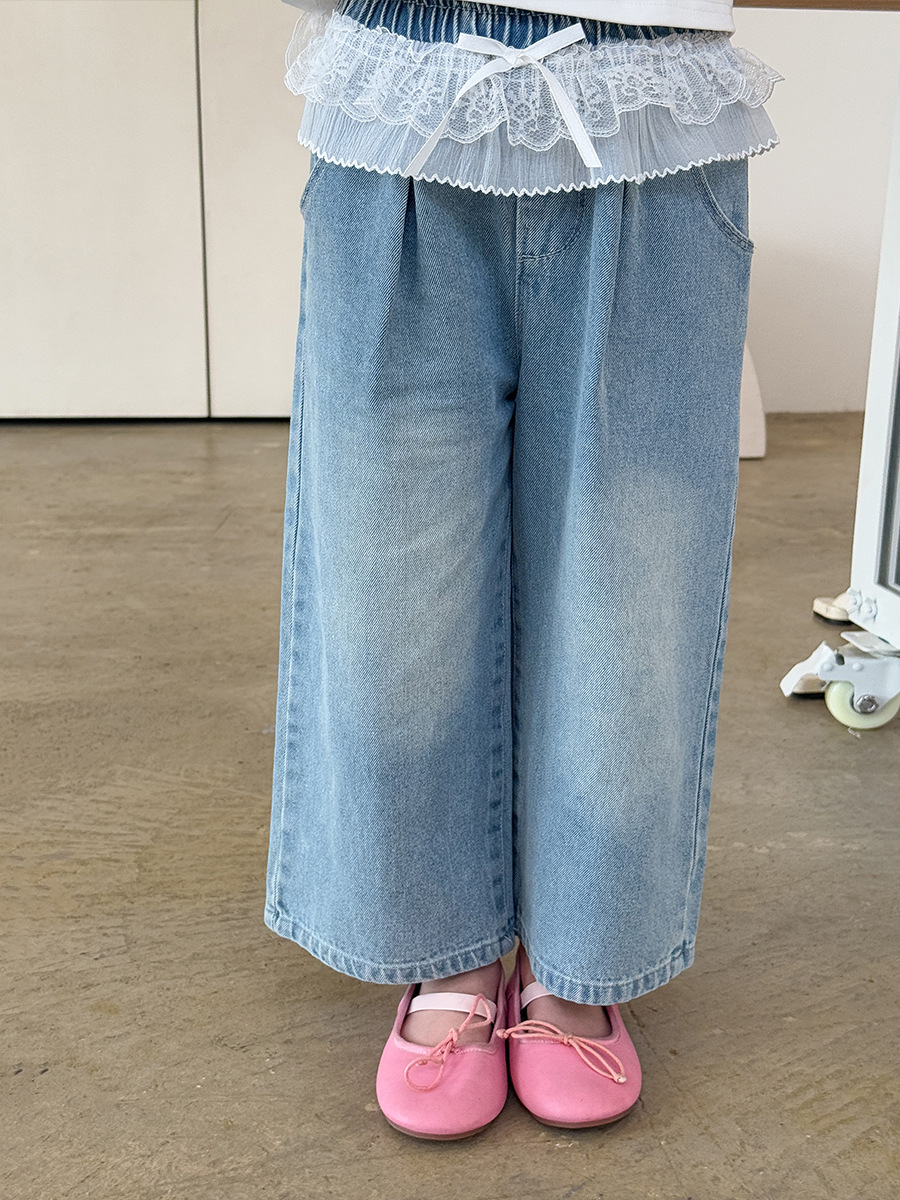 Weimu 아동복 여아 청바지 2025 봄 신작 아동 한국 스타일 레이스 바지 아기 아동 바지