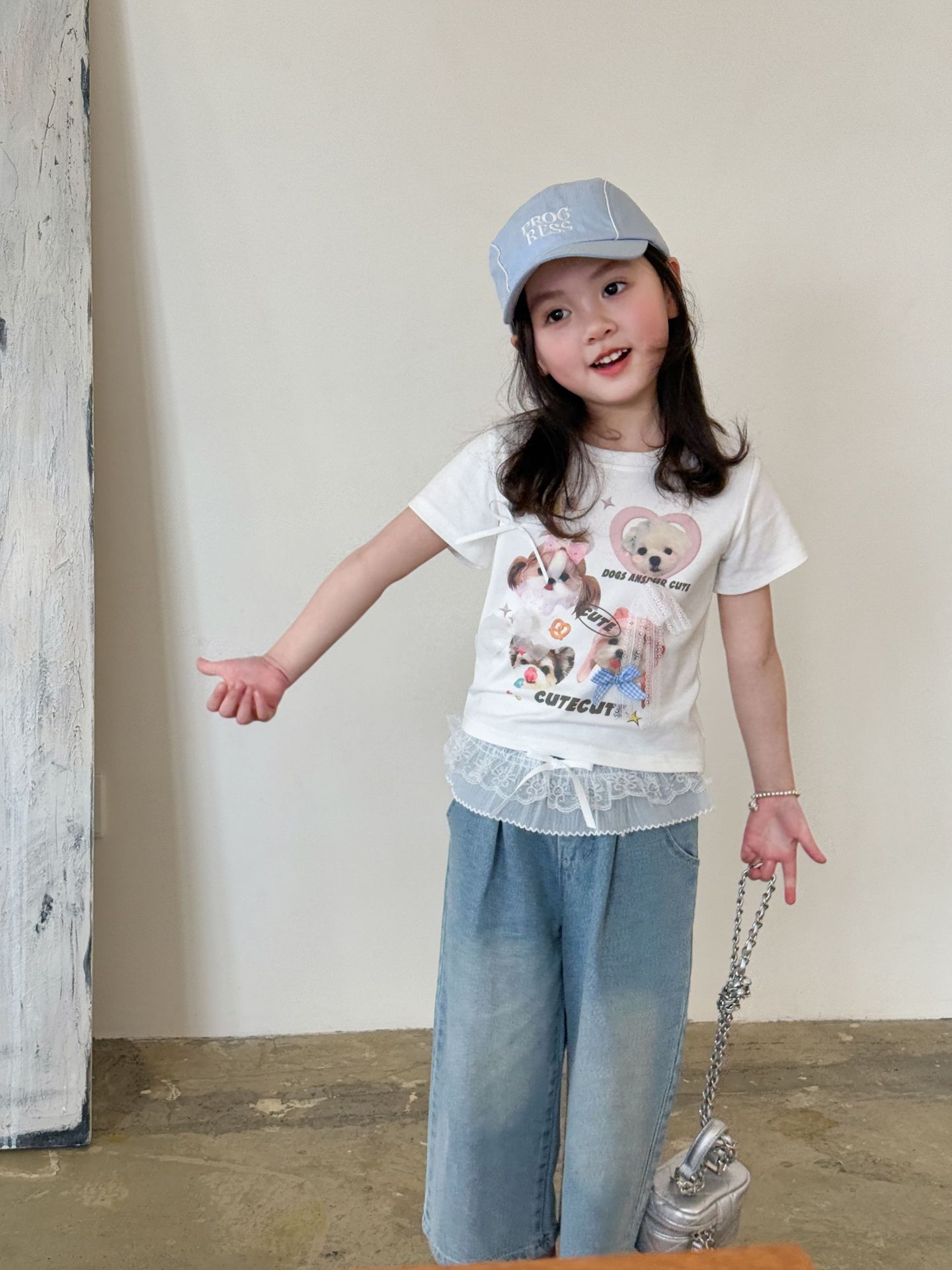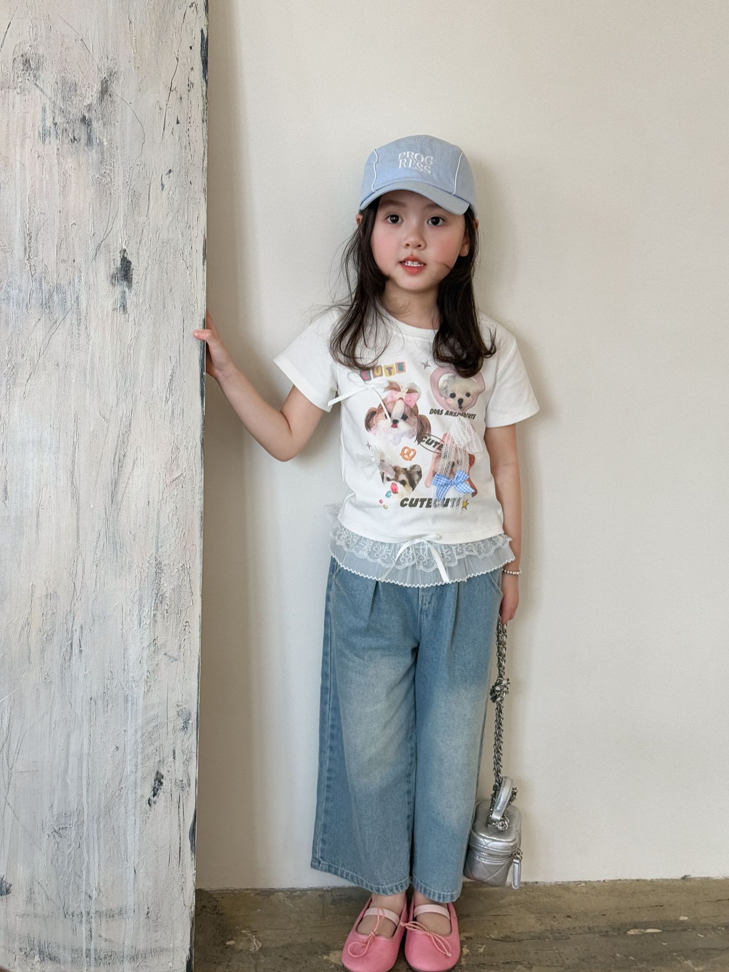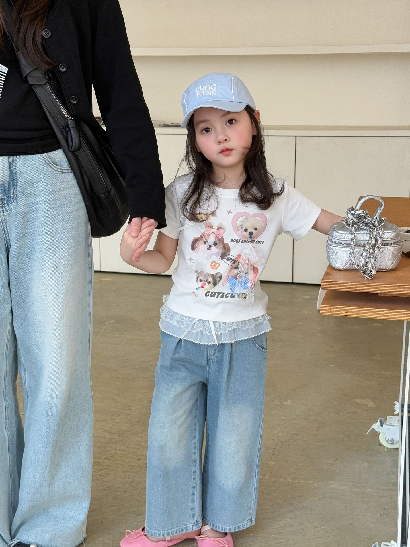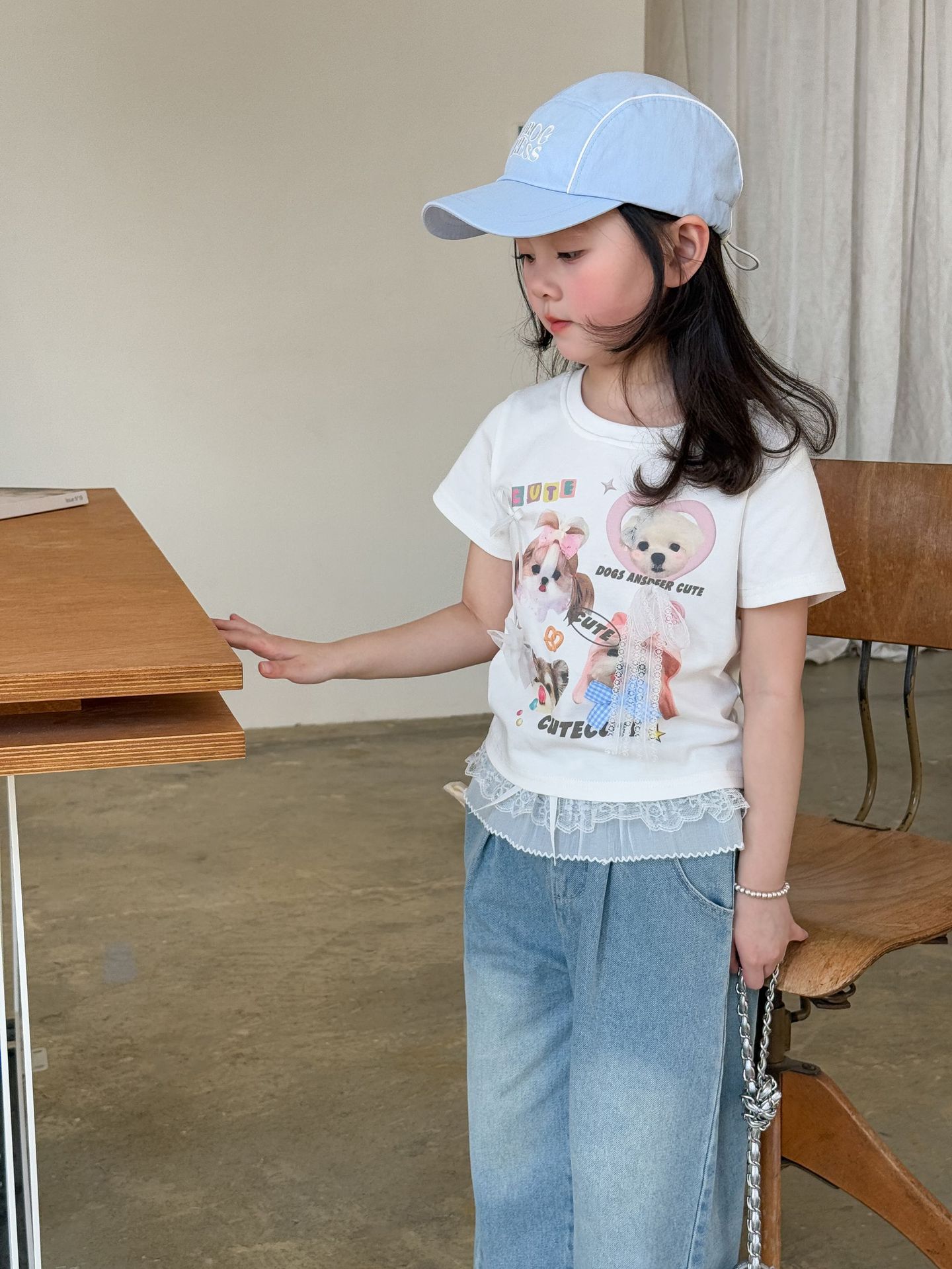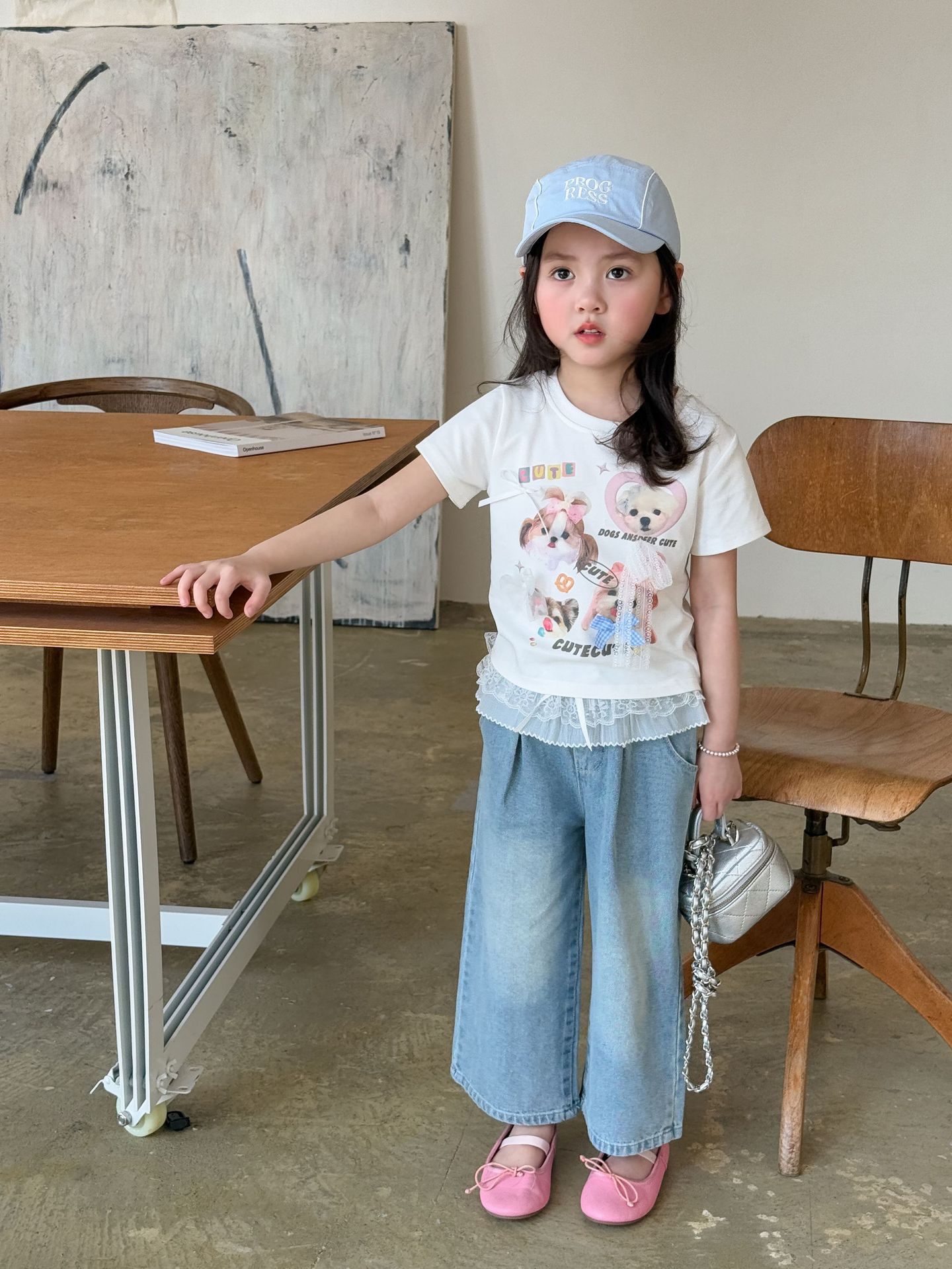 Weimu 아동복 여아 청바지 2025 봄 신작 아동 한국 스타일 레이스 바지 아기 아동 바지