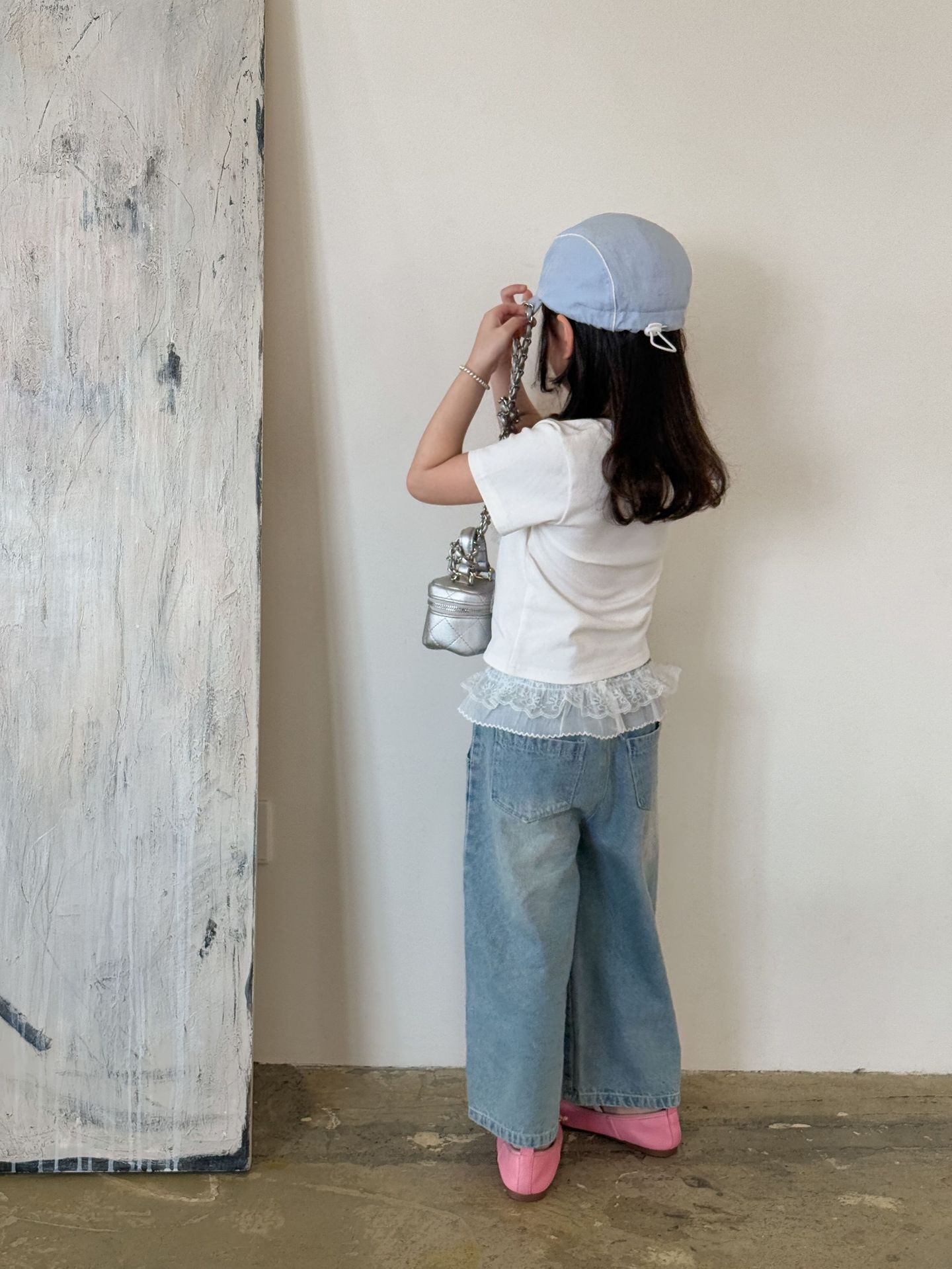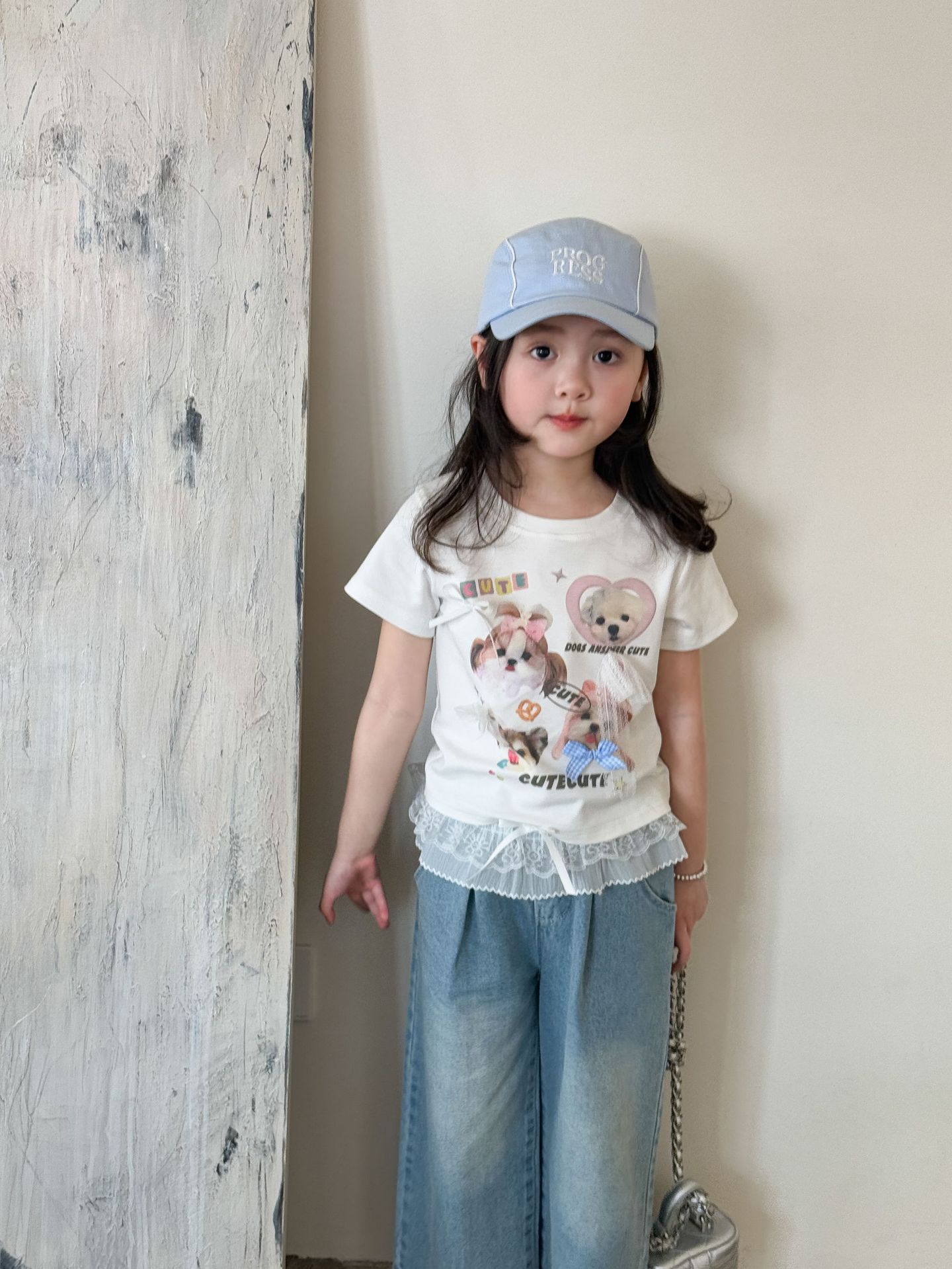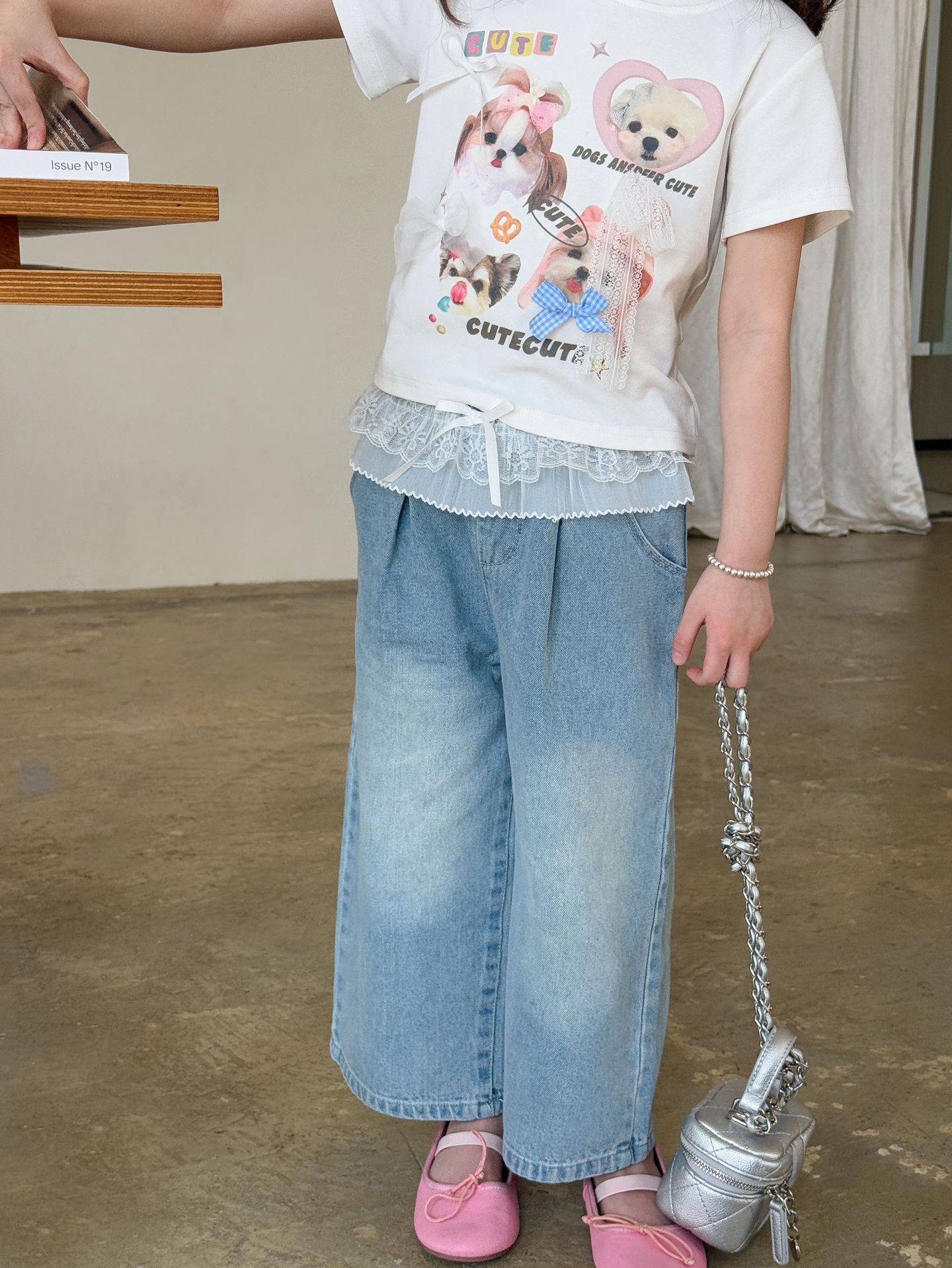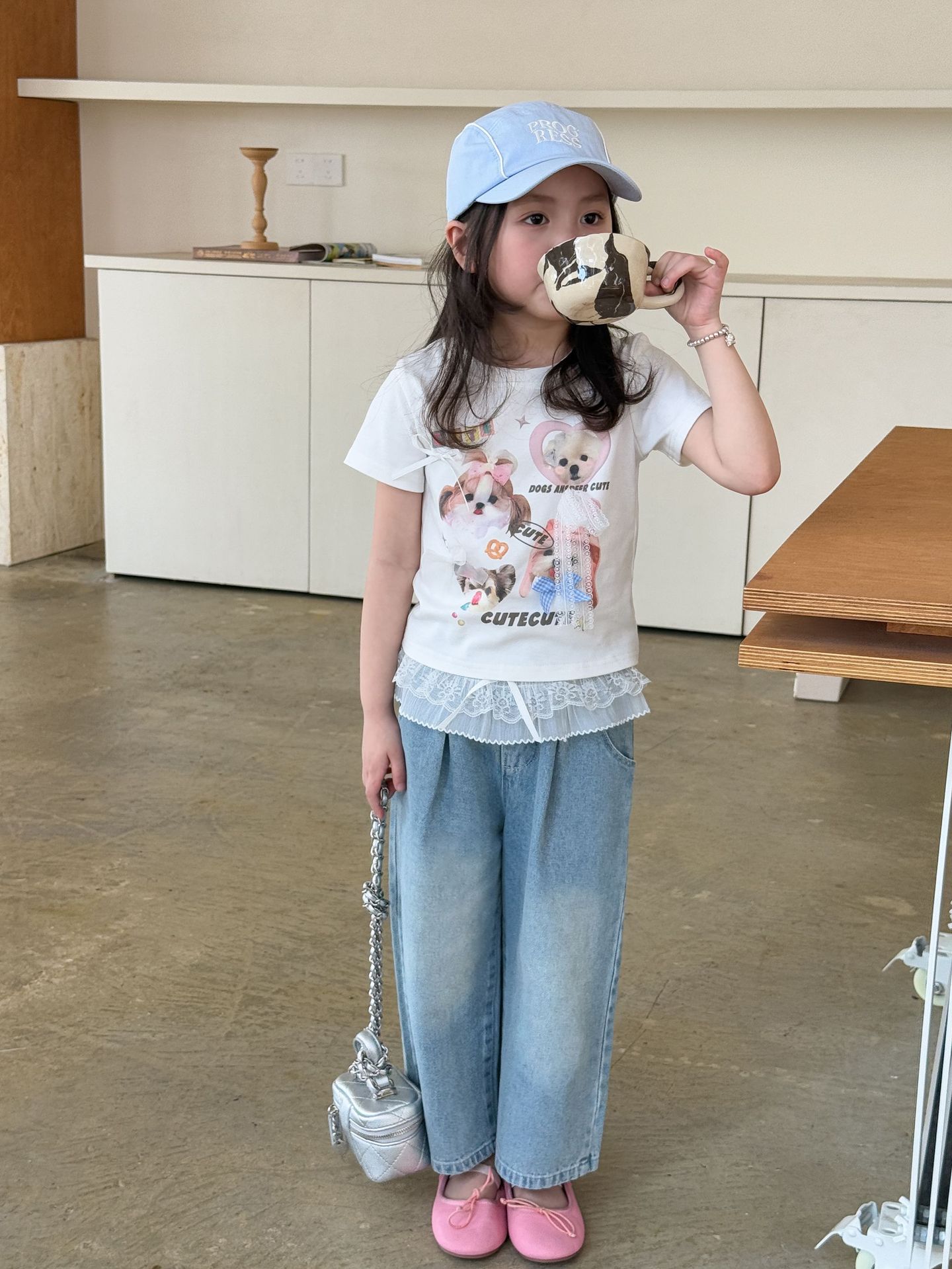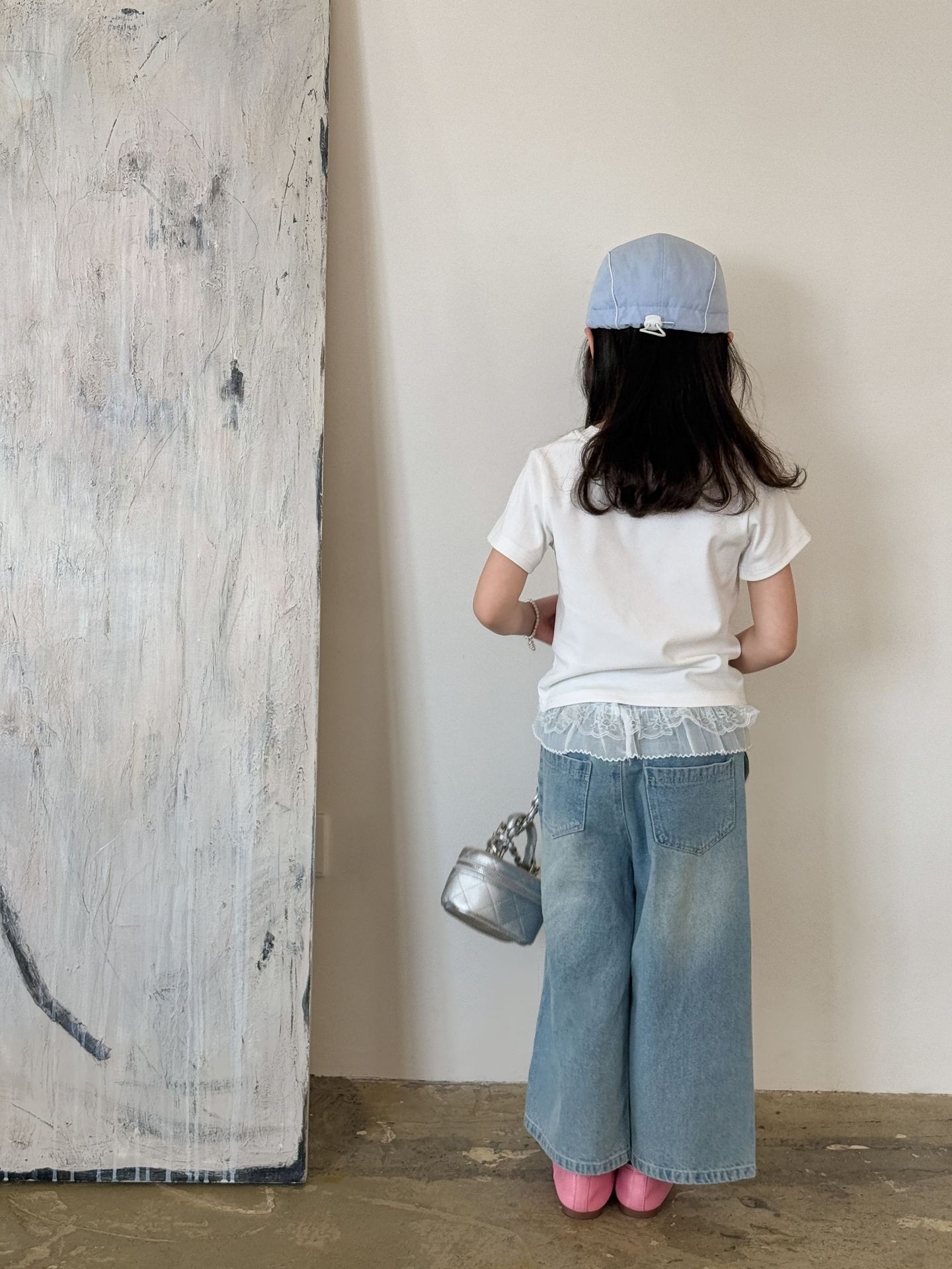 Weimu 아동복 여아 청바지 2025 봄 신작 아동 한국 스타일 레이스 바지 아기 아동 바지