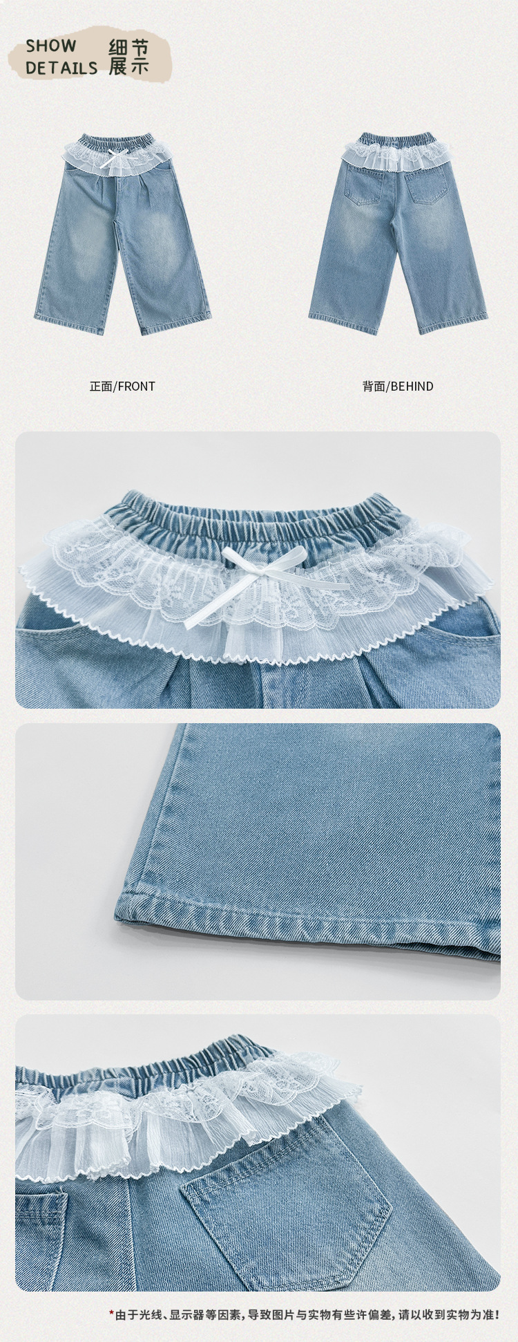 Weimu 아동복 여아 청바지 2025 봄 신작 아동 한국 스타일 레이스 바지 아기 아동 바지스토어 가기
