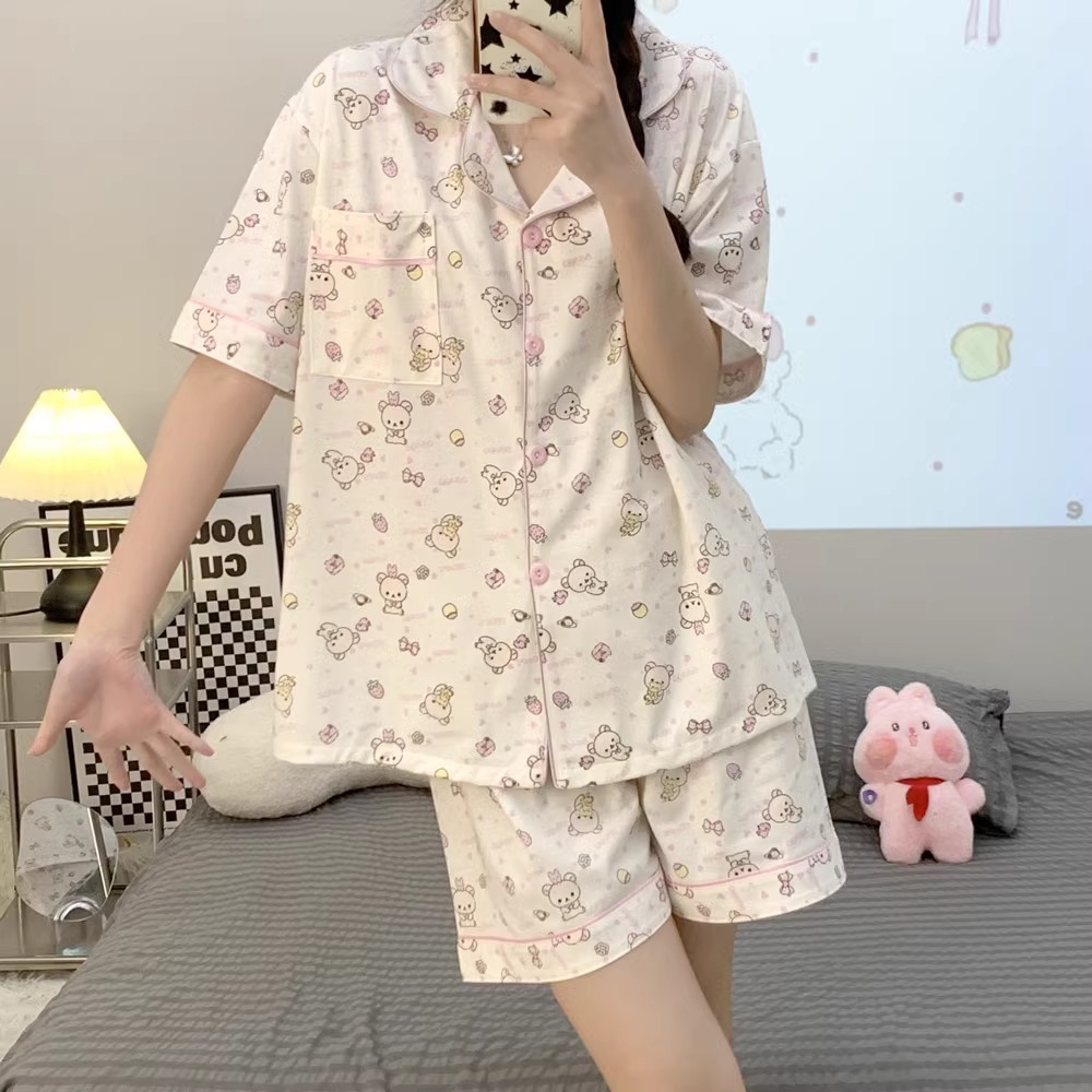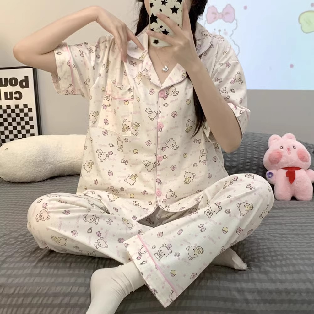 일본 만화 리락쿠마 2025 여성을위한 새로운 잠옷 여름 순수 코튼 반팔 대형 여름 귀여운 가정 의류스토어 가기