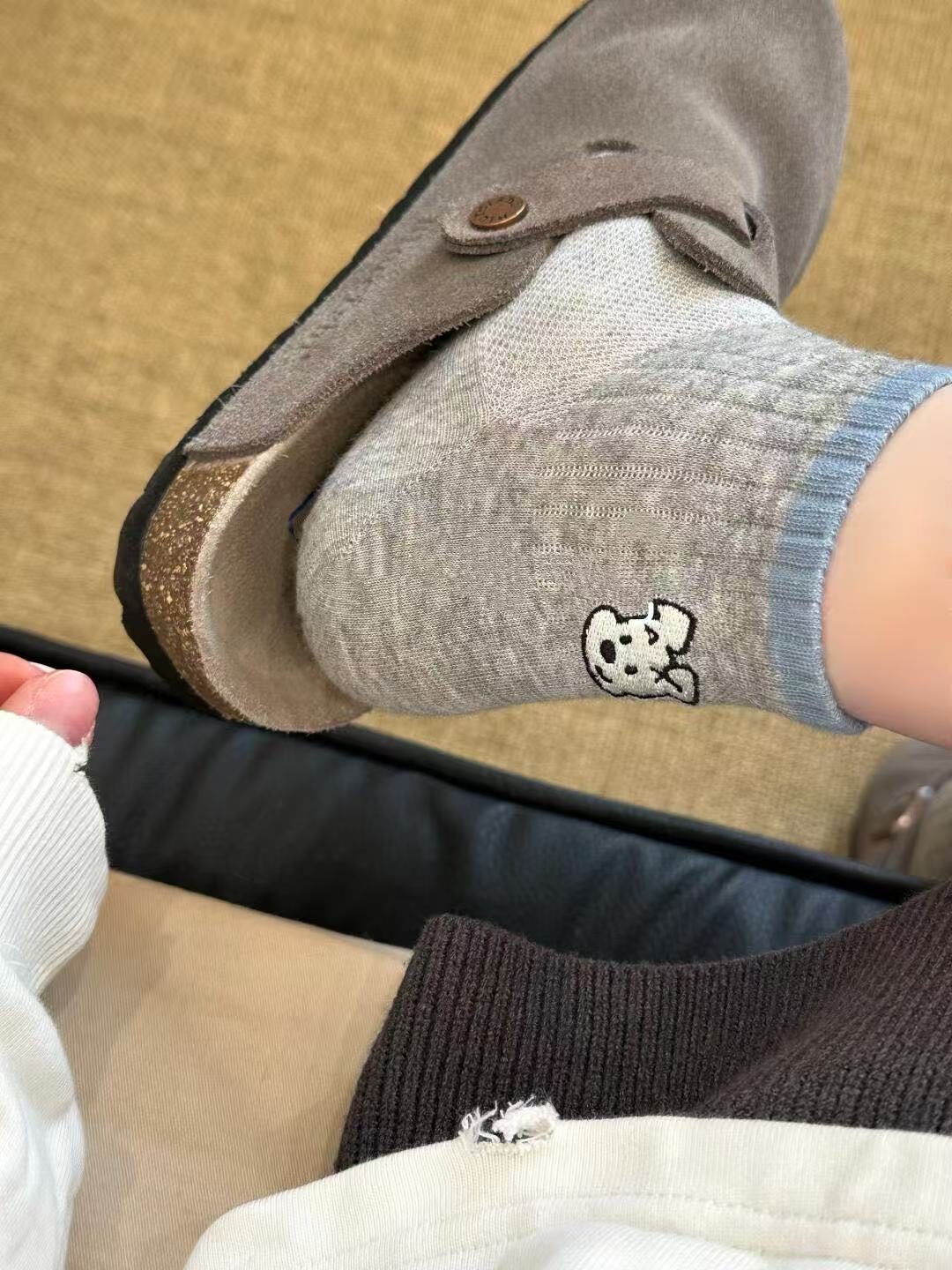 봄과 가을 회색 양말 여성 한국 스타일 Ins 트렌디 AB 비대칭 귀여운 만화 강아지 편지 미디어와 짧은 스타일