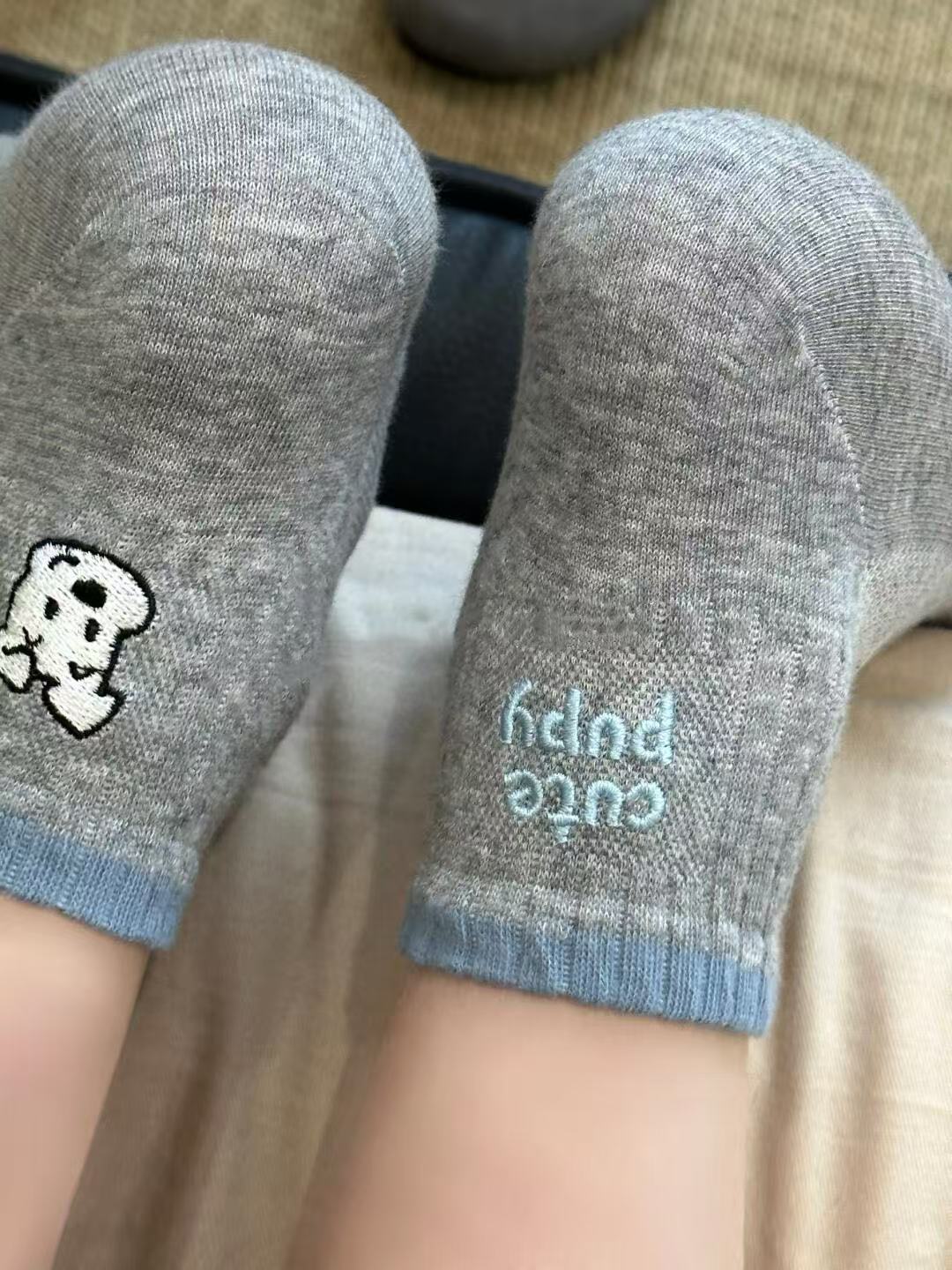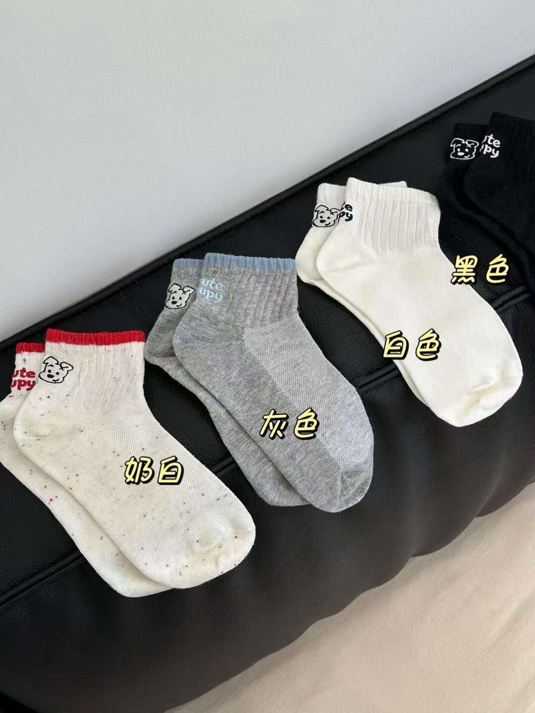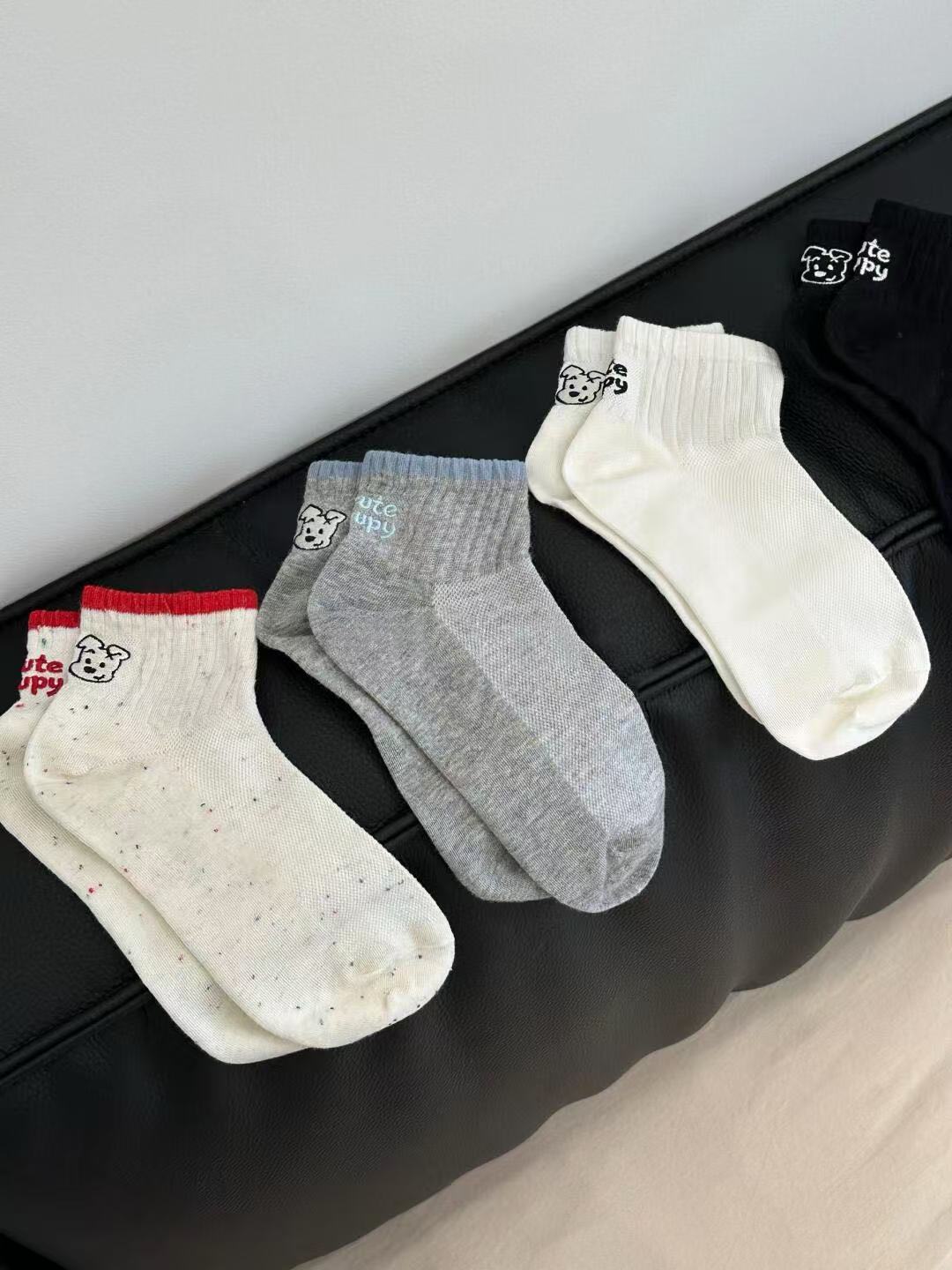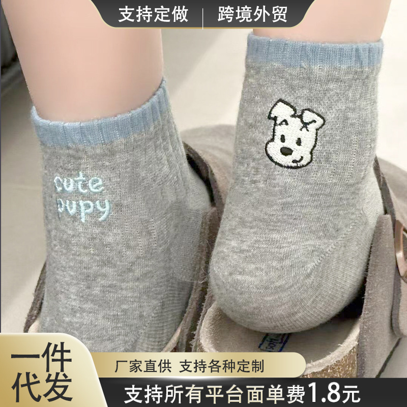봄과 가을 회색 양말 여성 한국 스타일 Ins 트렌디 AB 비대칭 귀여운 만화 강아지 편지 미디어와 짧은 스타일스토어 가기