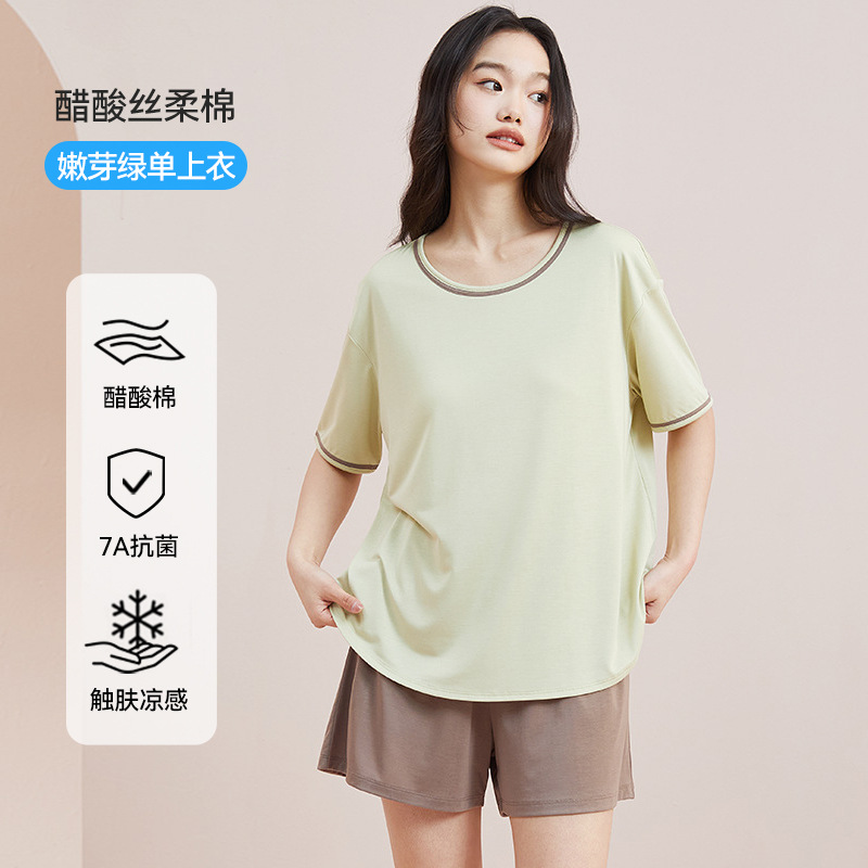 [맞춤형] 가슴 패드 여성용 여름 얇은 플러스 사이즈 둥근 목 반팔 반바지 느슨한 홈 옷스토어 가기