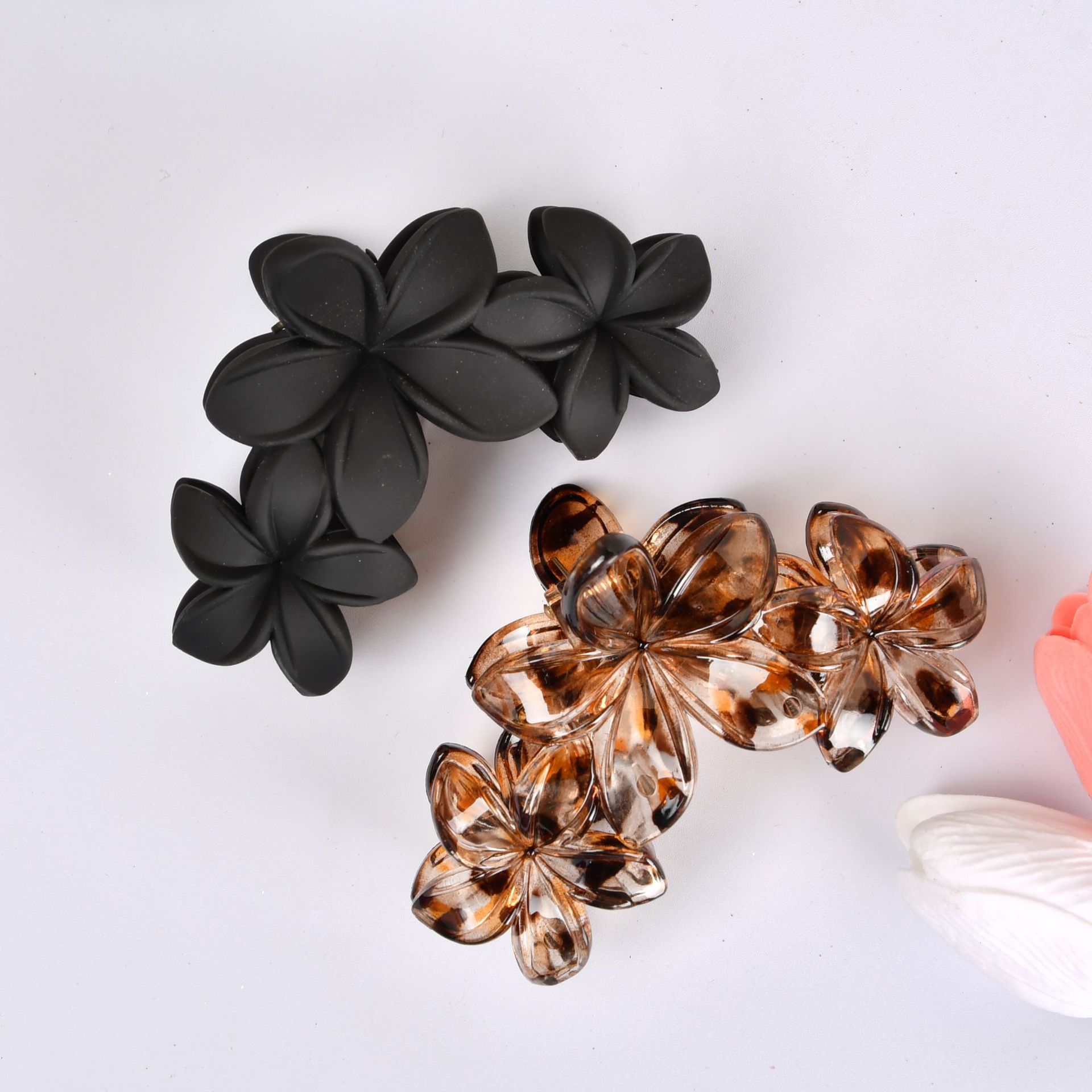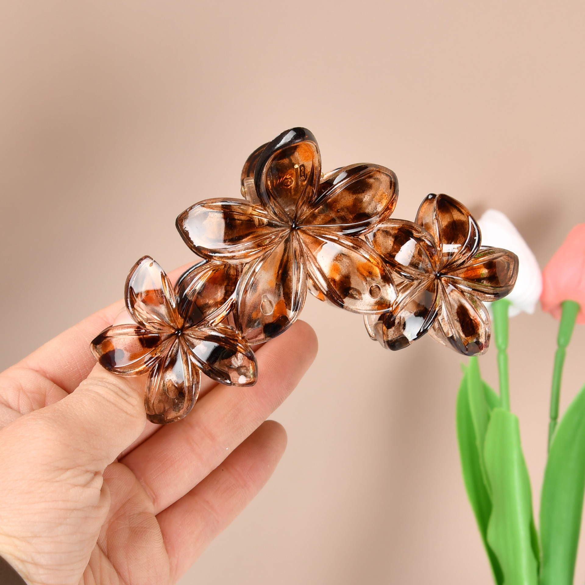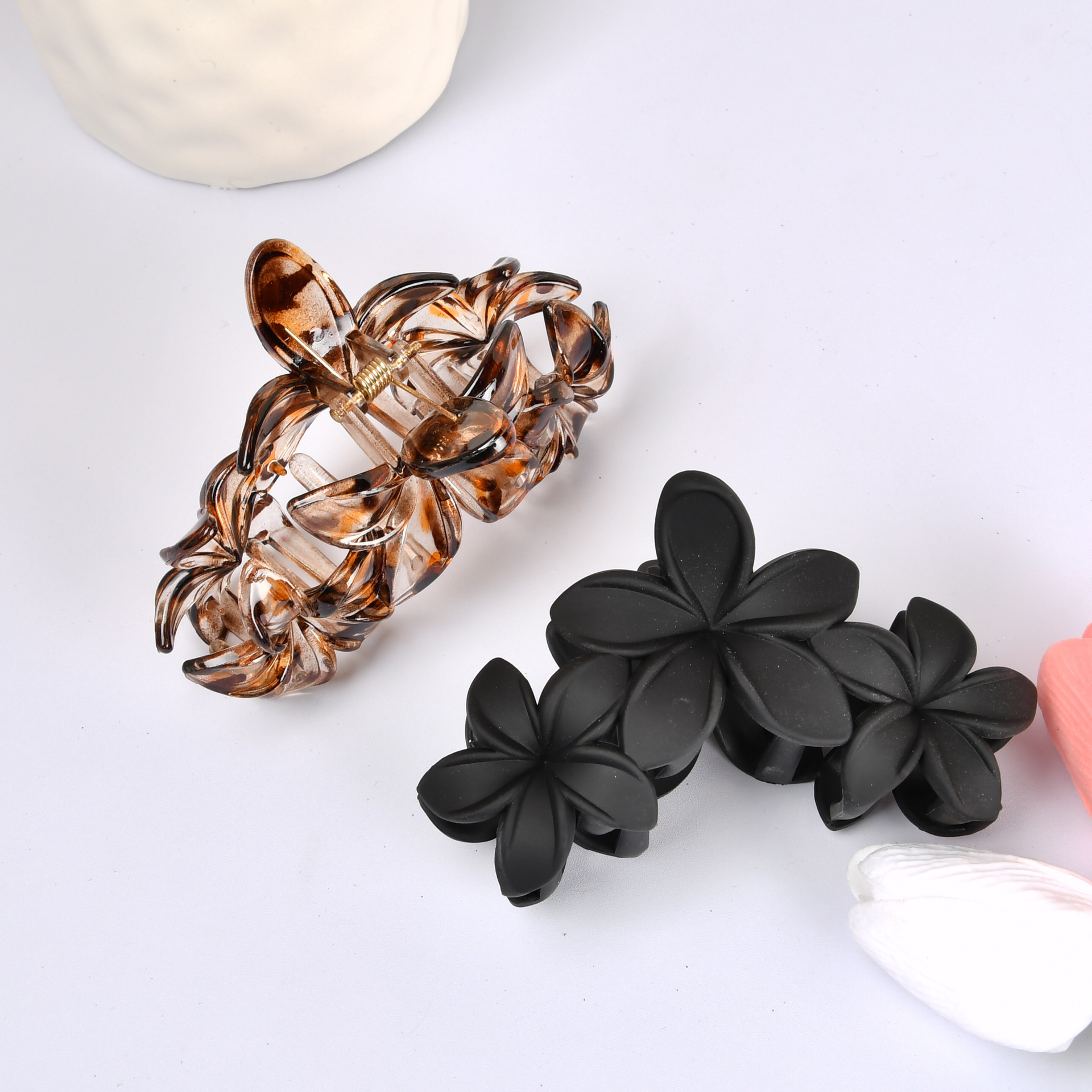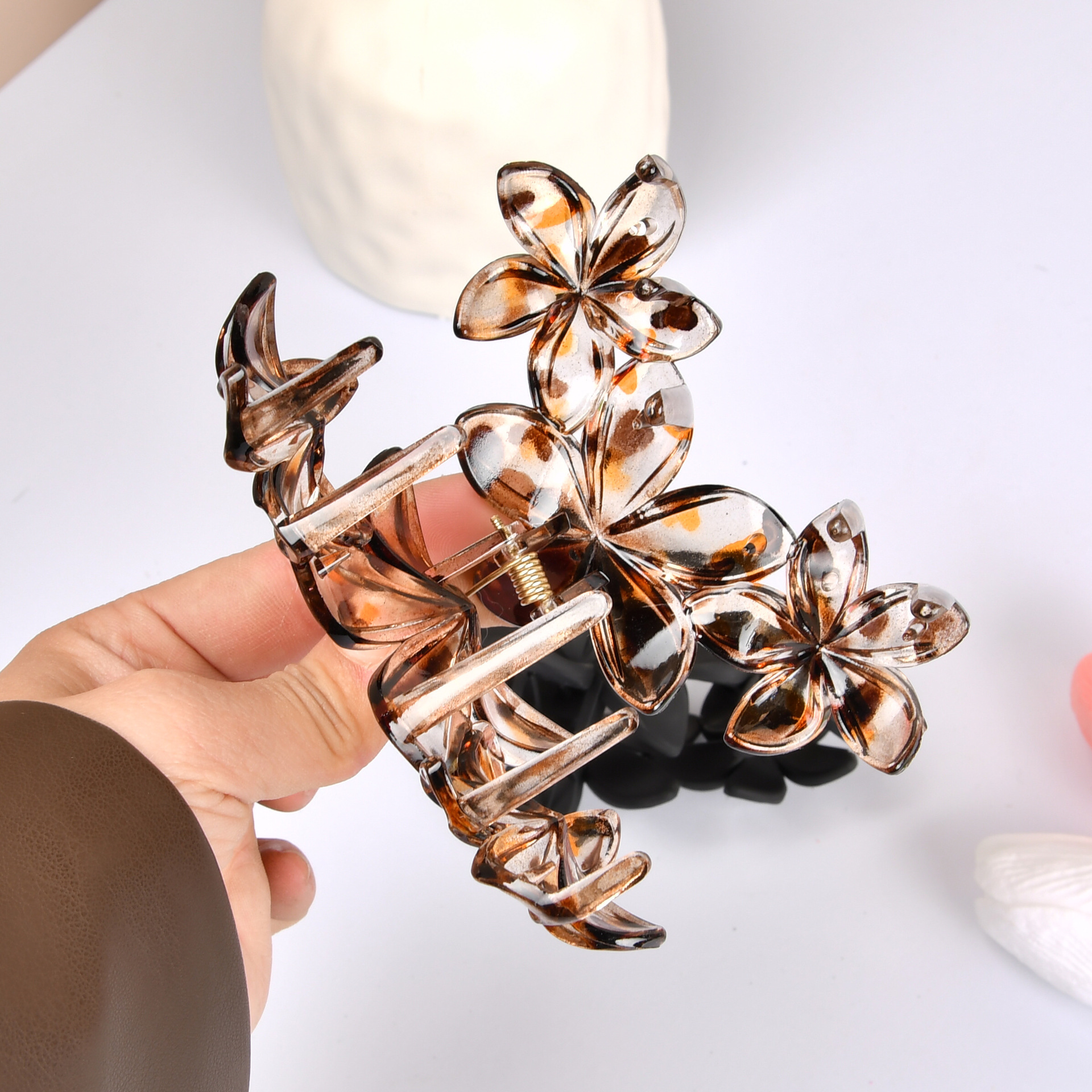 국경 간 유럽과 미국의 하이 엔드 레오파드 무늬 프로스트 에그 플라워 헤어 액세서리 헤드 클립 우아한 패션 상어 클립스토어 가기