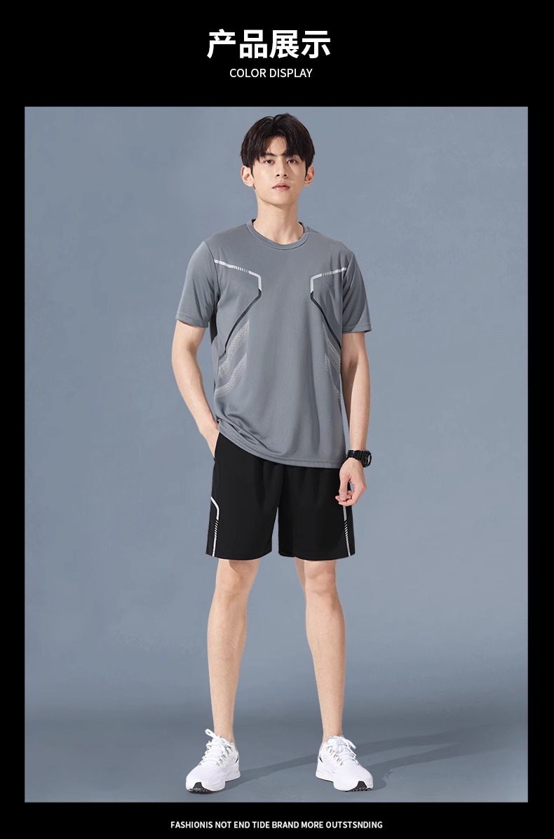 운동복 세트 남자 달리기 반팔 빠른 건조 티셔츠 농구 의류 깃털 피트니스 옷 훈련 반바지 여름스토어 가기