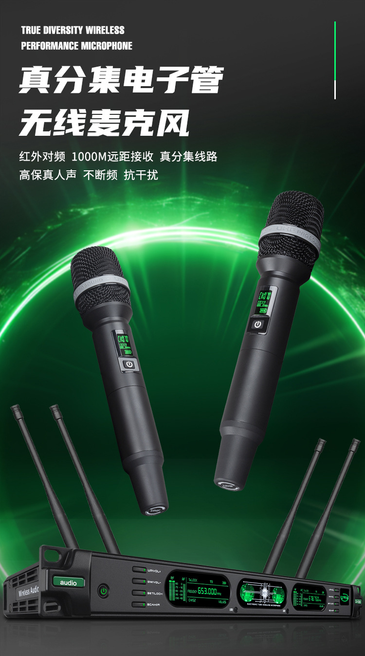 새로운 국경 전자 튜브 진정한 다양성 일대일 무선 마이크 U-세그먼트 휴대용 성능 KTV 진정한 다양성 야외