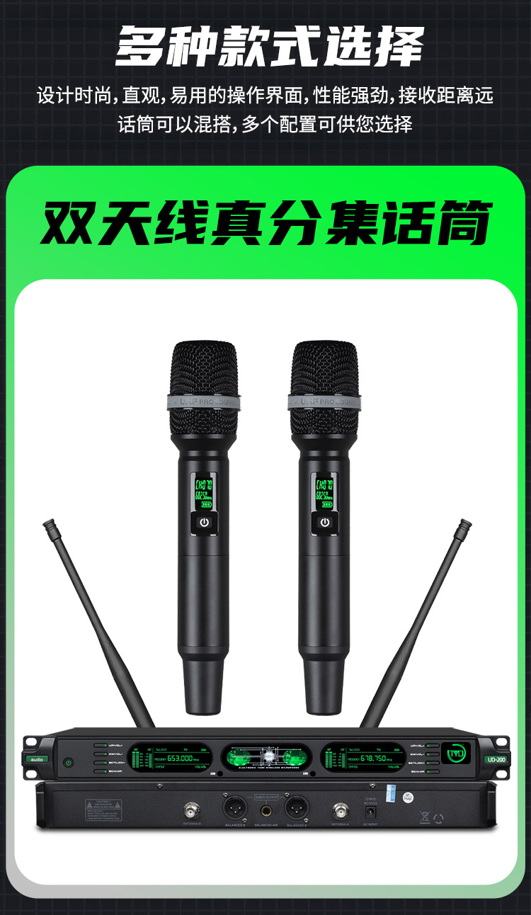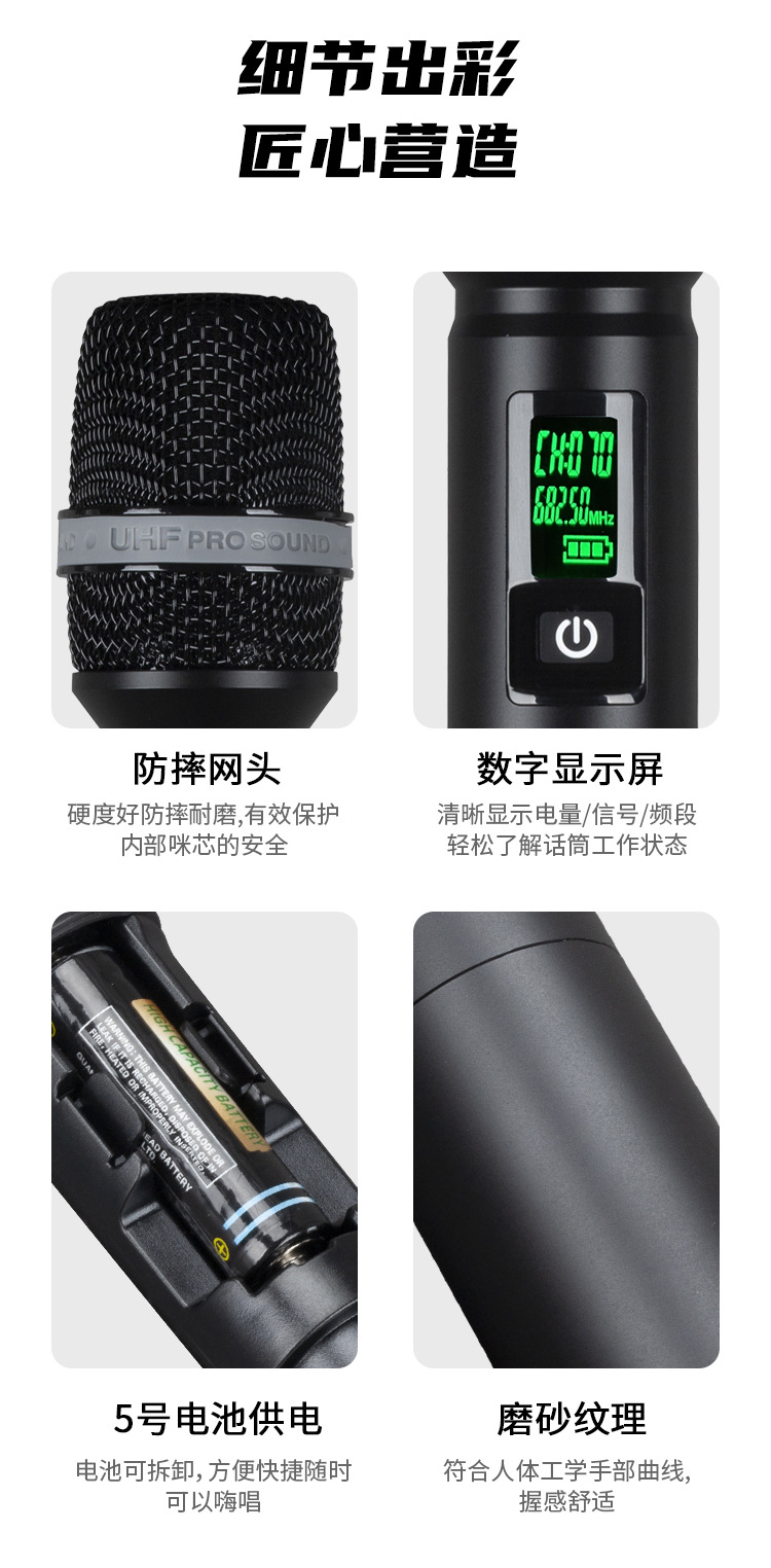 새로운 국경 전자 튜브 진정한 다양성 일대일 무선 마이크 U-세그먼트 휴대용 성능 KTV 진정한 다양성 야외스토어 가기