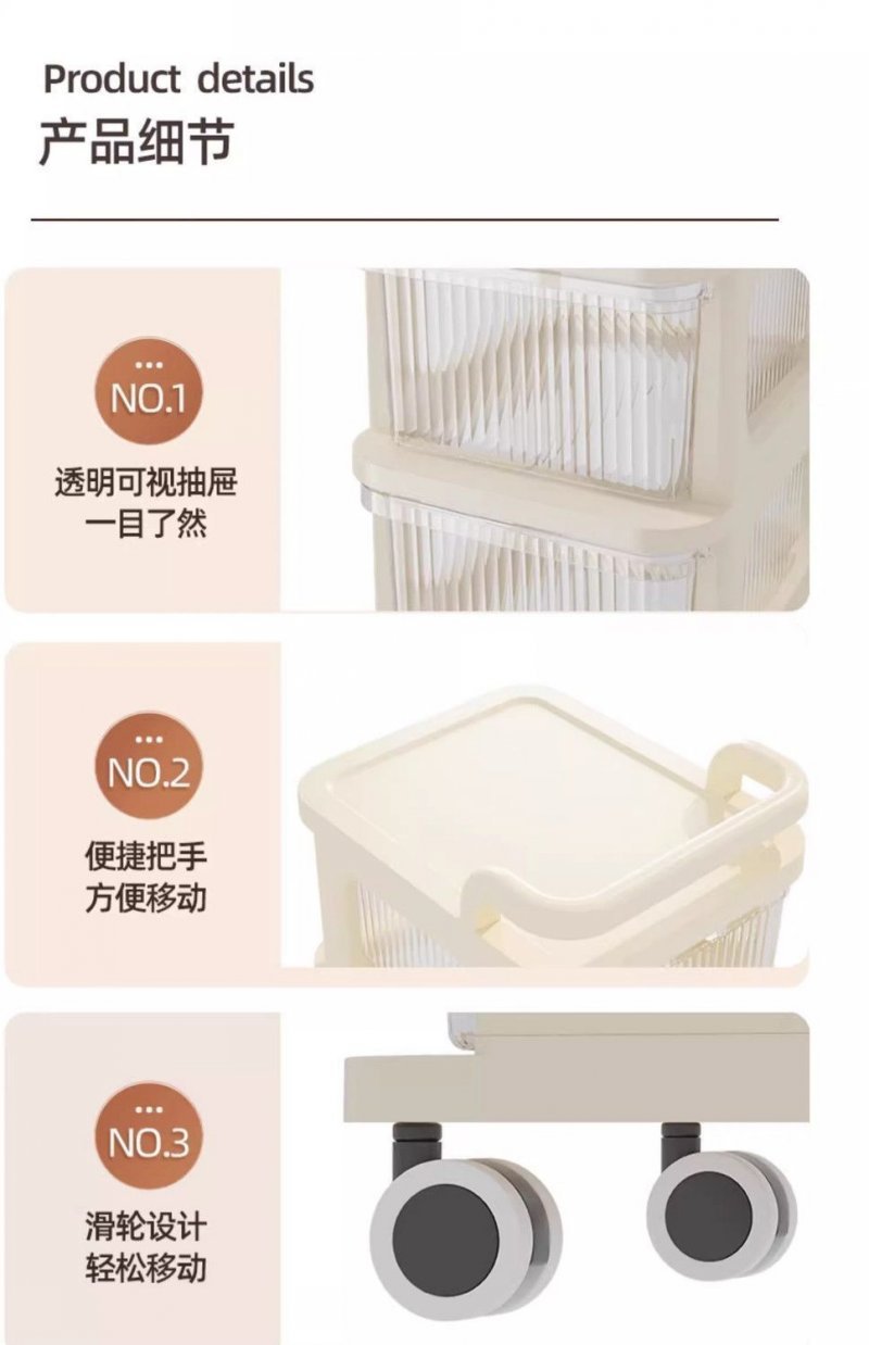 작은 카트 스낵 크림 스타일 저장 랙 바닥-서 움직일 수있는 아기 장난감 보관 랙 아기 제품 보관 캐비닛