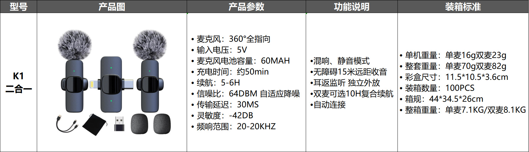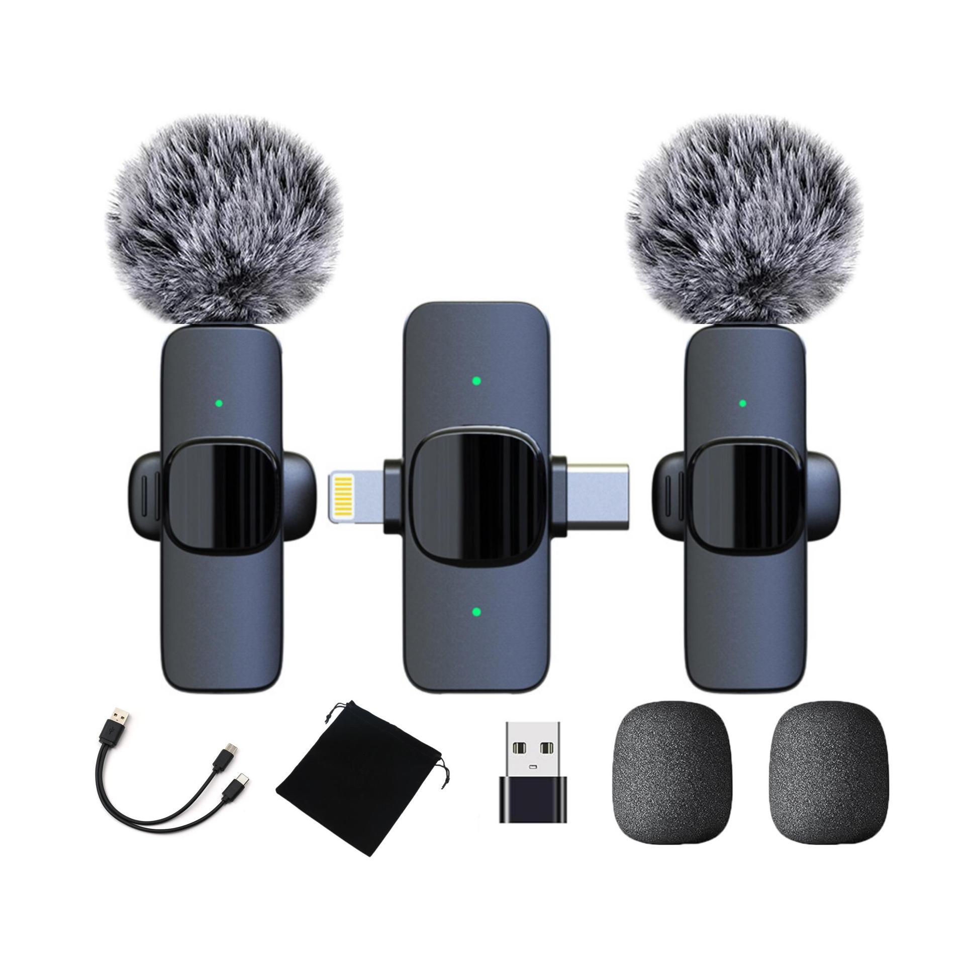 • K1 투인원 듀얼 마이크(전체 버전: USB 어댑터, 보관 가방, 방풍 헤어볼, 업그레이드된 더블 헤드 케이블 포함)