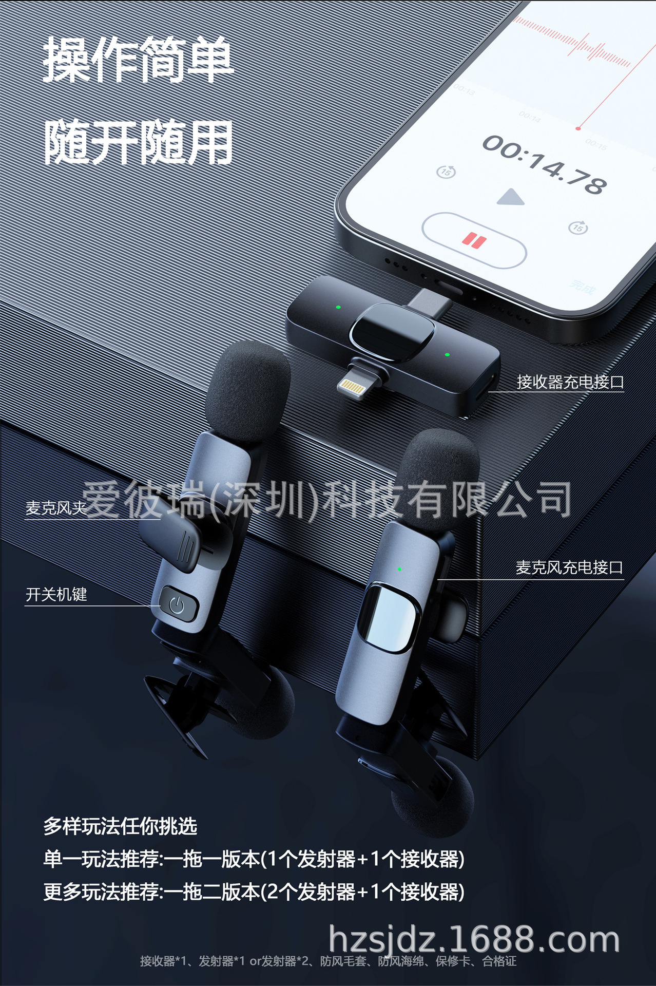 무선 라발리에 마이크 K1 2-in-1 라이브 스트리밍 짧은 비디오 촬영 라디오 소음 감소 녹음 무선 미니스토어 가기