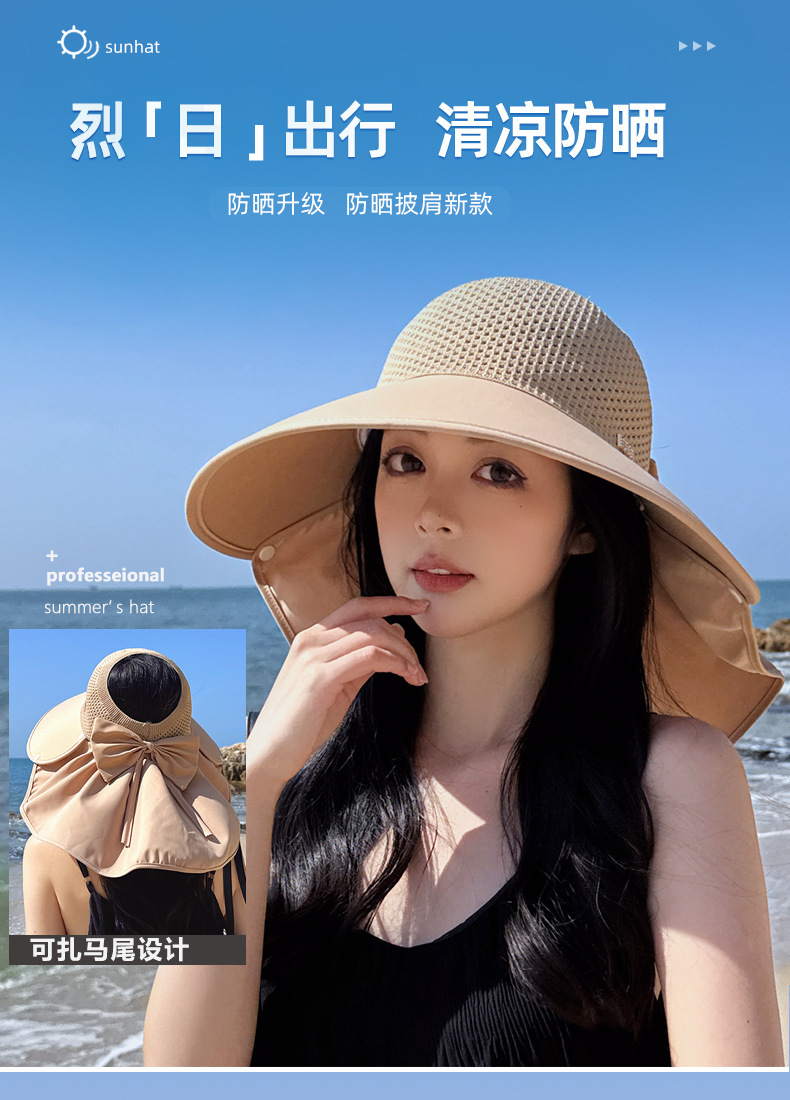 활 자외선 차단제 모자 여성의 여름 빅 브림 사이클링은 모자 여성 태양 모자 목도리 목 보호 태양 모자를 날릴 수 없습니다스토어 가기