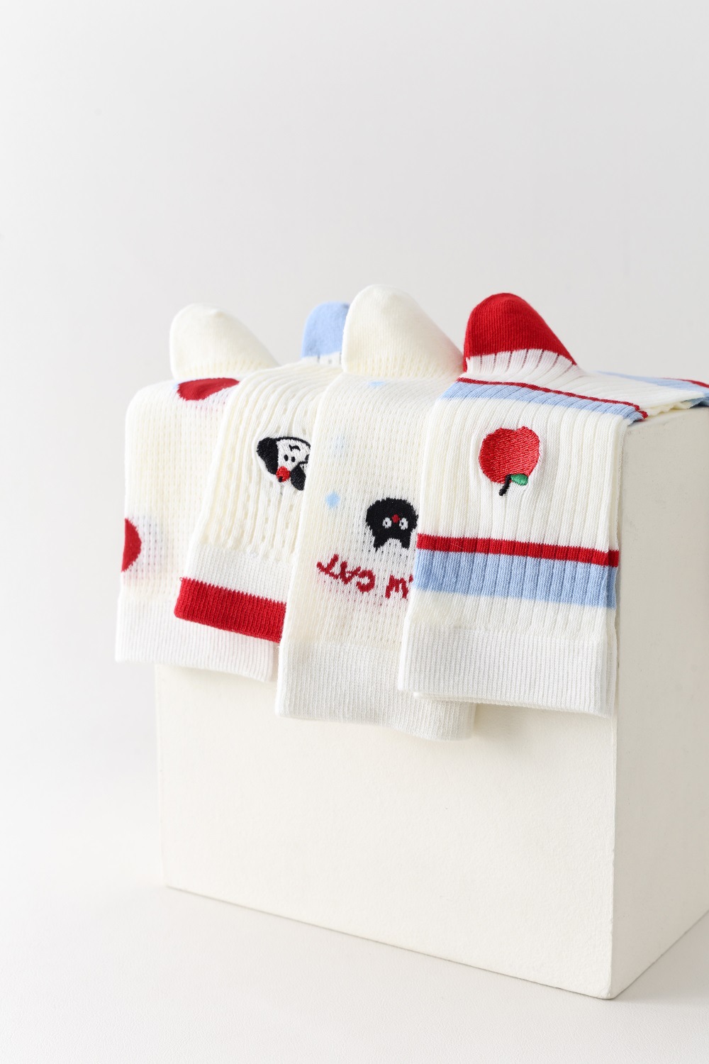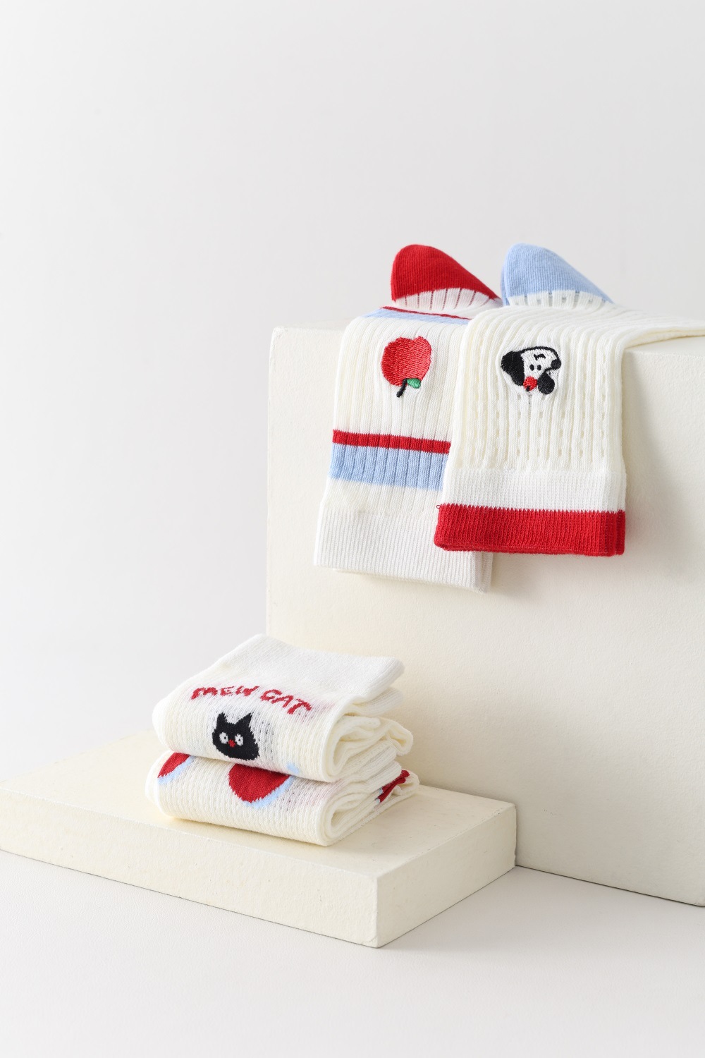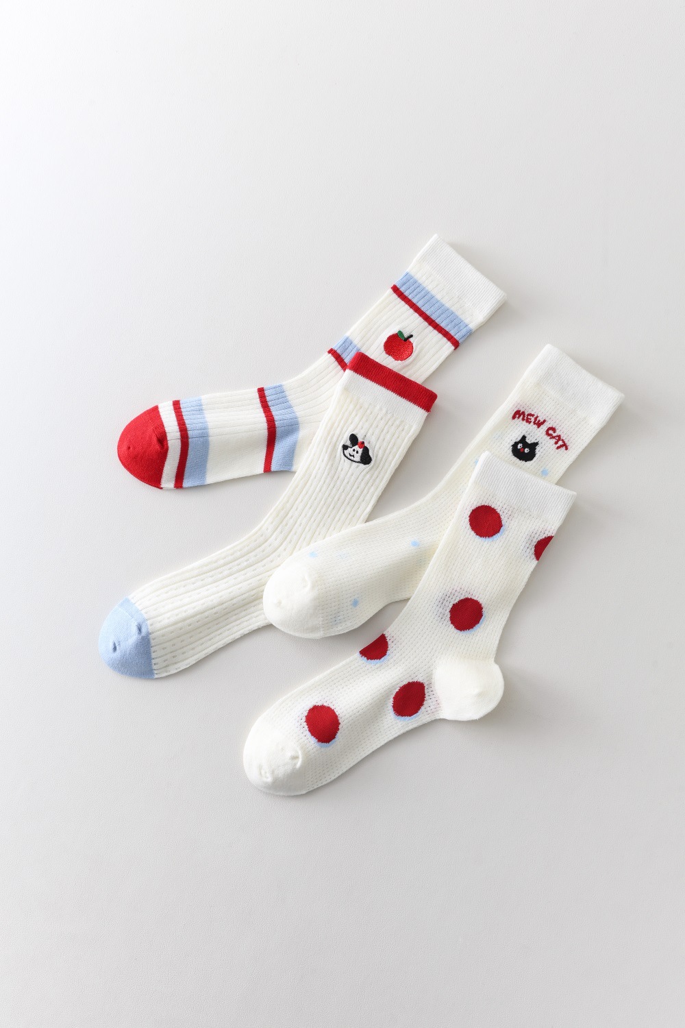 봄과 여름 양말 여성 미드 튜브 스택 양말 Ins 한국 스타일 만화 새끼 고양이 강아지 줄무늬 귀여운 소녀 얇은 면 양말스토어 가기