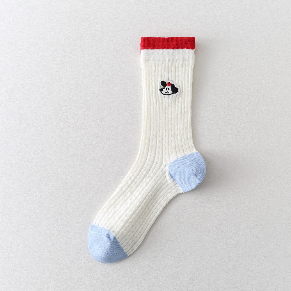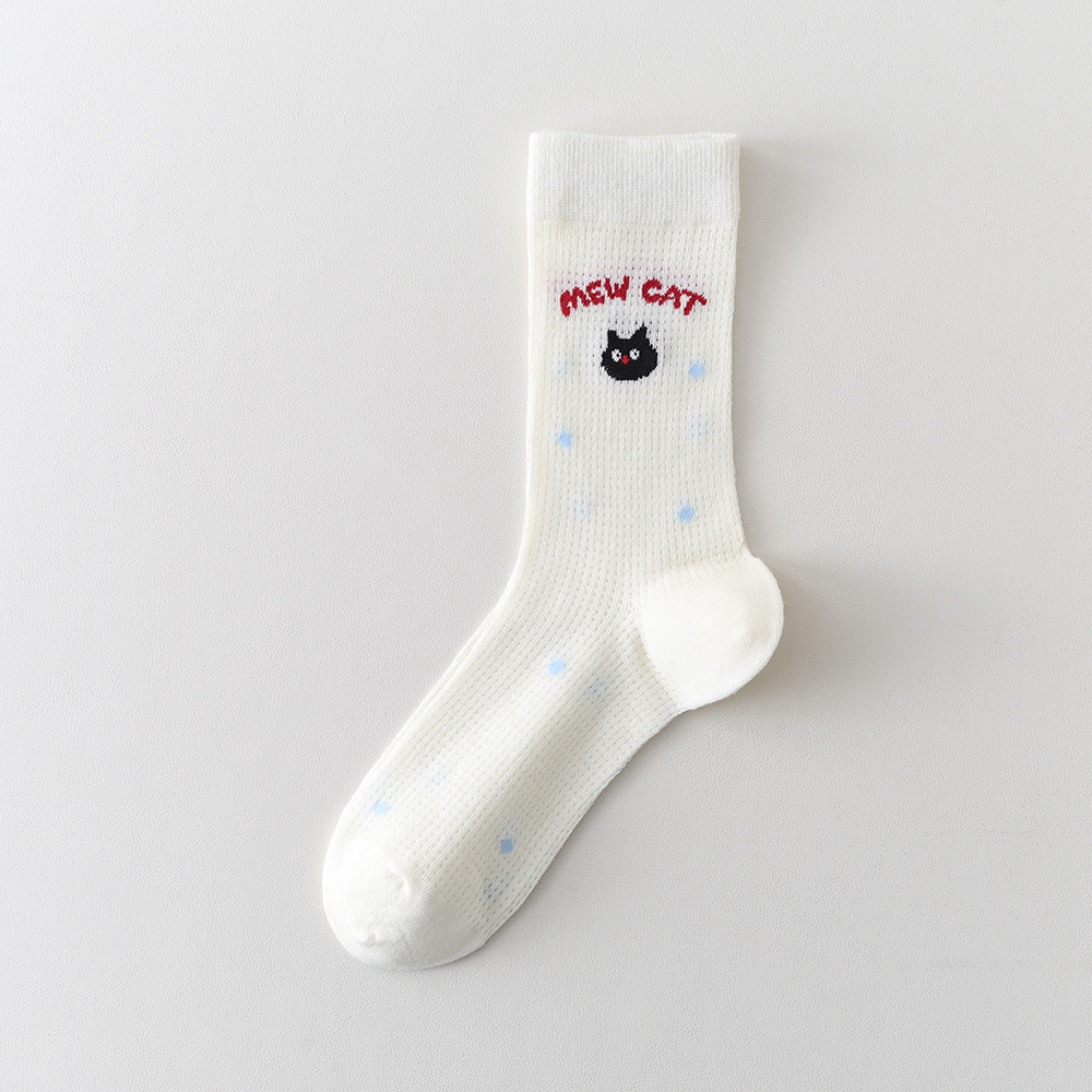 봄과 여름 양말 여성 미드 튜브 스택 양말 Ins 한국 스타일 만화 새끼 고양이 강아지 줄무늬 귀여운 소녀 얇은 면 양말