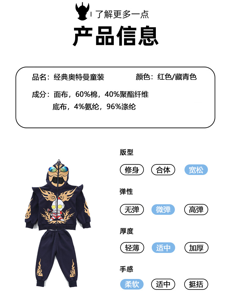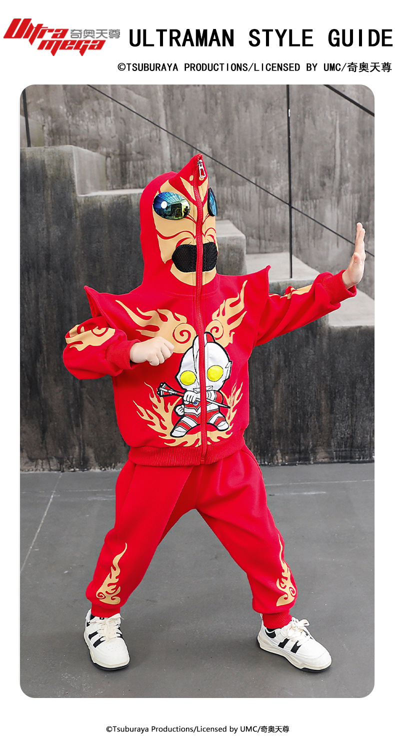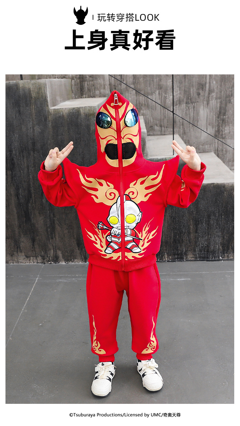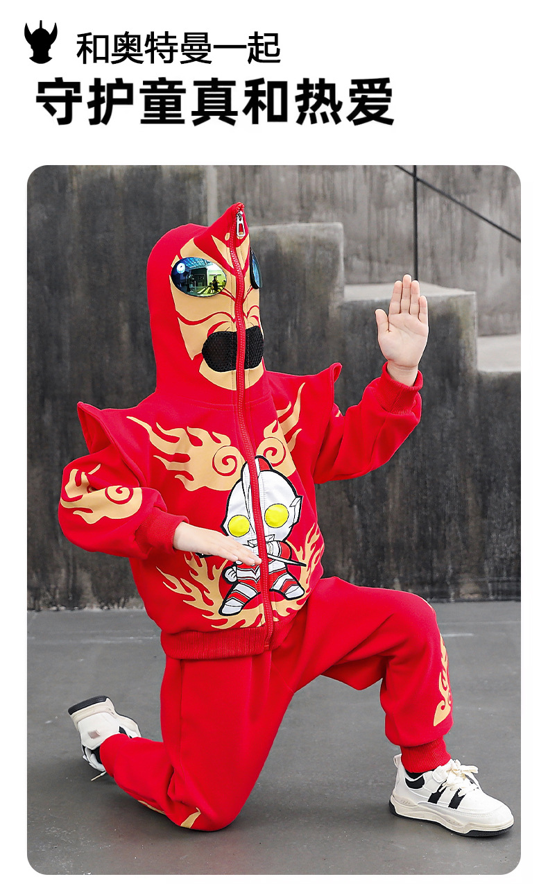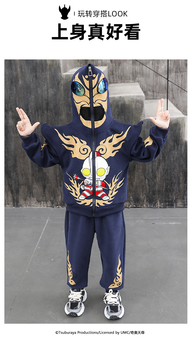 울트라 맨 의류 소년 세트 2025 봄 새로운 어린이 후드 자켓 봄과 가을 스포츠 유행 투피스 세트스토어 가기