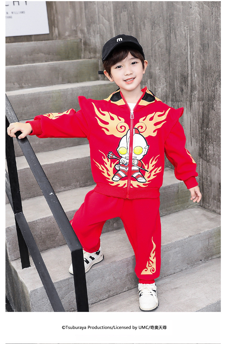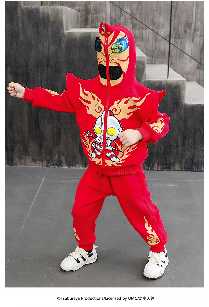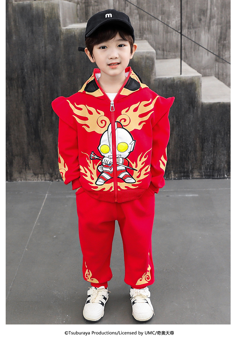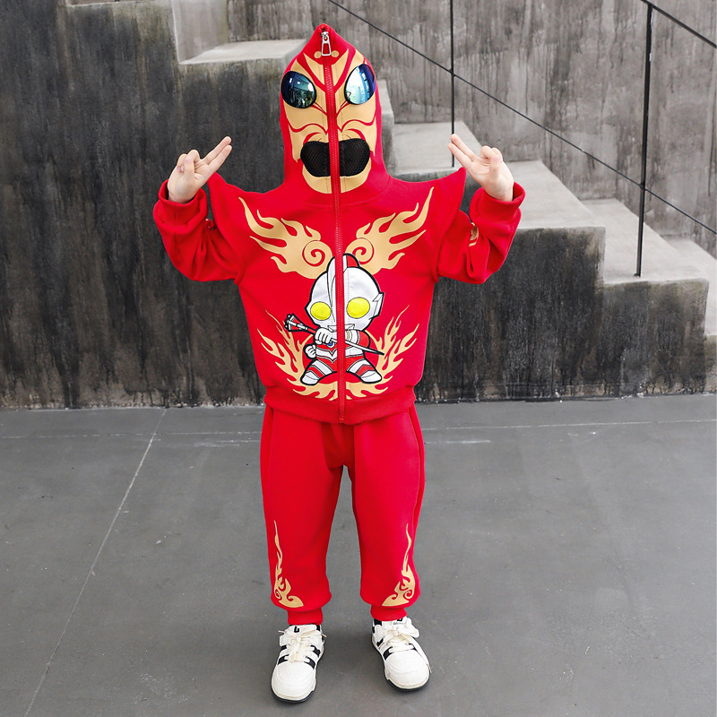울트라 맨 의류 소년 세트 2025 봄 새로운 어린이 후드 자켓 봄과 가을 스포츠 유행 투피스 세트