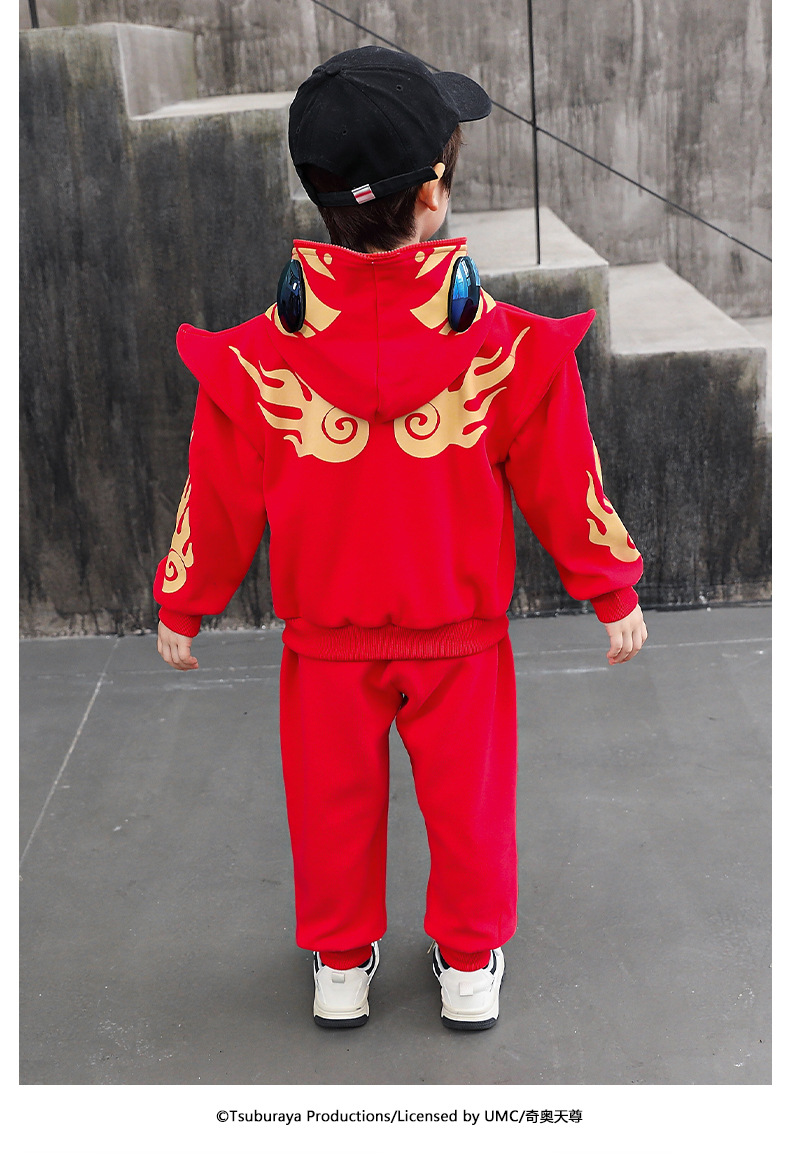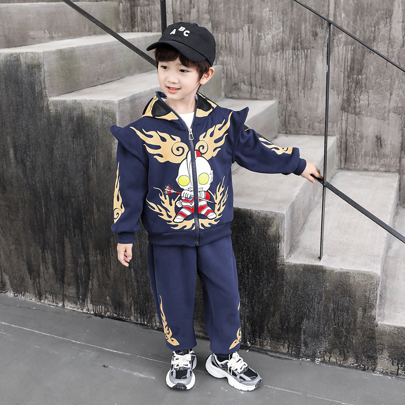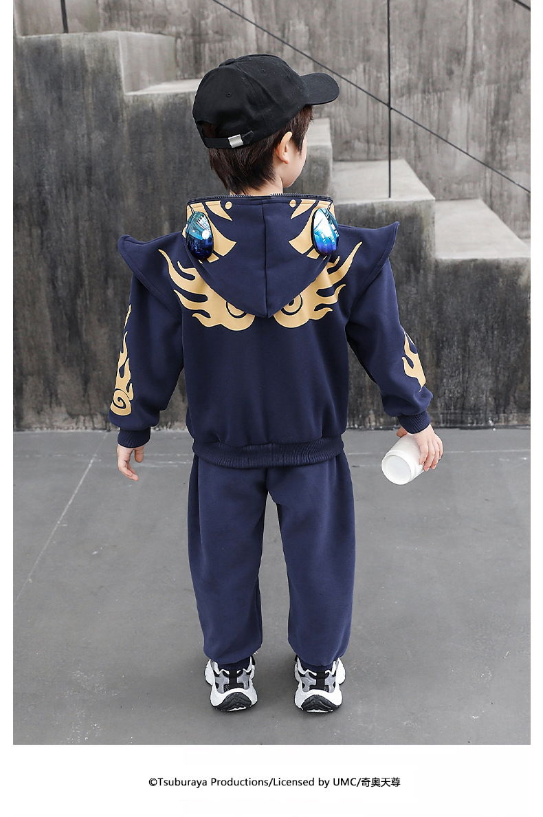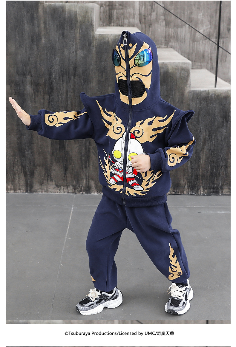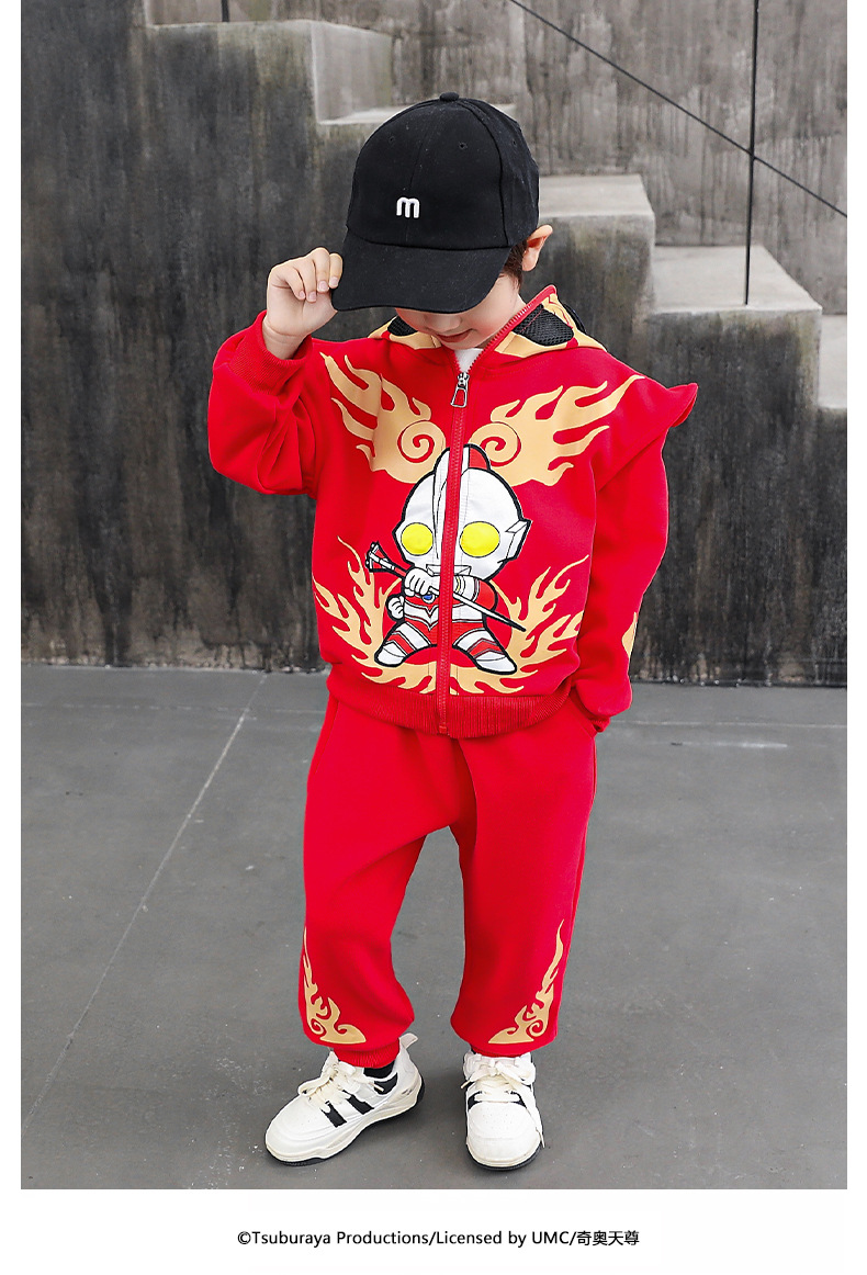 울트라 맨 의류 소년 세트 2025 봄 새로운 어린이 후드 자켓 봄과 가을 스포츠 유행 투피스 세트