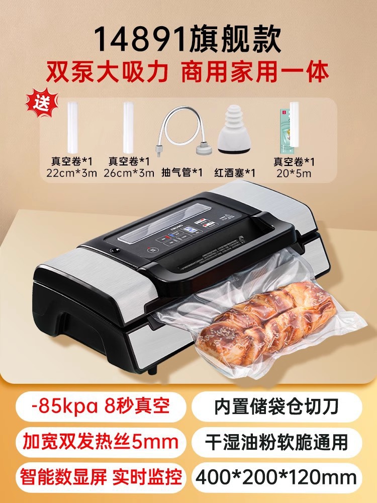 • 85kpa 듀얼 펌프 높은 흡입력 - [스마트 스크린 디스플레이·넓어진 이중 열선] 무료 진공백 3m개 롤 2개 + 진공 롤 5m개