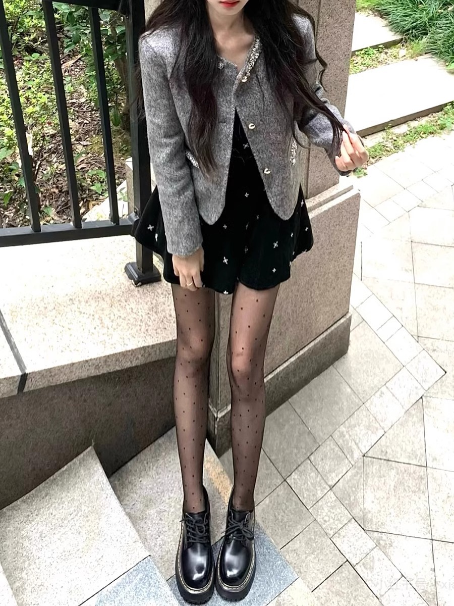 웨이브 도트 스타킹 안티 훅 실크 팬티 스타킹 초박형 고 투자율 jk 화이트 스타킹 어린이 봄과 가을 레깅스 블랙 실크스토어 가기