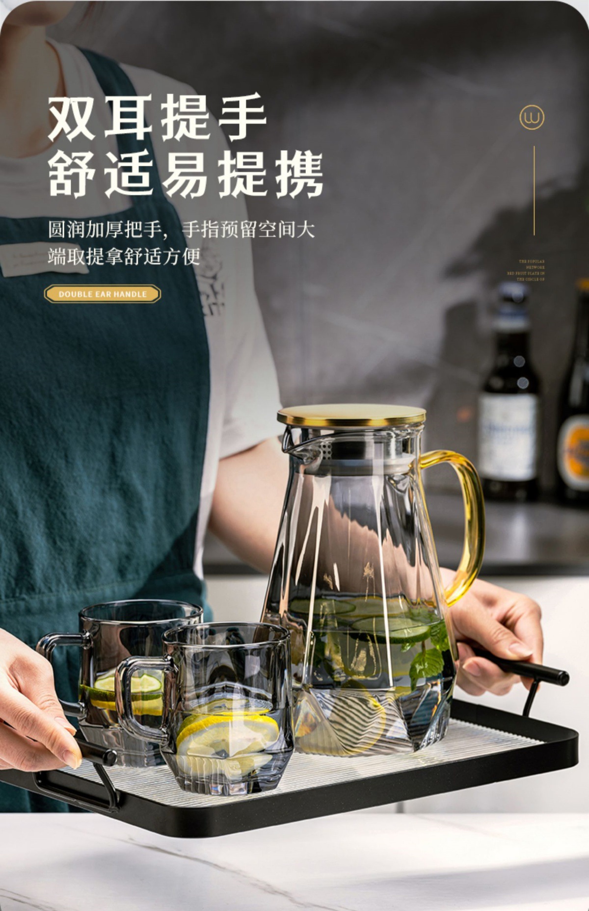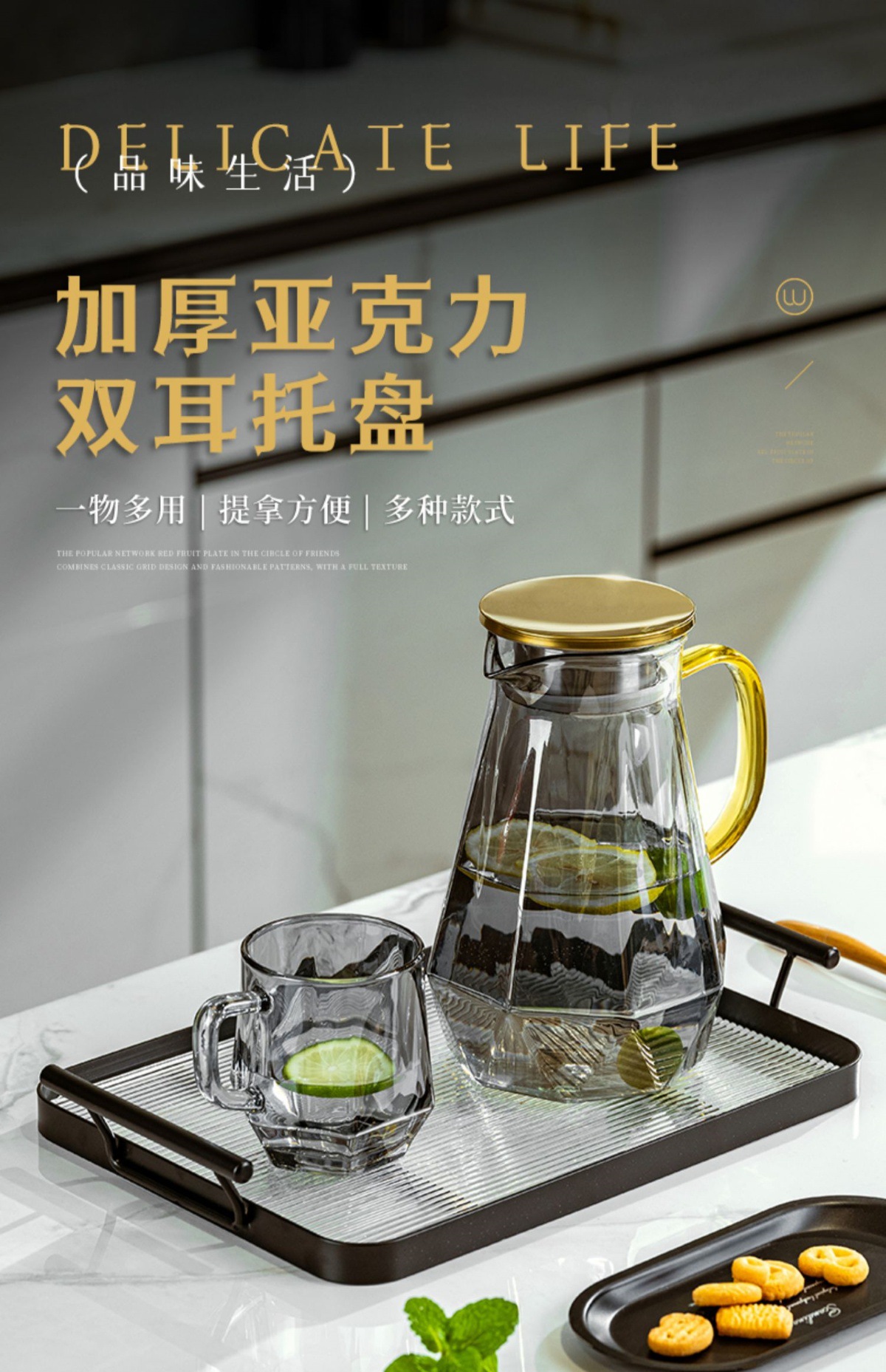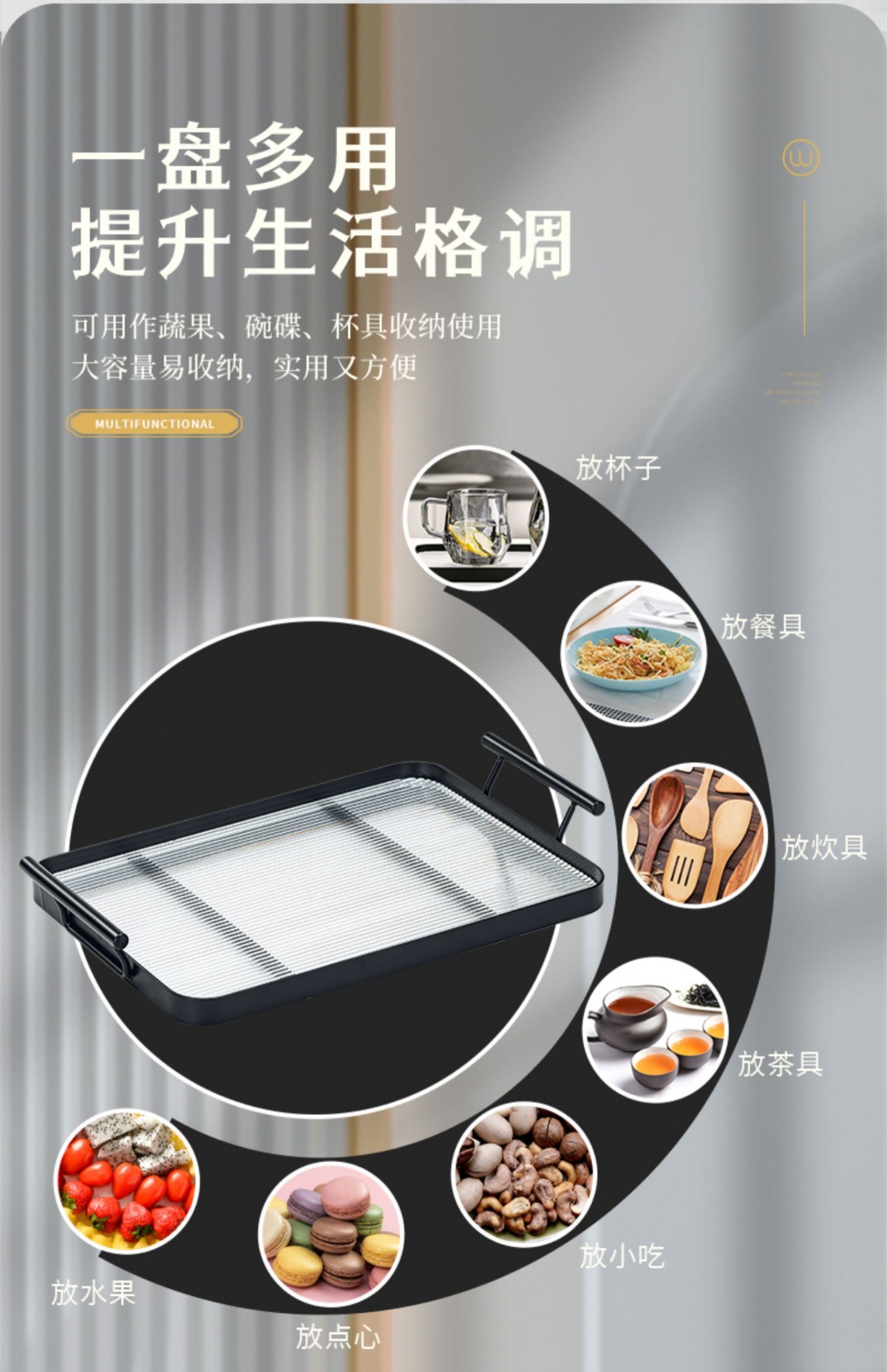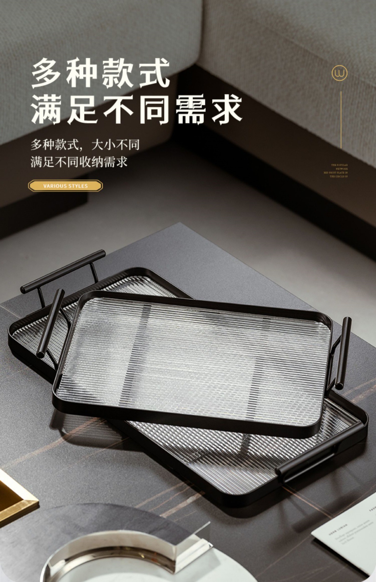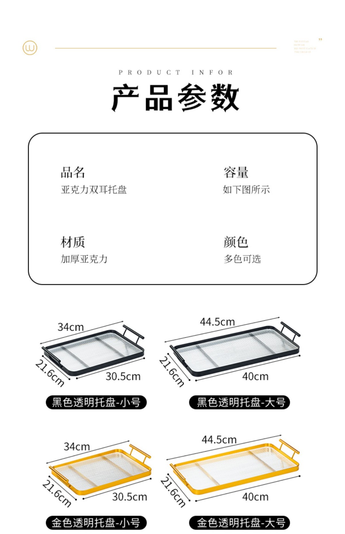 • 황금색 대형 이중 귀 투명 트레이