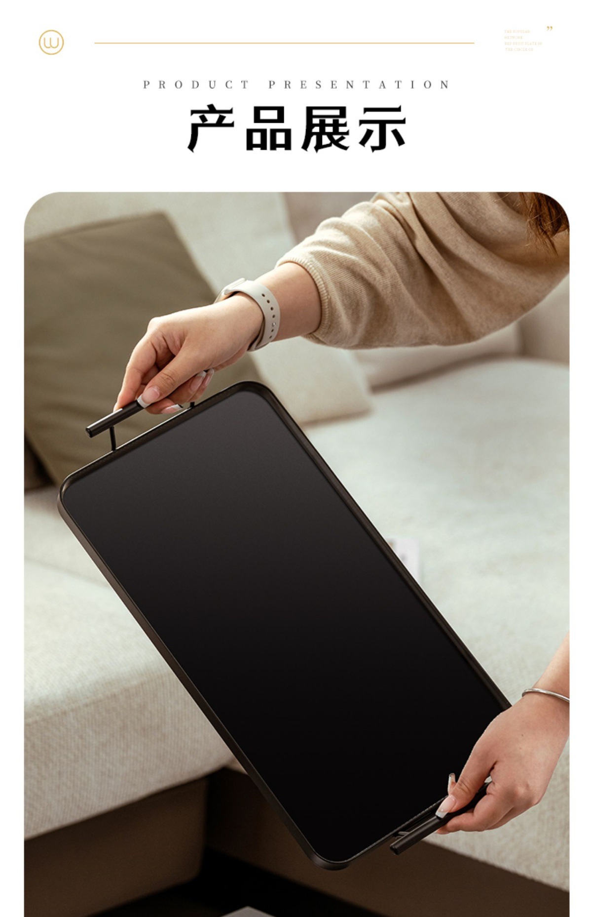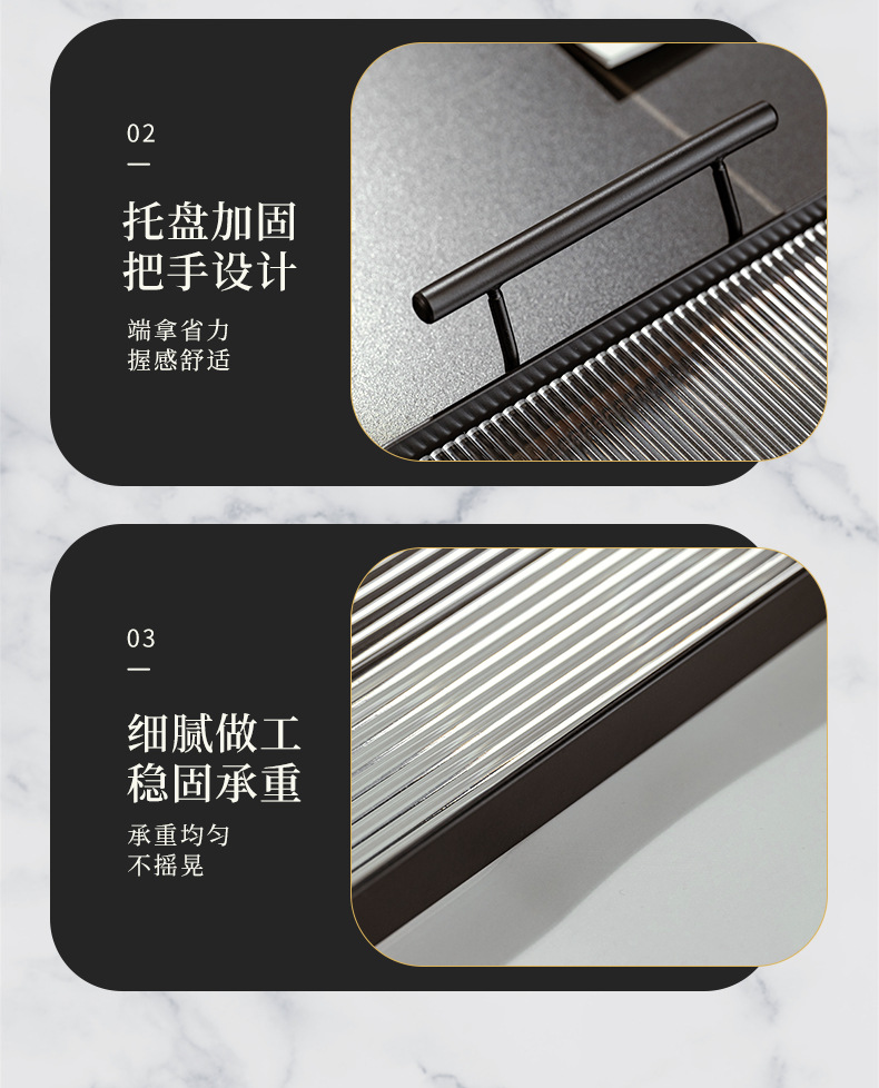 고급 감각 가정용 상업용 서빙 플레이트 직사각형 트레이 새로운 과일 스낵 아이언 플레이트 티 컵 티 플레이트
