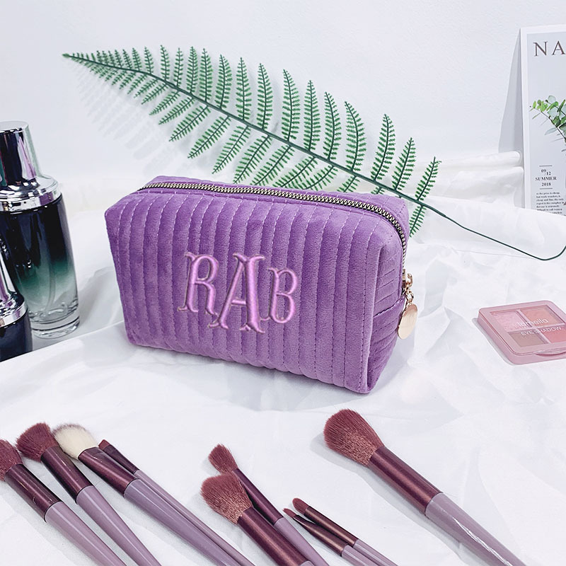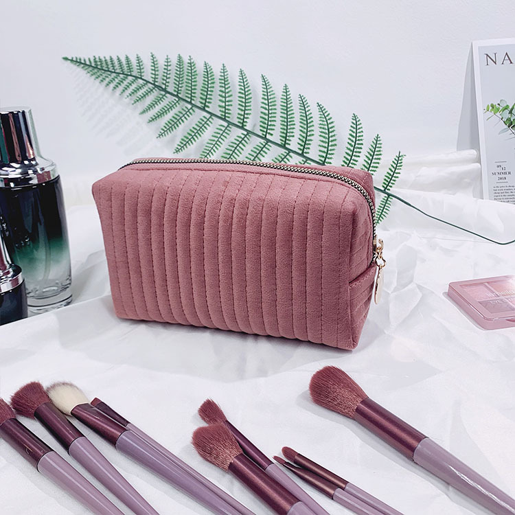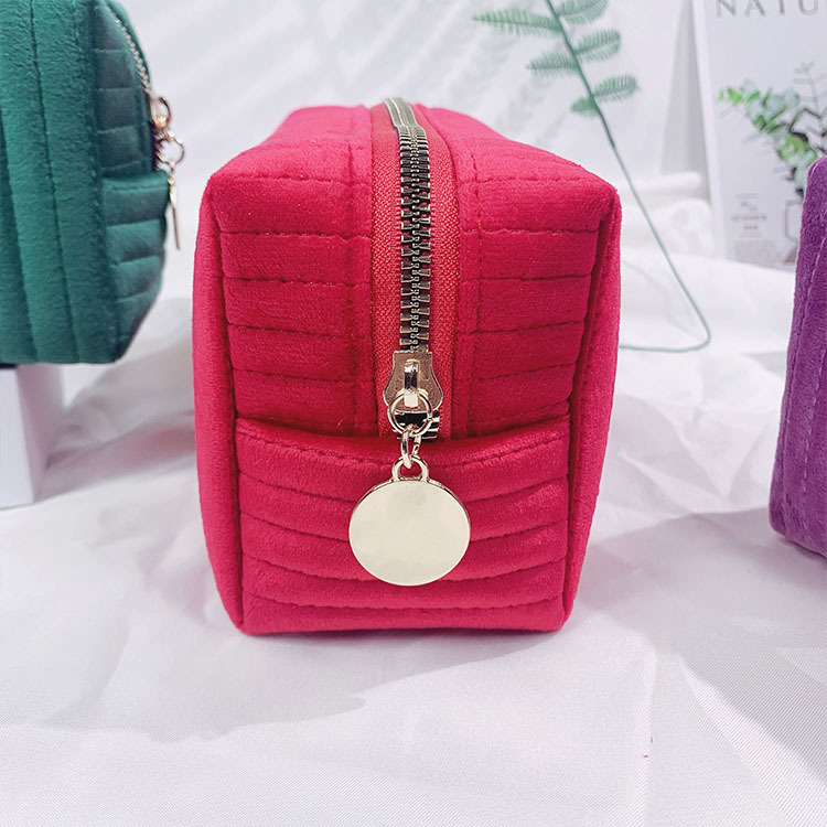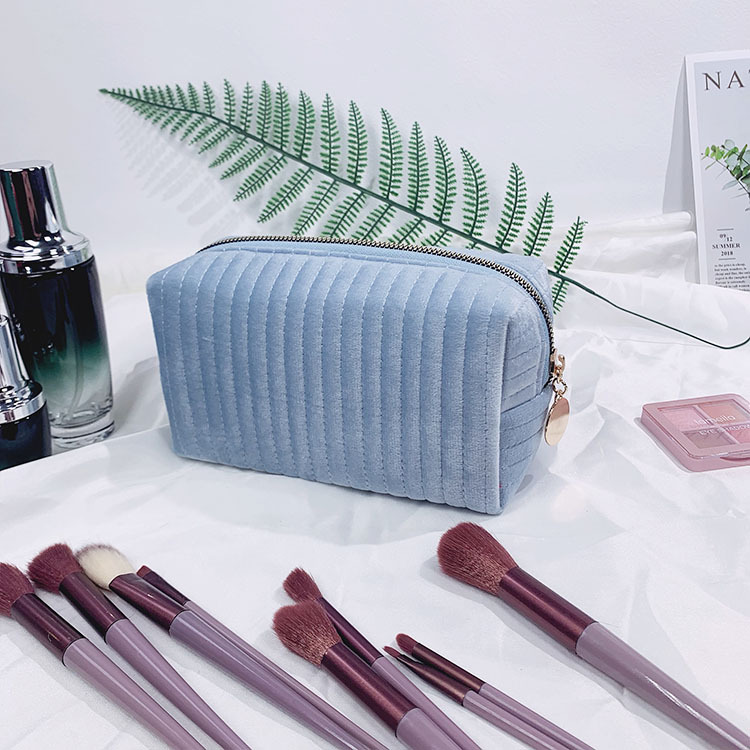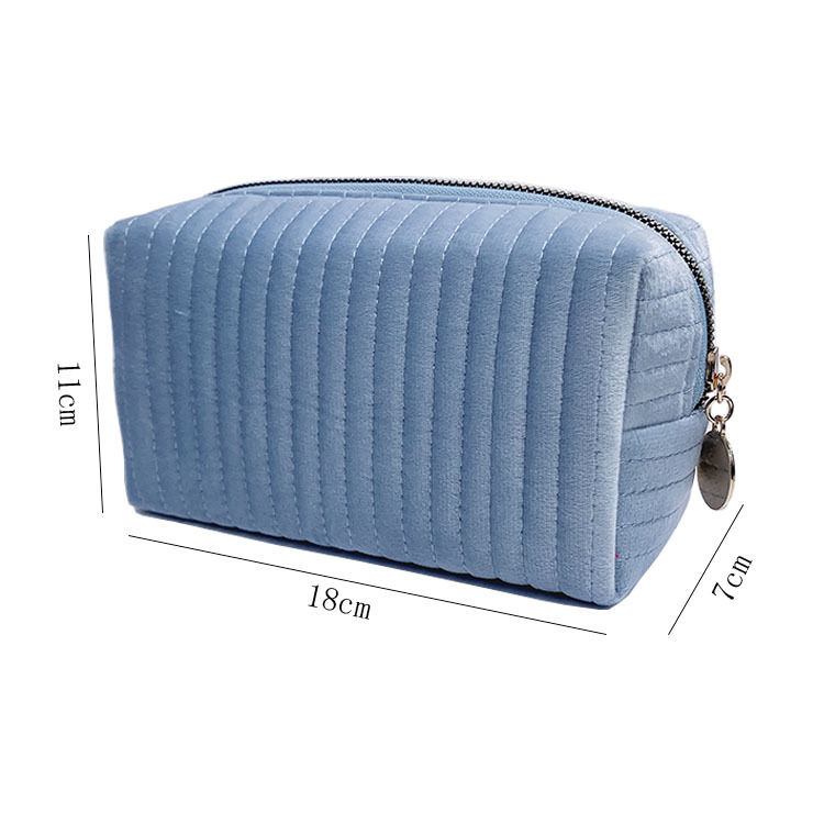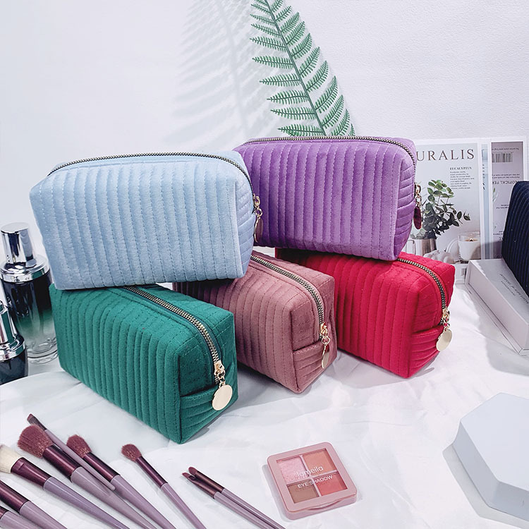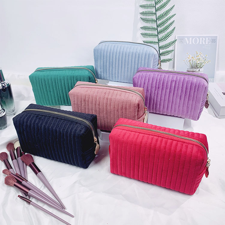 국경 간 새로운 스타일 퀼트 및 자수 줄무늬 벨벳 화장품 가방 휴대용 소형 스퀘어 가방 간단한 여행 보관 화장품 가방스토어 가기
