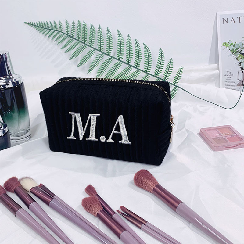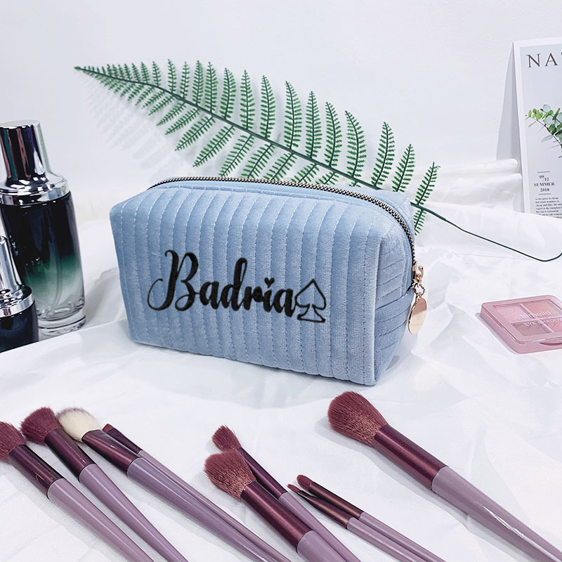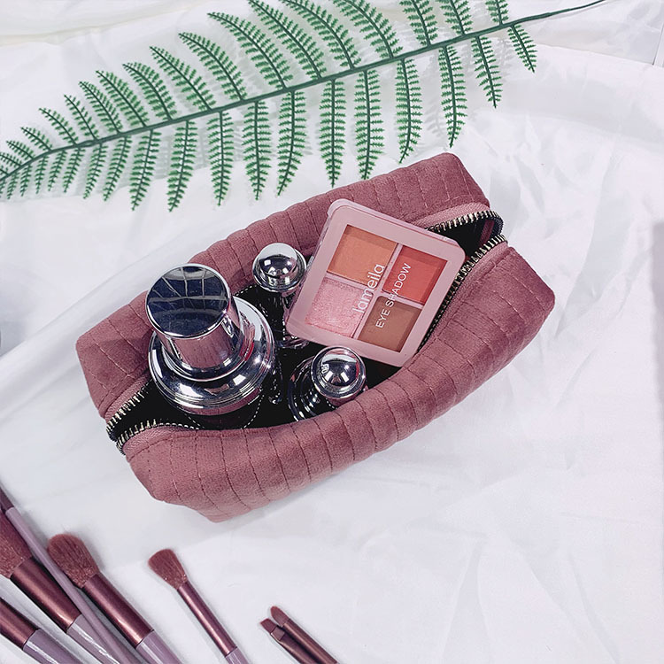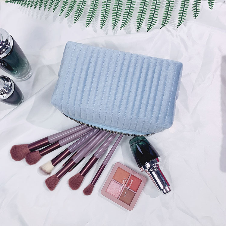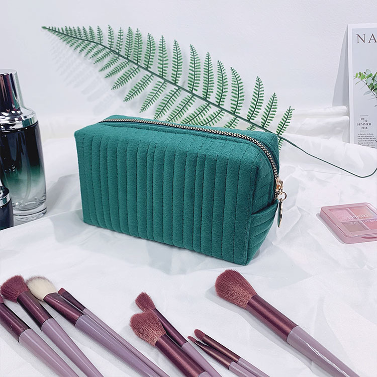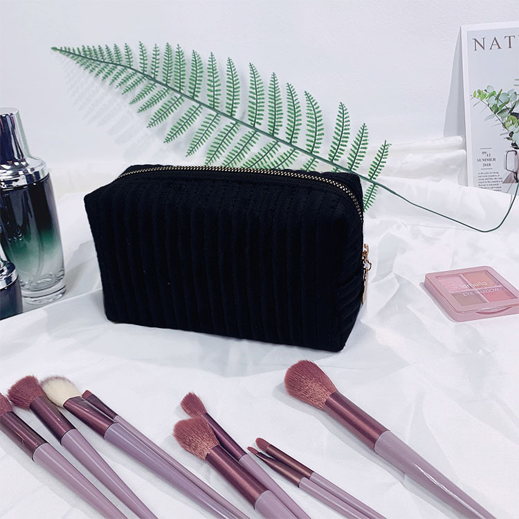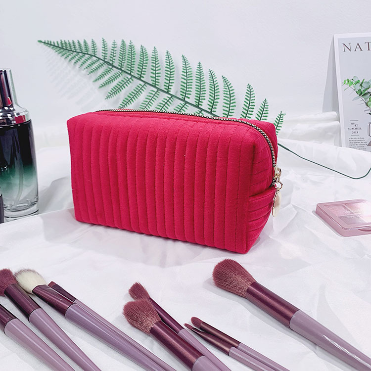 국경 간 새로운 스타일 퀼트 및 자수 줄무늬 벨벳 화장품 가방 휴대용 소형 스퀘어 가방 간단한 여행 보관 화장품 가방스토어 가기